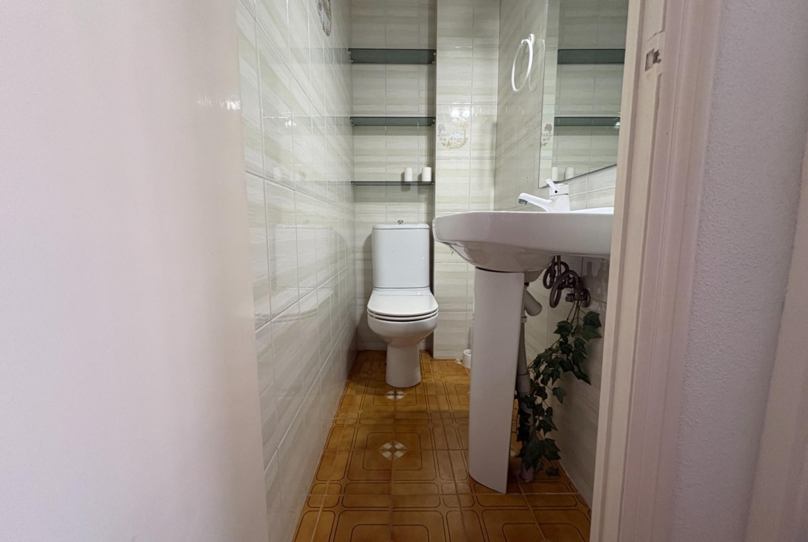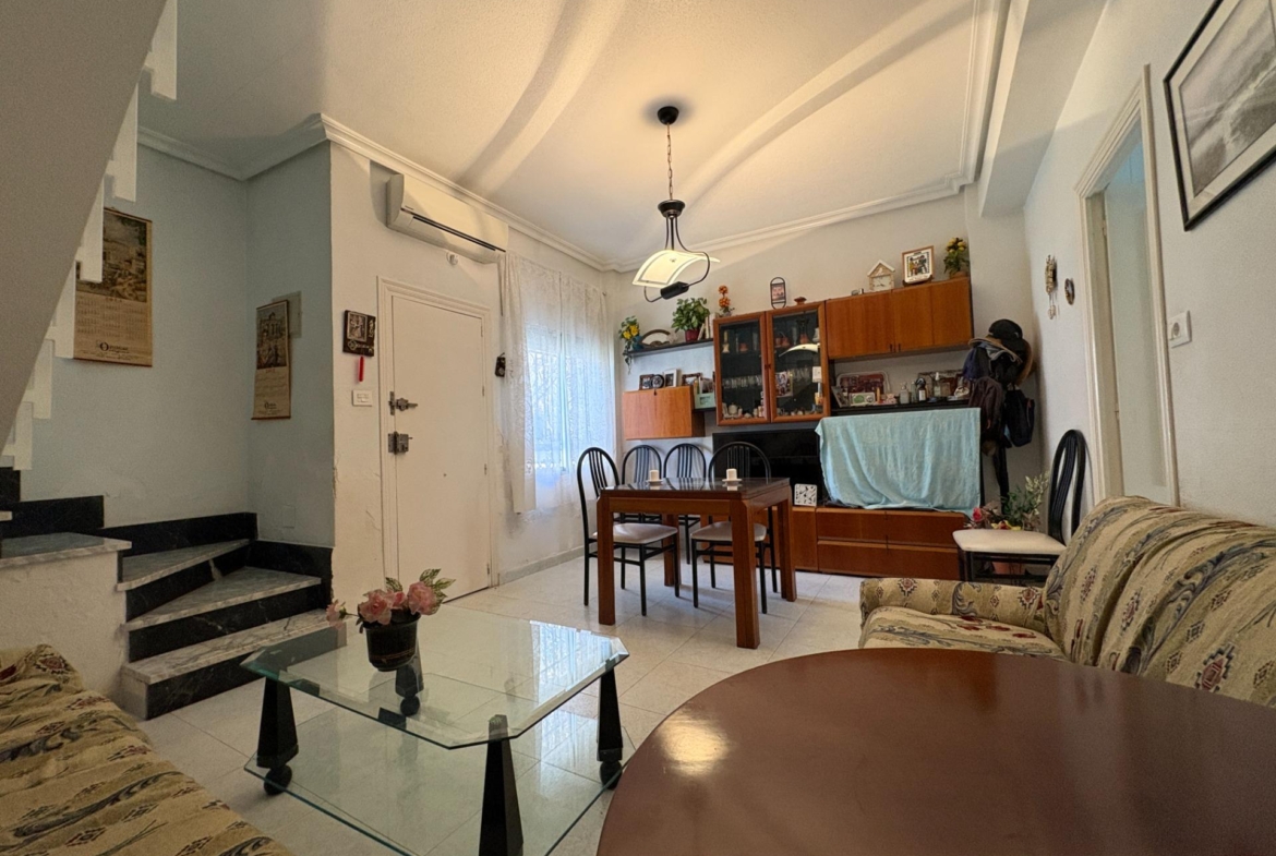La planta baja de 39 m² Se accede a través de un agradable porche delantero que da paso al recibidor. En esta planta encontramos un salón-comedor luminoso con aire acondicionado tipo Split, una cocina integrada proporcionando comodidad y funcionalidad, un baño completo y el acceso al patio privado, que goza de aproximadamente 45 m², un espacio perfecto para disfrutar del aire libre con total privacidad.