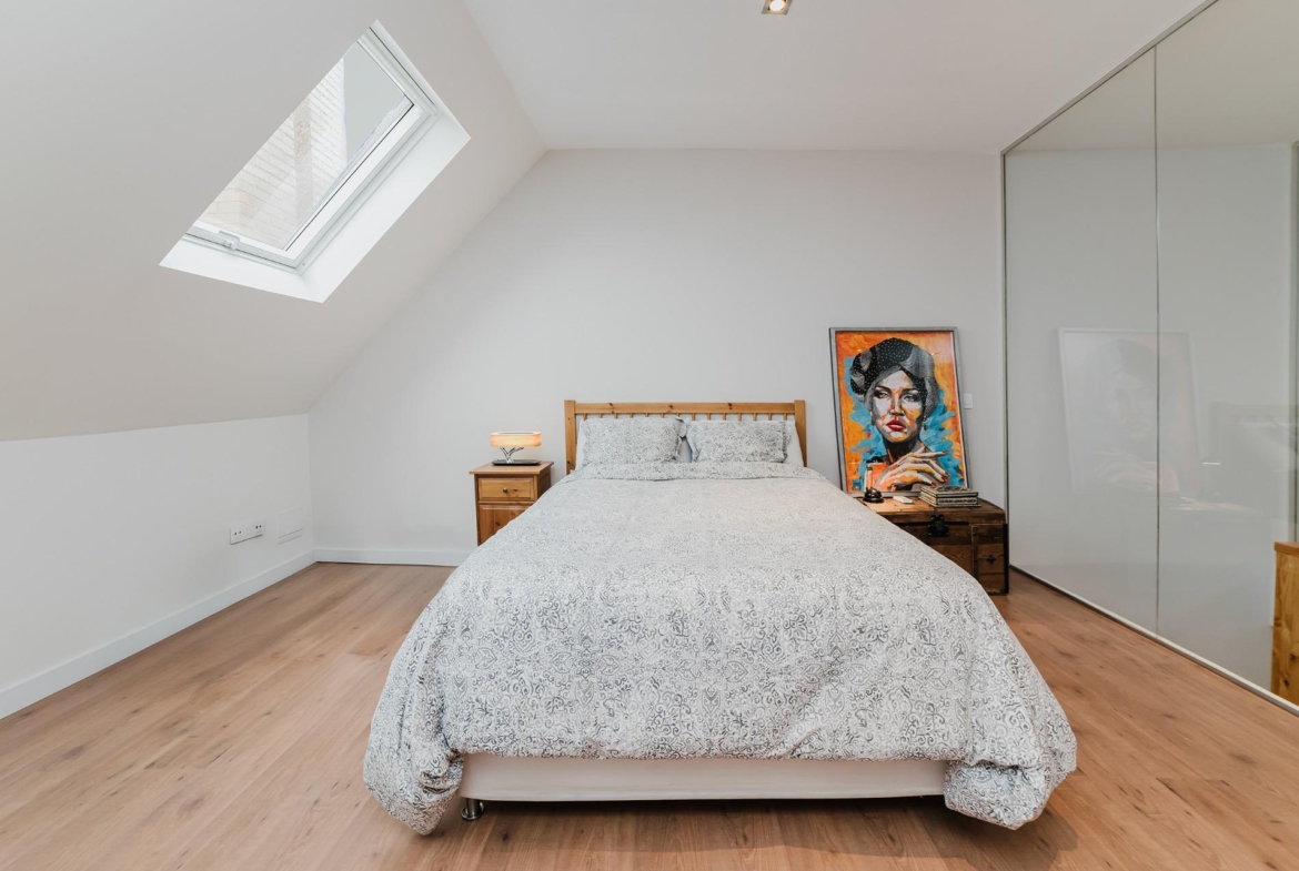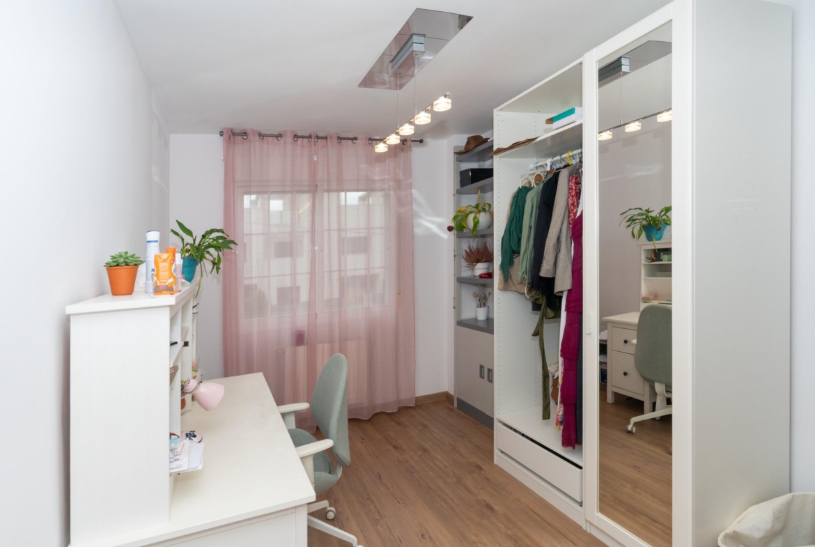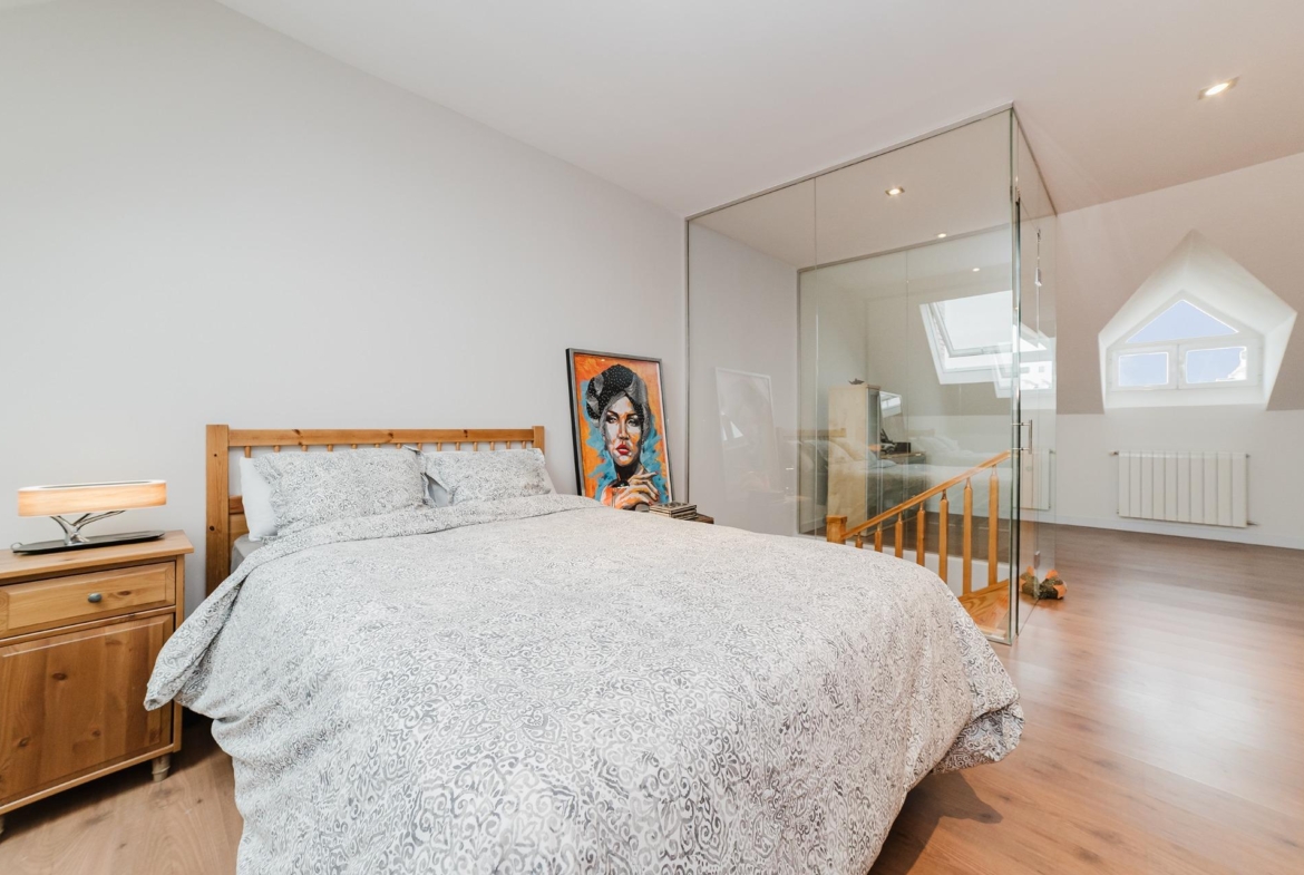 La buhardilla es muy grande y diáfana, posee aislamiento termoacústico, tiene una ventana proyectante Velux con persiana retráctil y mando.
