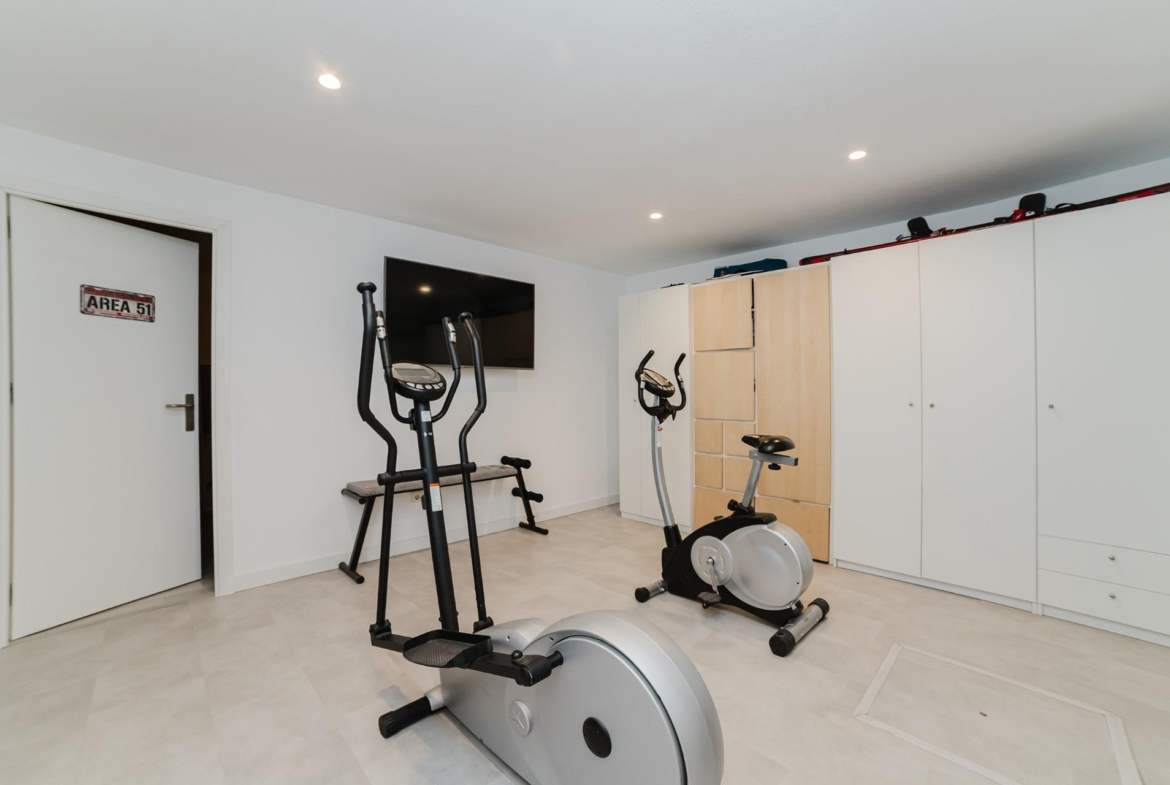 En el sótano se ubica el gimnasio, una despensa y una tercera estancia ideal como despacho o sala de usos múltiples.