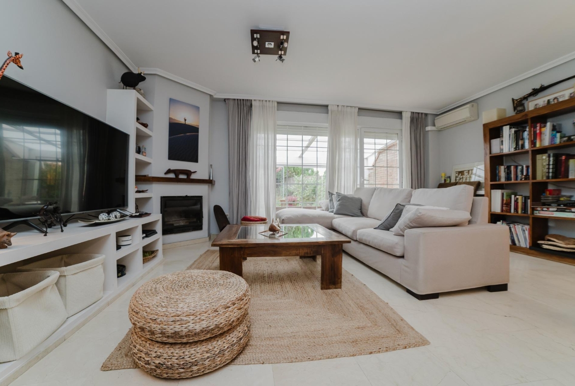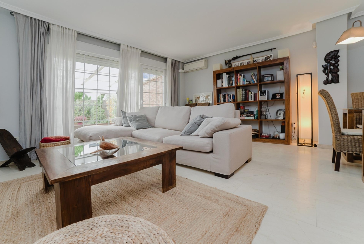 La Vivienda tiene una superficie de 203 m 2 construidos según catastro, el chalet ha sido diseñado para aprovechar al máximo el espacio bañado por una hermosa luz natural. Asimismo, está distribuida en tres plantas más una amplia y diáfana buhardilla (en la actualidad convertida en el dormitorio principal). Además de 3 habitaciones y 3 baños, cocina independiente, salón comedor, garaje, terraza acristalada y jardín.