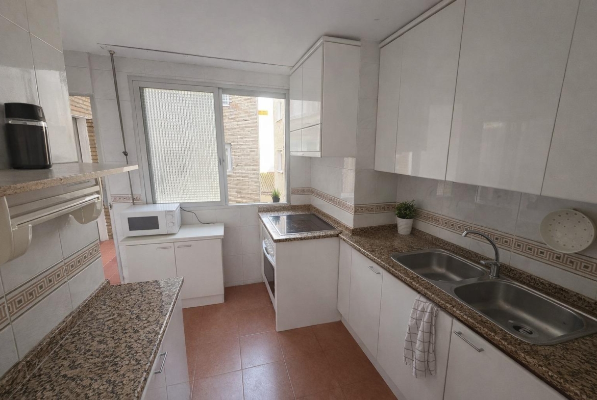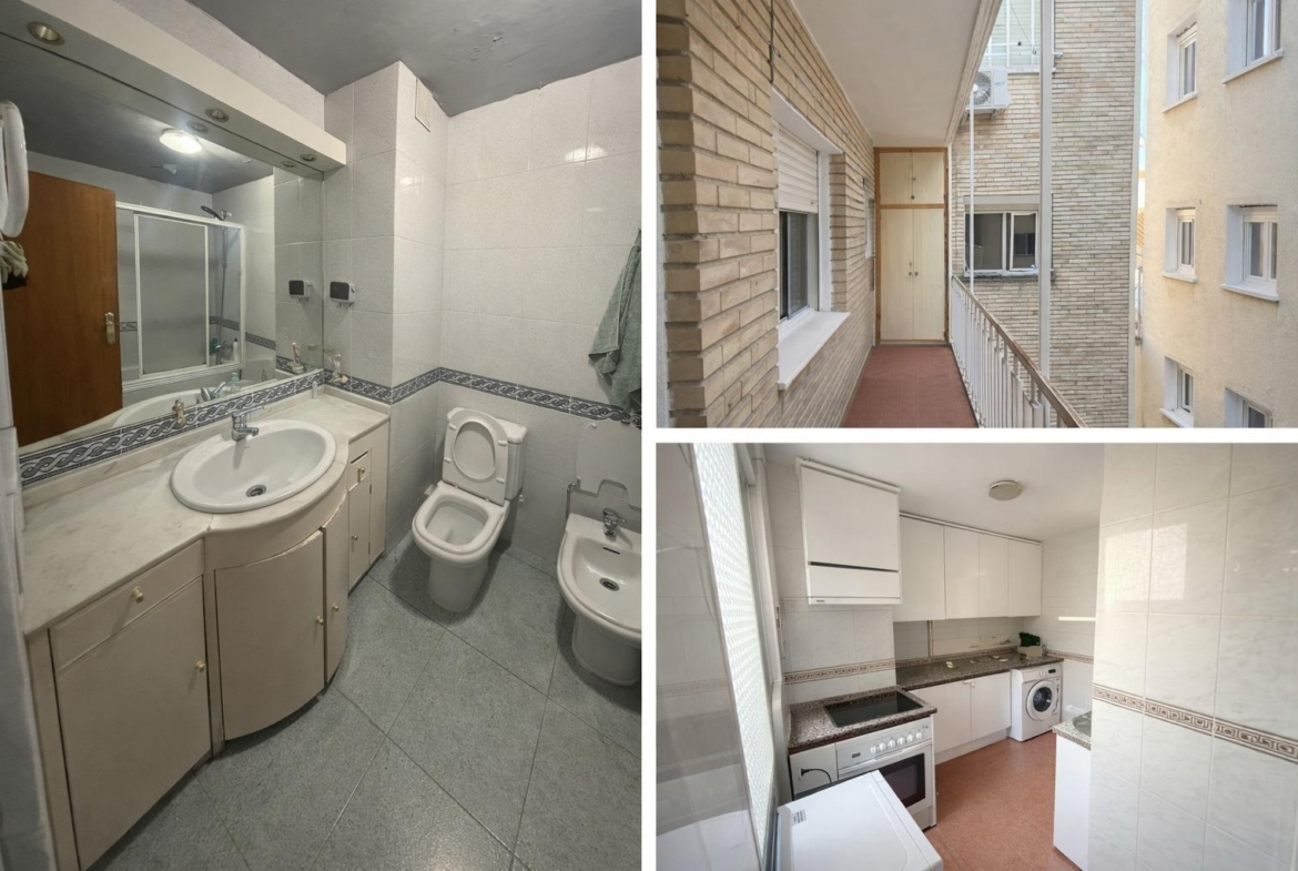 El inmueble, de 112 m2 Const. 100 m2 Útil, cuenta con amplio salón comedor que nos conecta a la terraza, cocina independiente amueblada y con acceso también a la terraza. Cuatro dormitorios cada uno con ventanas que aportan una excepcional luz natural, y dos cuartos de baño completos de gran amplitud uno con plato de ducha y otro con bañera.