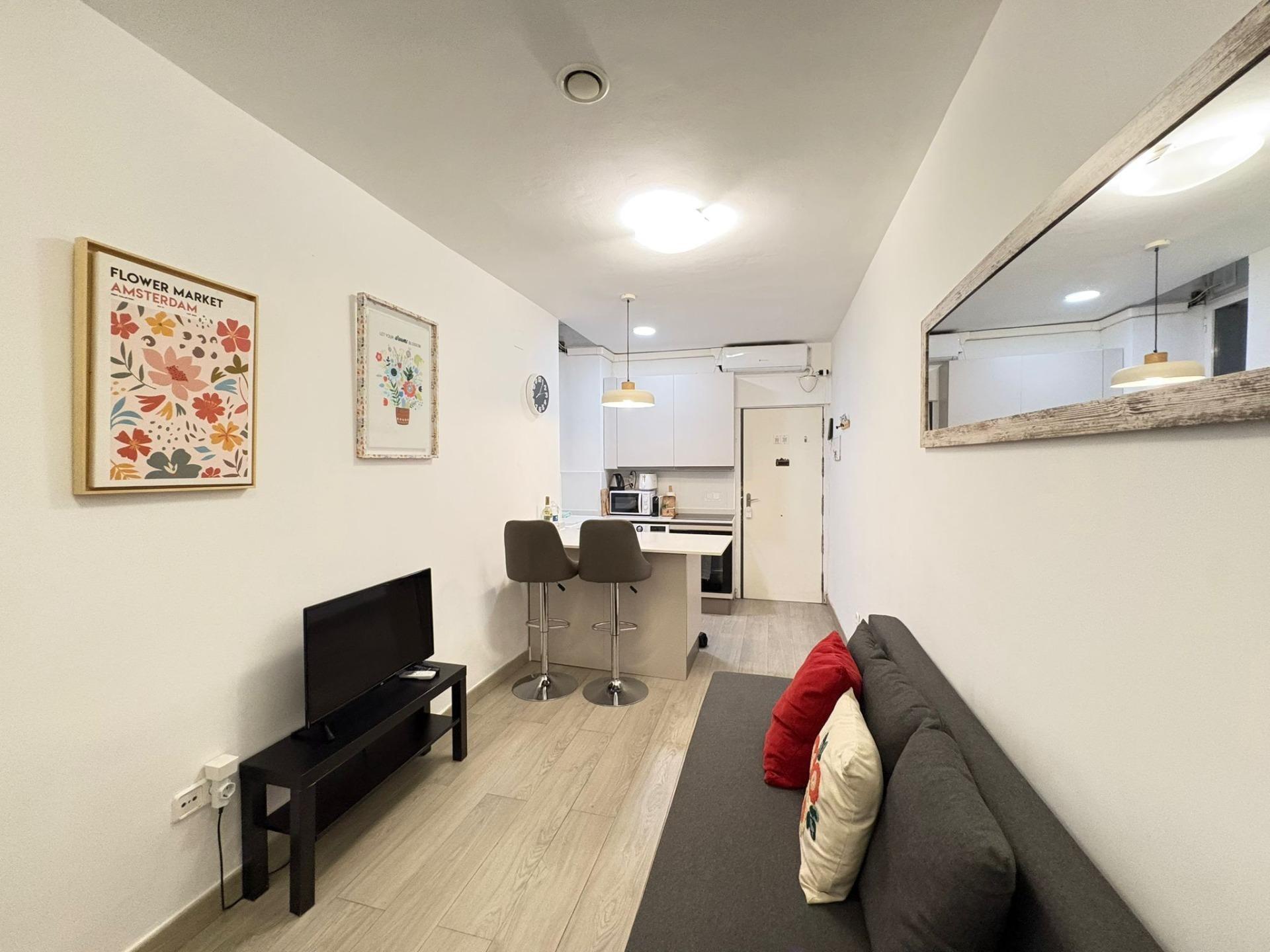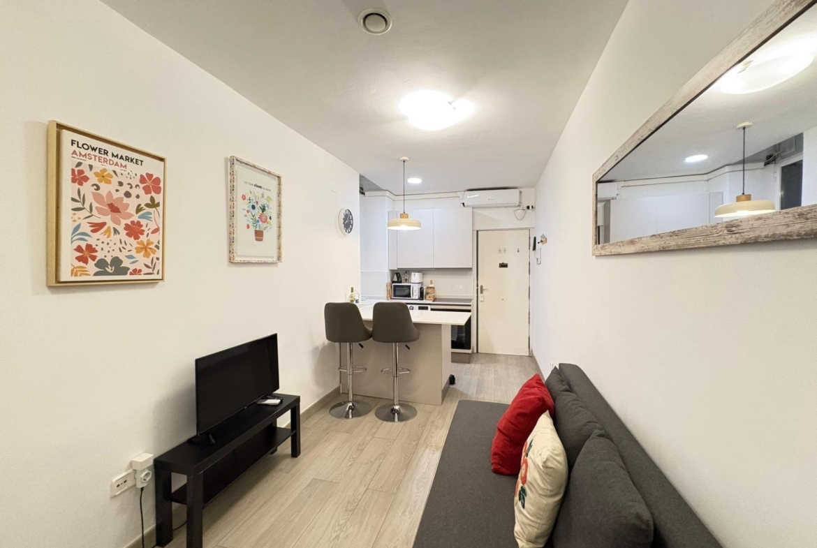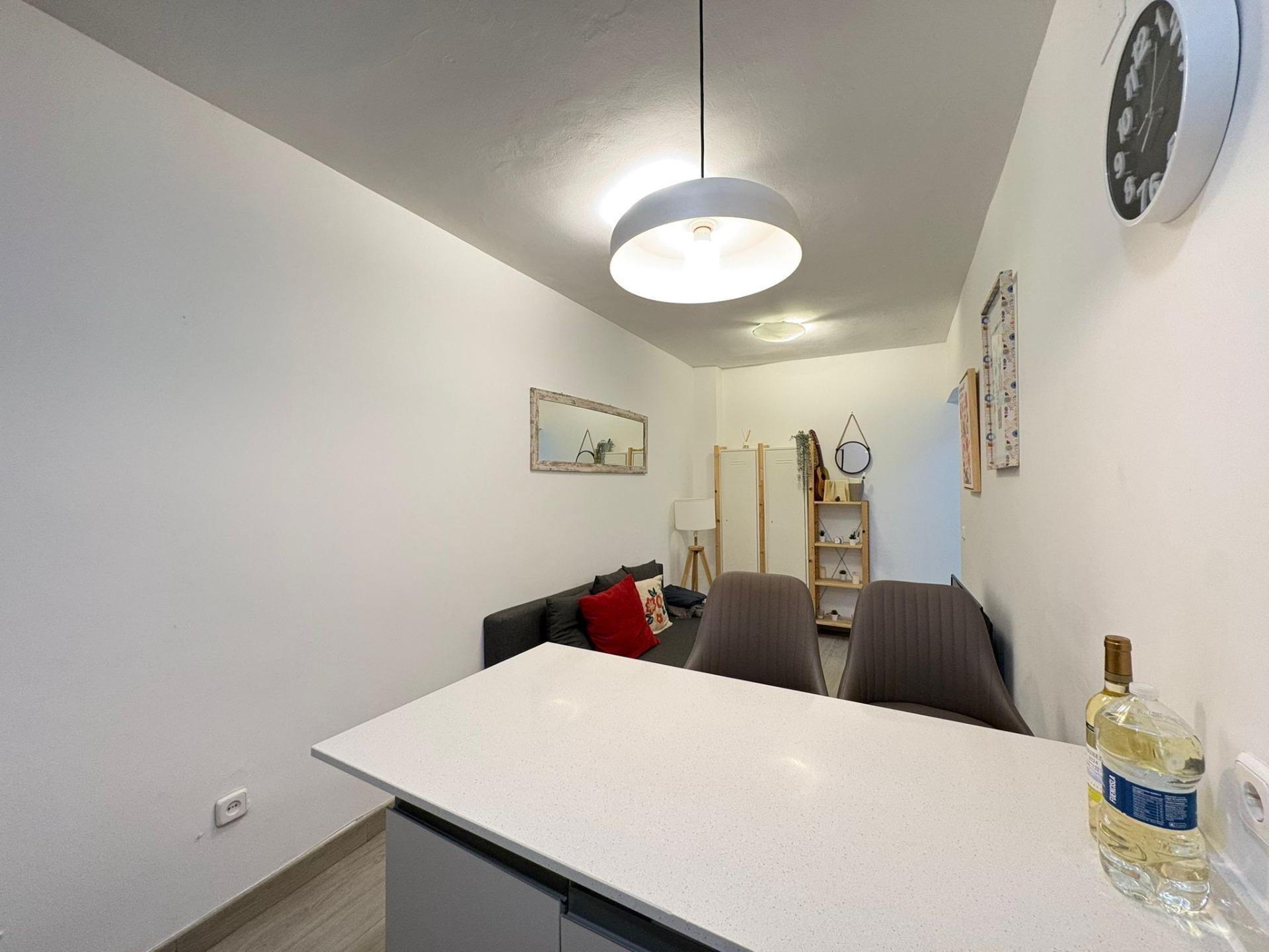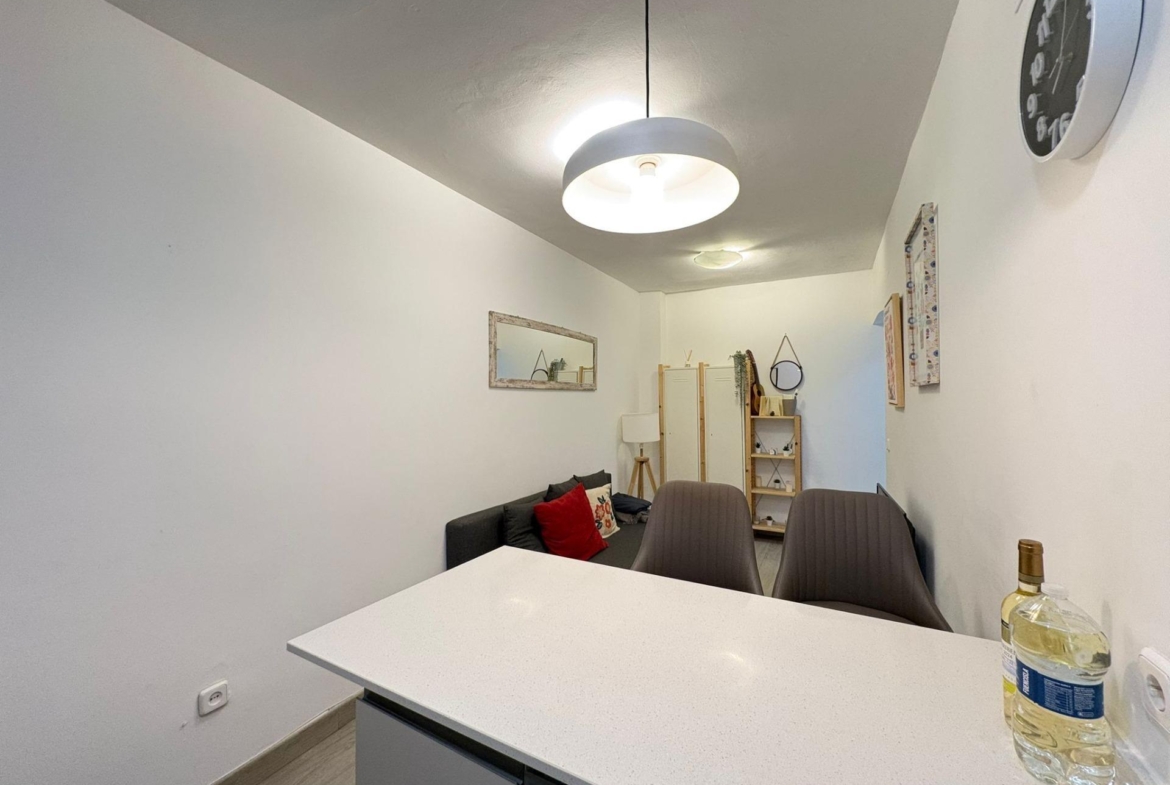 La vivienda ofrece un cómodo salón comedor, luminoso gracias a la ventana que da a un cuidado patio comunitario, creando un ambiente agradable y ventilado. La cocina americana, integrada al salón, está reformada y presenta un diseño moderno y funcional, ideal para disfrutar del espacio en su conjunto. El dormitorio, amplio y con ventana, permite una distribución versátil y acogedora. Además, el piso dispone de un cuarto de baño completo con plato de ducha, renovado con materiales actuales.