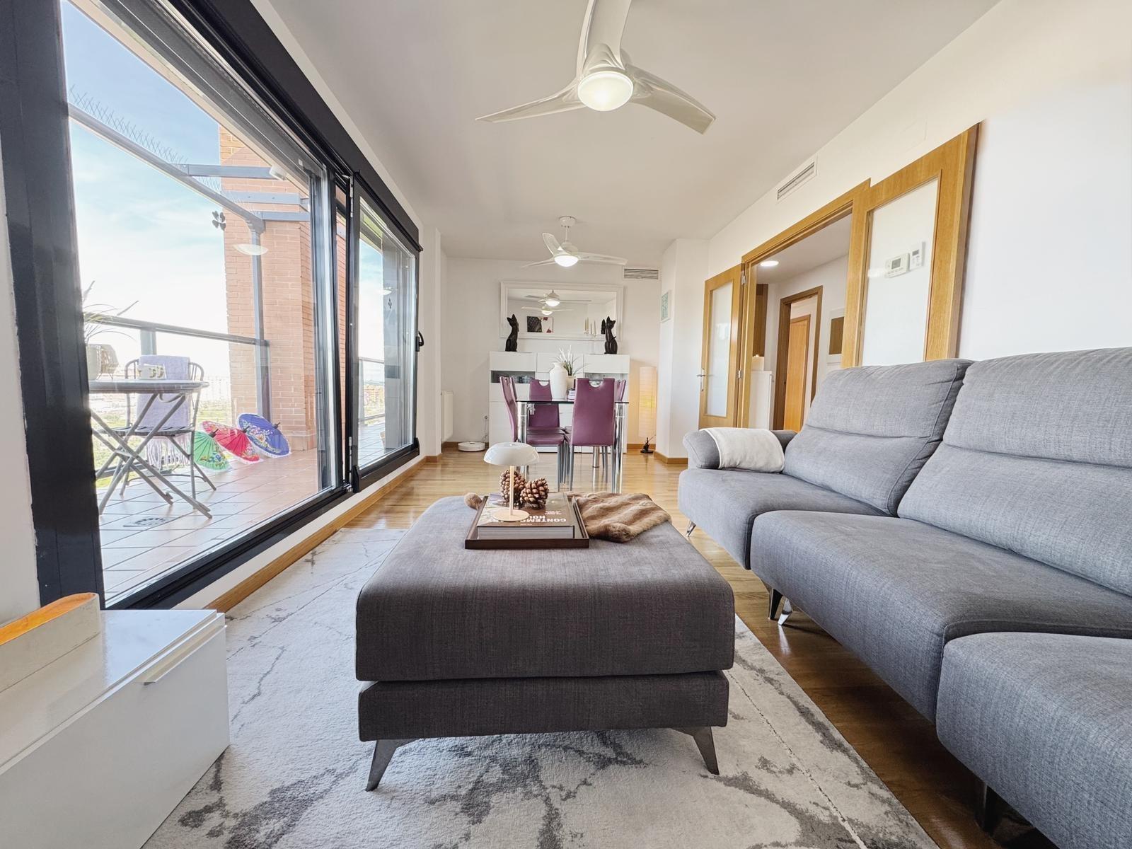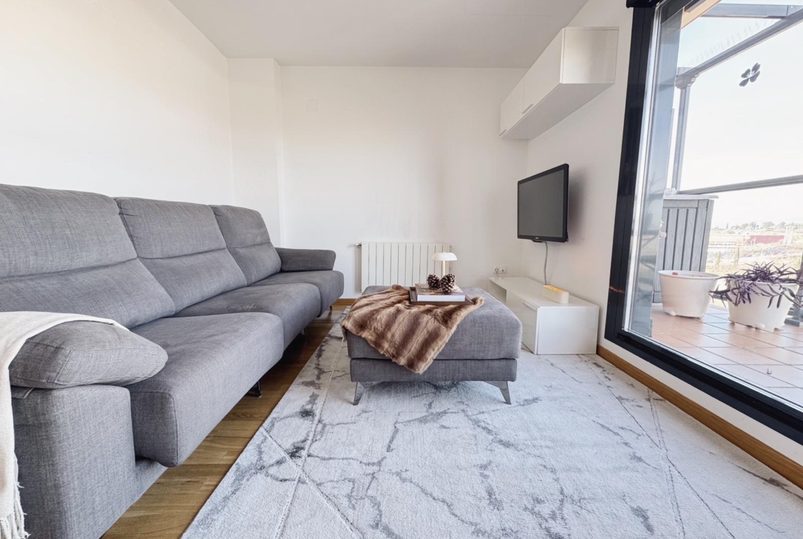 El salón-comedor, se configura como el espacio central de la vivienda, con salida a la terraza de 45 m² con vistas a la Sierra de Madrid, perfecta para disfrutar del sol y del aire libre durante todo el año.