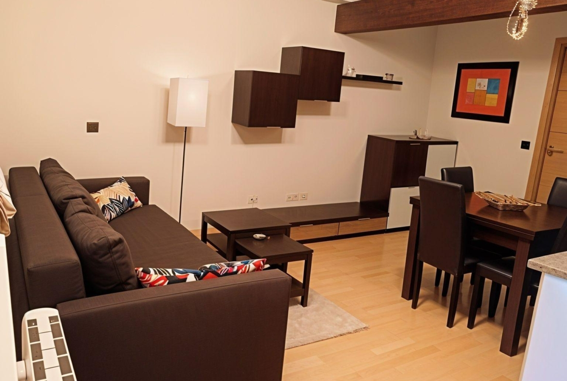 Esta acogedora vivienda de aproximadamente 60 m² se encuentra en la planta baja de un maravilloso edificio. Cuenta con una distribución cómoda y funcional: un espacioso salón con cocina abierta, que aporta amplitud y luminosidad al espacio principal.