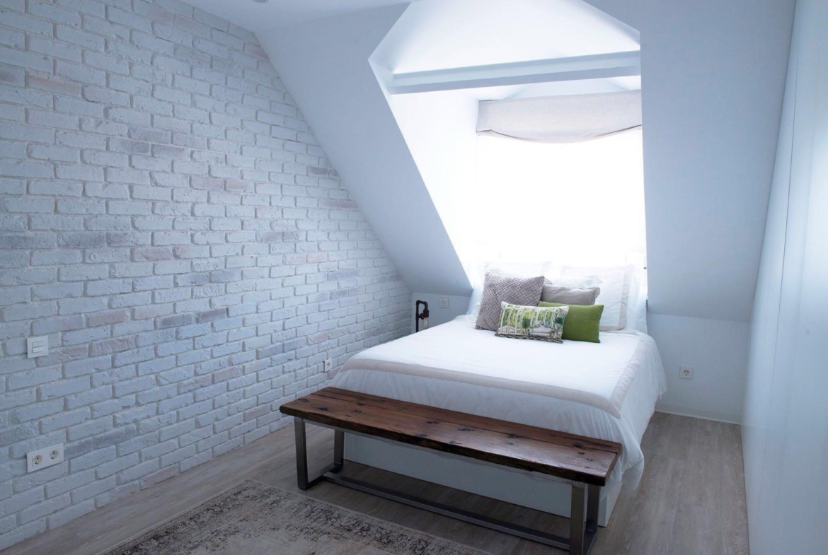 La vivienda consta de 78 metros construidos distribuidos en salón comedor con cocina americana integrada, 2 dormitorios, un vestidor anejo al dormitorio principal y 2 cuartos de baño (uno de ellos tipo suite). A destacar la luminosidad en toda la vivienda gracias a los grandes ventanales que ofrece el techo en buhardilla.