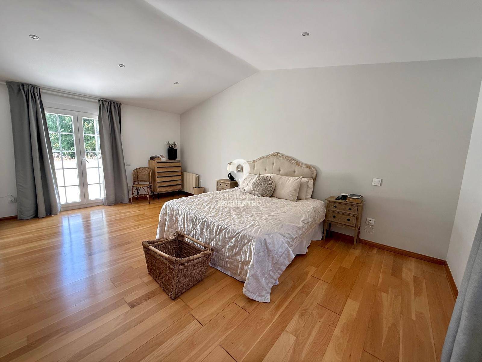 En la planta superior de la vivienda encontramos la zona de descanso, tenemos 4 dormitorios de gran tamaño, 3 baños, uno de ellos en suite dentro del dormitorio principal y dos terrazas con vistas al jardín.