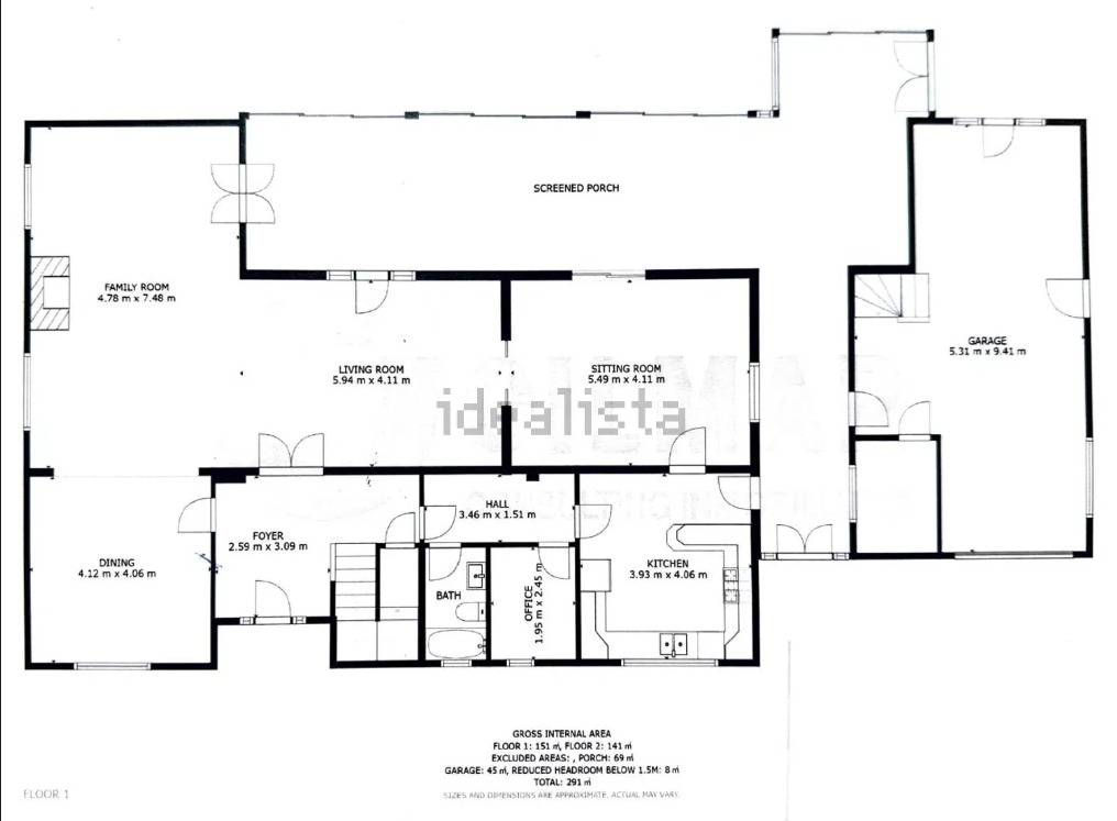Ya entrando en la vivienda encontramos un recibidor desde el que accedemos a diferentes estancias, una bonita y funcional cocina, un office independiente, un baño completo y un gran salón dividido a su vez en 4 dependencias conectadas entre sí que componen la zona más representativa de la casa, dos habilitadas como zona de comedor y otras dos como zona de estar, uno de ellos con chimenea, creando diferentes ambientes dentro de un mismo espacio, todos con vistas al jardín.