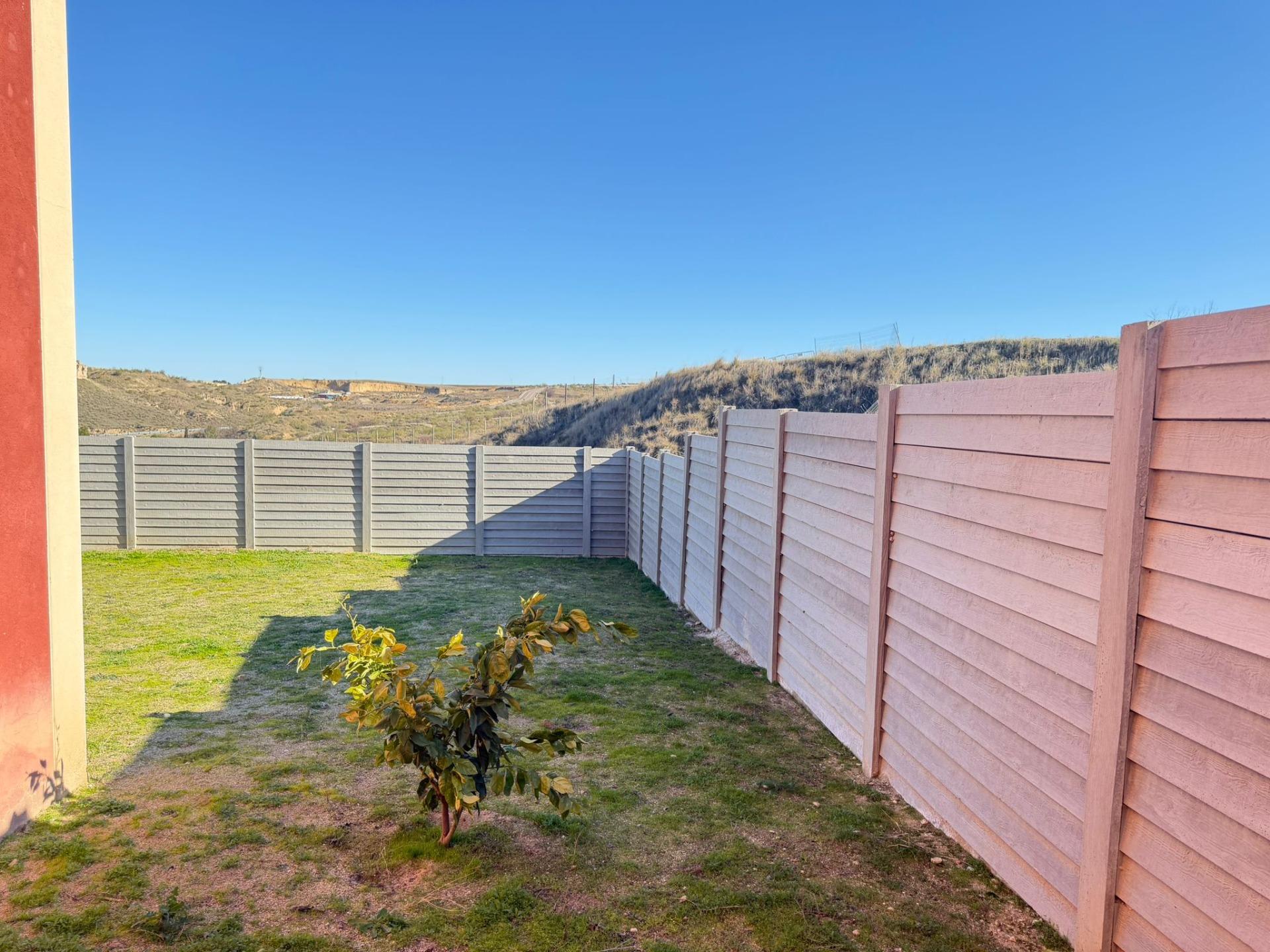 En su próximo hogar podrá encontrar 3 habitaciones, todas dobles y con armarios empotrados que ocupan el espacio de una pared entera; 2 baños con bañera y ventanas, uno de ellos en suite; una gran y luminosa cocina independiente, con espacio suficiente para colocar una mesa de desayuno; un gran salón-comedor con sitio para dividir en 2 espaciosos ambientes; un garaje cerrado dentro de la parcela, de muy fácil acceso y un grandísimo jardín trasero donde podría ubicarse su próxima piscina y zona de relax con barbacoa.