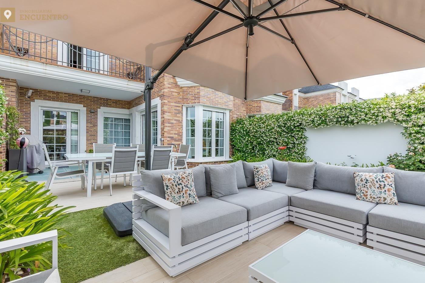 Descubre esta exclusiva vivienda unifamiliar ideal para familias que buscan espacio, comodidad y calidad de vida. Se trata de un amplio chalet de 230m2, distribuido en varias plantas: la planta intermedia cuenta con un salón-comedor espacioso y acogedor con salida directa al jardín, ideal para disfrutar con la familia o con amigos, cocina independiente totalmente equipada, también con acceso directo al jardín y un aseo funcional, en ella también se ubica el garaje propio con acceso directo a la vivienda. En la planta más baja se encuentra un segundo salón con gran amplitud y con acceso a un precioso patio inglés con iluminación natural, una habitación con baño completo en suite y zona de lavandería. La planta superior cuenta con cuatro amplios dormitorios, dos de ellos con cuarto de baño completo en suite, además, tiene otro cuarto de baño completo que da servicio a los otros dos dormitorios, así mismo, en esta planta está ubicado el acceso a una amplia buhardilla.