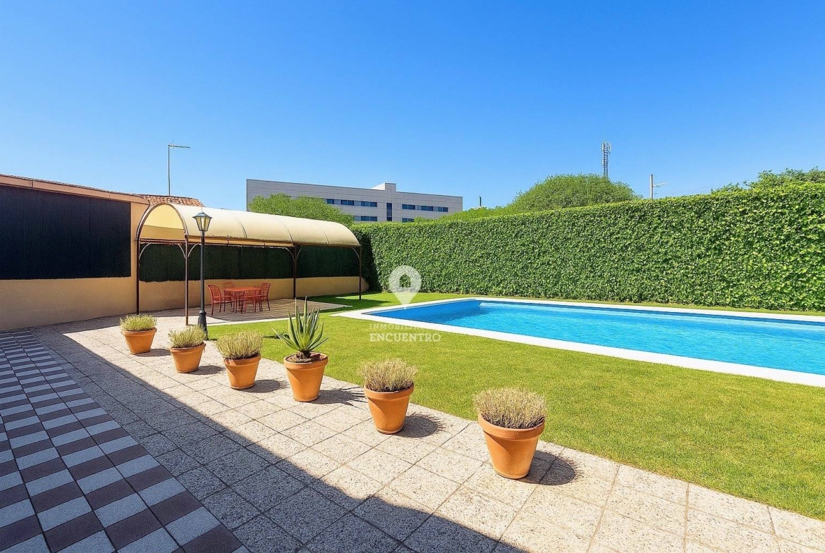Destaca por su amplitud y el entorno que la rodea. El jardín privado envuelve la casa por tres de sus lados, creando un entorno verde, espacioso y muy acogedor, donde destaca la piscina privada, ideal para los días de verano.