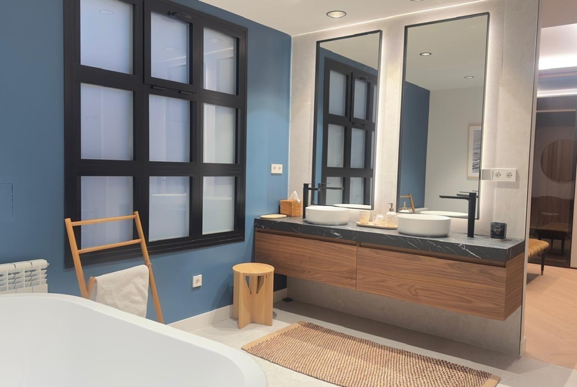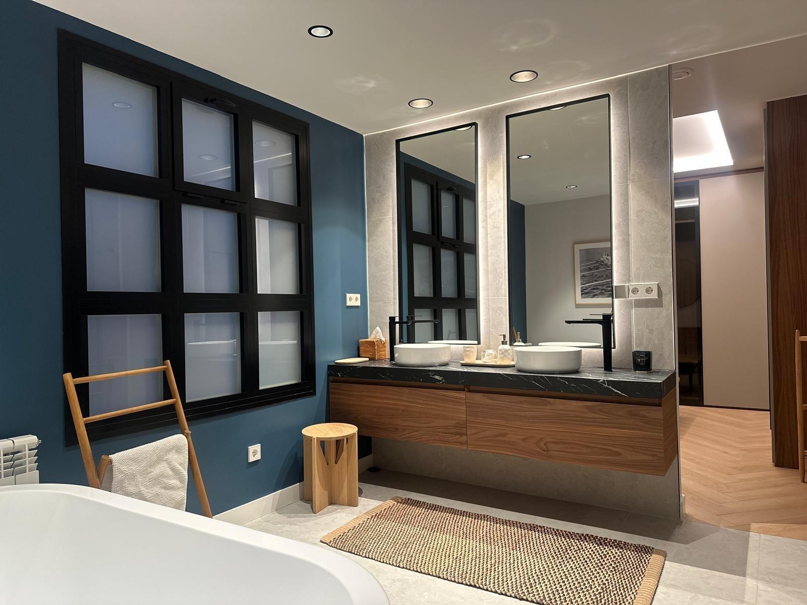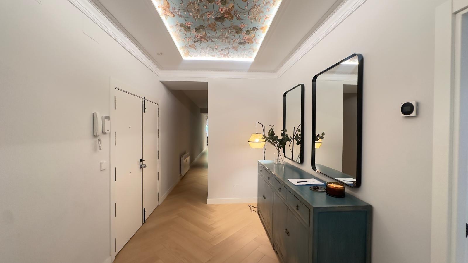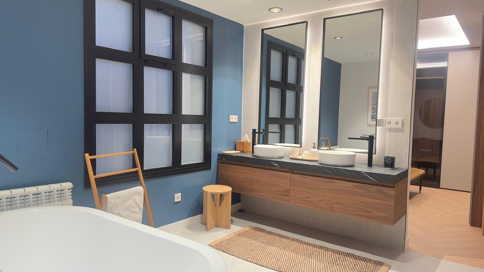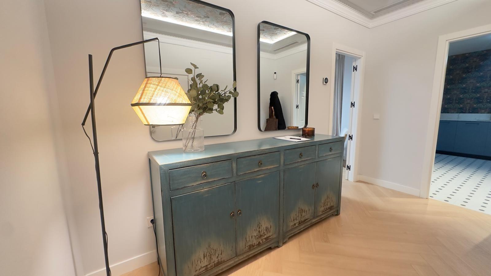 Los materiales utilizados han sido seleccionados meticulosamente, combinando madera natural y telas y papeles premium que crean una atmósfera armoniosa perfecta para habitar.