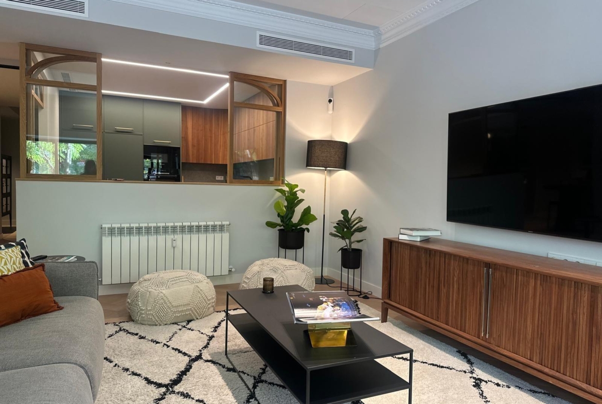 La cocina es otro punto fuerte del apartamento: diseñada bajo un criterio decorativo armonioso y exclusivo y semi-integrada visualmente al gran salón permite disfrutar tanto del arte culinario como momentos inolvidables con familiares o amigos.