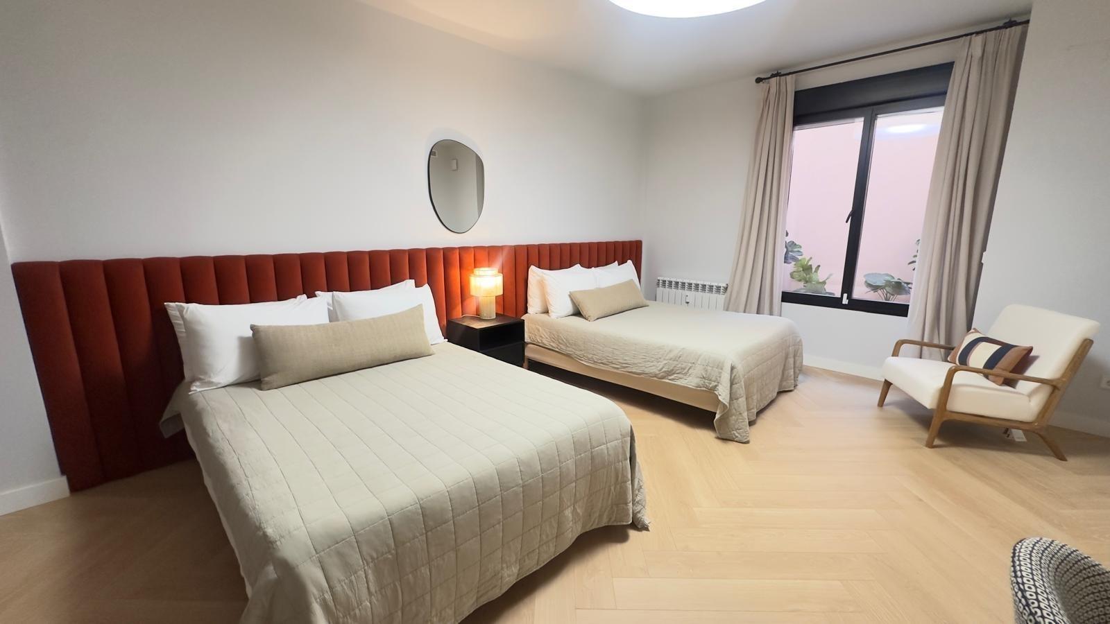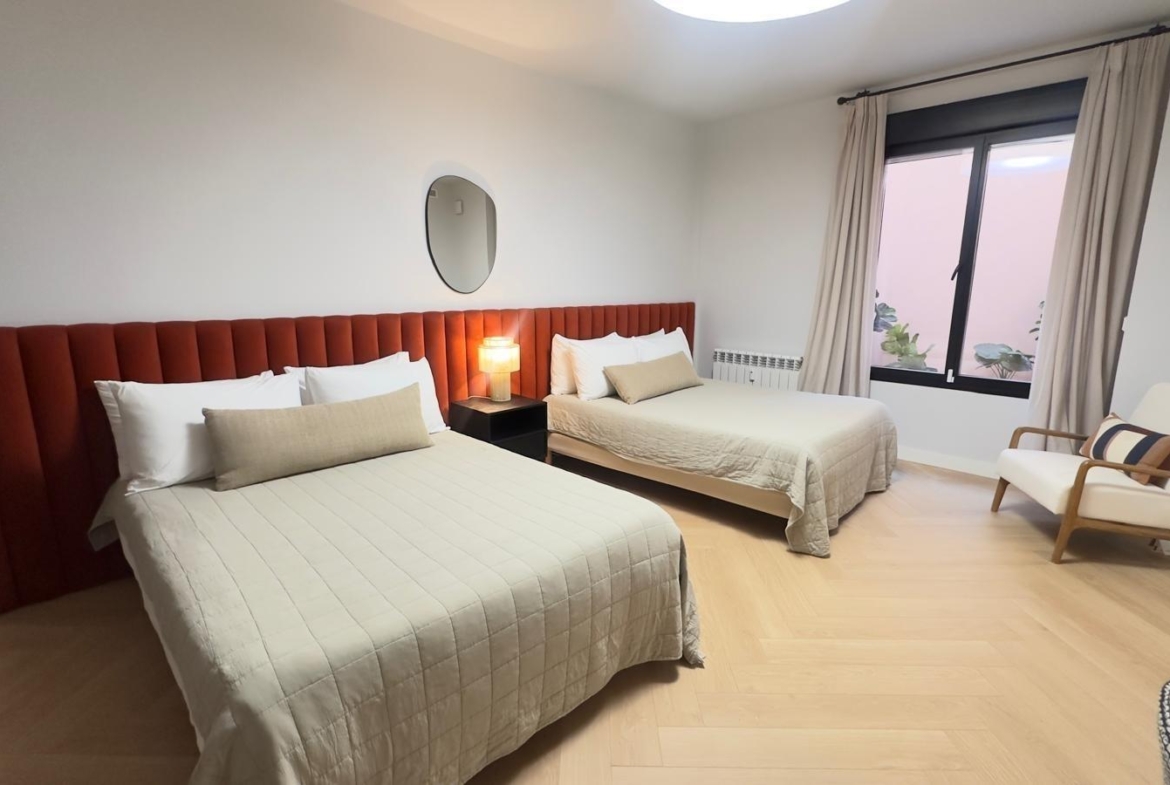 La propiedad cuenta con un magnífico dormitorio principal tipo suite equipado con vestidor; además, posee un segundo amplio dormitorio capaz de albergar dos camas dobles junto a un gran armario empotrado que optimiza el espacio.