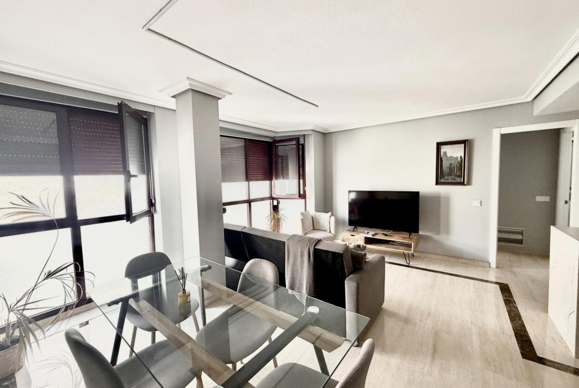Inmobiliarias Encuentro vende en exclusiva un impresionante piso recién reformado de 59 m² ubicado en la codiciada zona de Guindalera. Esta propiedad cuenta con una habitación doble equipada con armarios empotrados y un baño completo moderno que incluye plato de ducha. La cocina americana está totalmente equipada con electrodomésticos nuevos, ideal para quienes disfrutan cocinar y recibir invitados. El amplio salón-comedor se beneficia de abundante luz natural gracias a sus ventanales desde el suelo hasta el techo, creando un ambiente acogedor y luminoso.