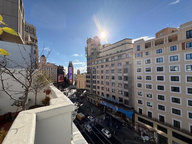 Ático exclusivo en plena Gran Vía con 3 terrazas y vistas al Capitol – 200 m² con apartamento integrado e independiente