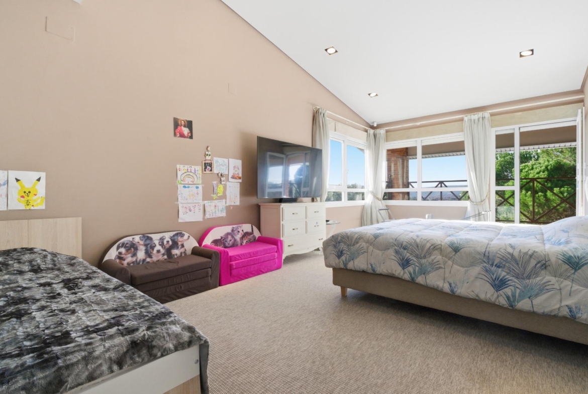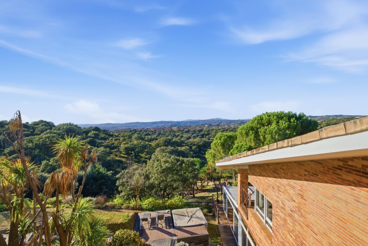 Esta exclusiva vivienda de tres plantas se levanta en una parcela completamente consolidada de 2950 m2 y tiene 711 m2 construidos. Destaca por combinar la modernidad y la comodidad con un gran estilo. En la planta baja encontramos un amplio salón con grandes ventanales abiertos al maravilloso jardín, una moderna cocina con isla y cuarto de lavandería independiente, un aseo de cortesía, una estancia dedicada a despacho y dos dormitorios en planta, el principal, abierto al jardín con vestidor y baño en suite. En la primera planta está la zona de descanso con dos amplios dormitorios con dos baños completos y un acogedor salón que hace que esta planta sea perfecta para recibir a invitados. La vivienda dispone de una zona abuhardillada con una habitación multiusos. La planta sótano nos sorprende con un maravilloso club privado con zona polideportiva, piscina cubierta, bar con vinoteca y cocina y sauna con vestuario y baño. Encontramos también la zona de garaje cerrada para dos vehículos, con una zona exterior para otros dos coches con cubierta de madera y plataforma giratoria para reducir las maniobras. Hay que mencionar el maravilloso jardín que rodea la vivienda con una zona cubierta donde podemos celebrar inolvidables cenas de verano.