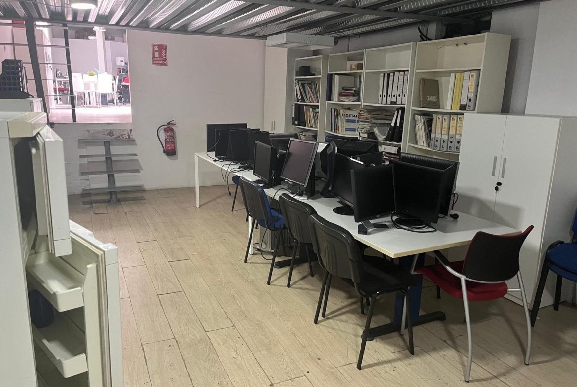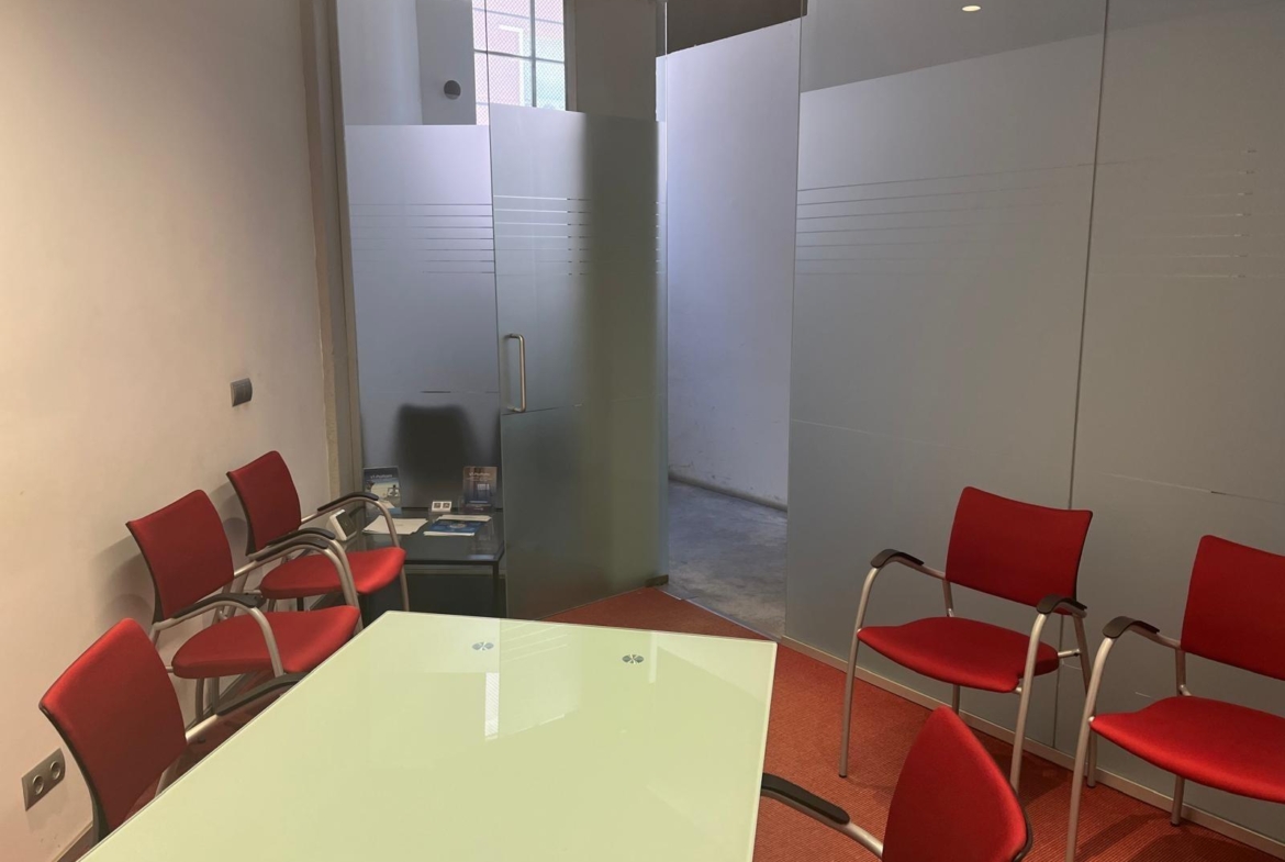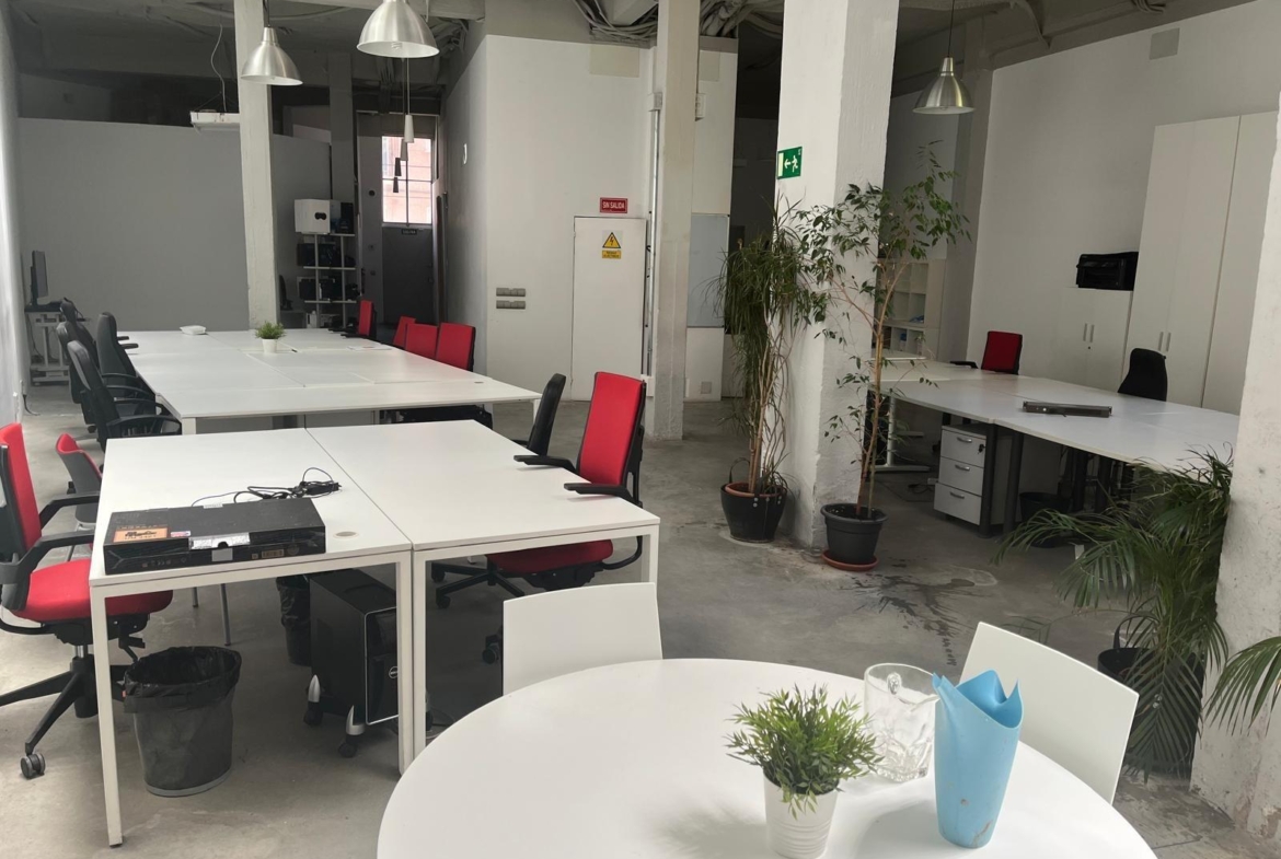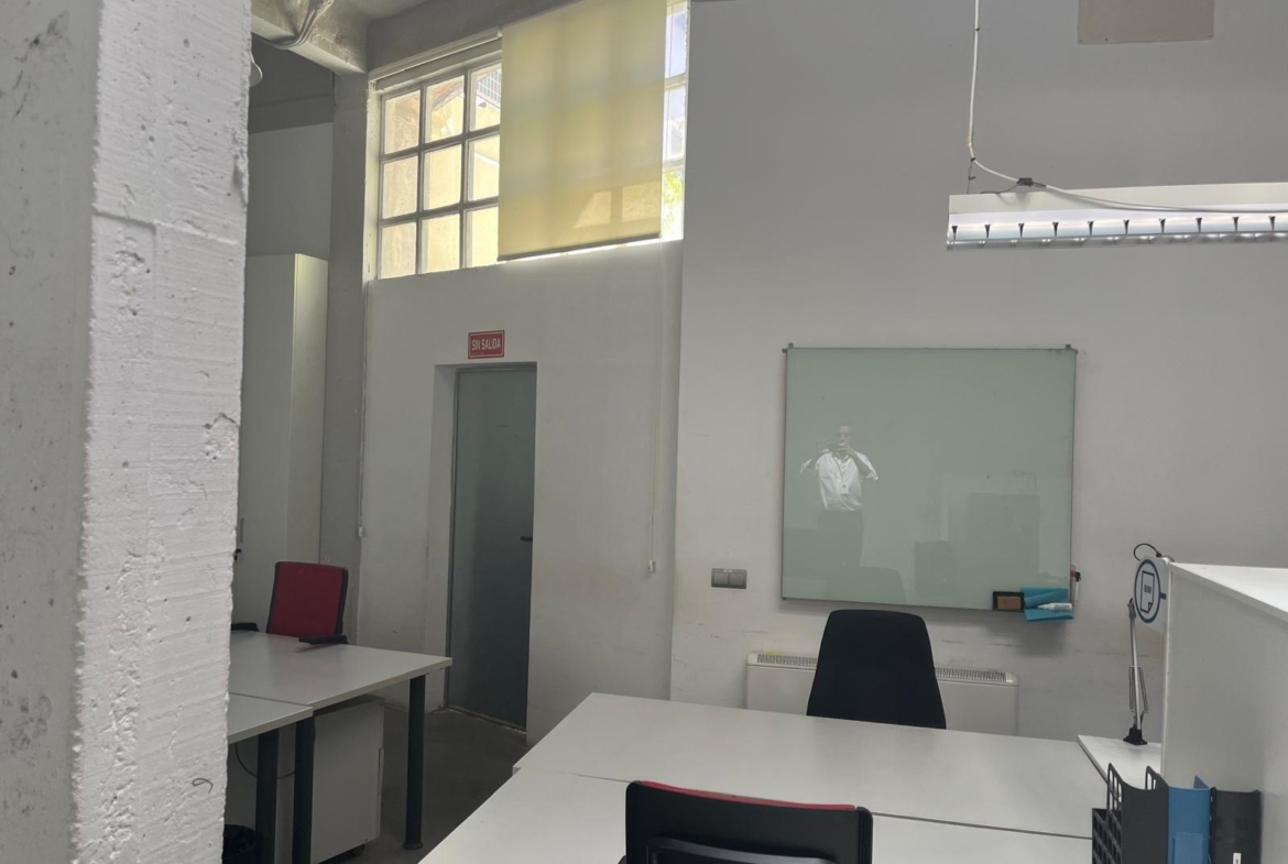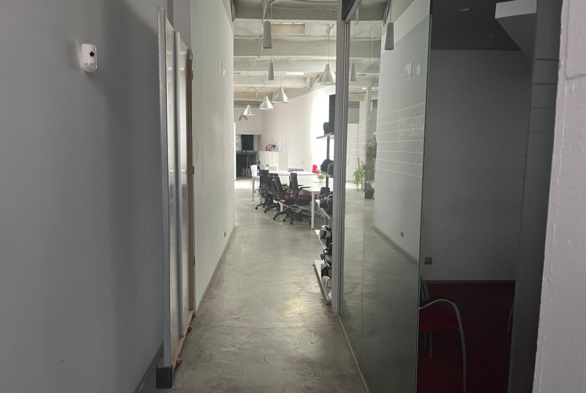 En verdad son dos locales exteriores a 2 calles diferentes totalmente unificados por dentro que lo convierten en un amplísimo espacio absolutamente funcional y versátil según el uso al que se le quiera destinar. A día de hoy cuenta con diversos despachos comunicados, despacho independiente, sala de cocina y comedor, sala de almacenaje, 2 baños con ducha, un patio interior y garaje privado.