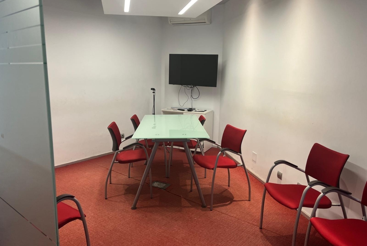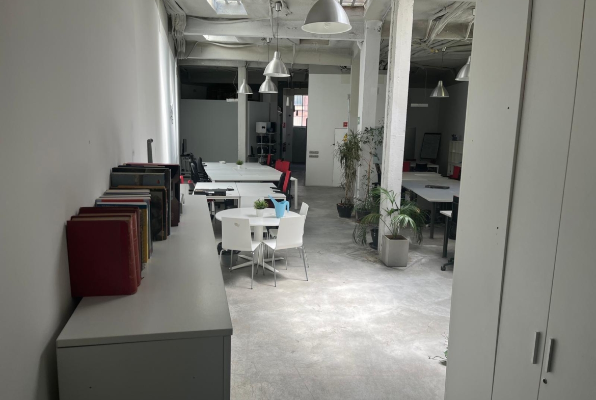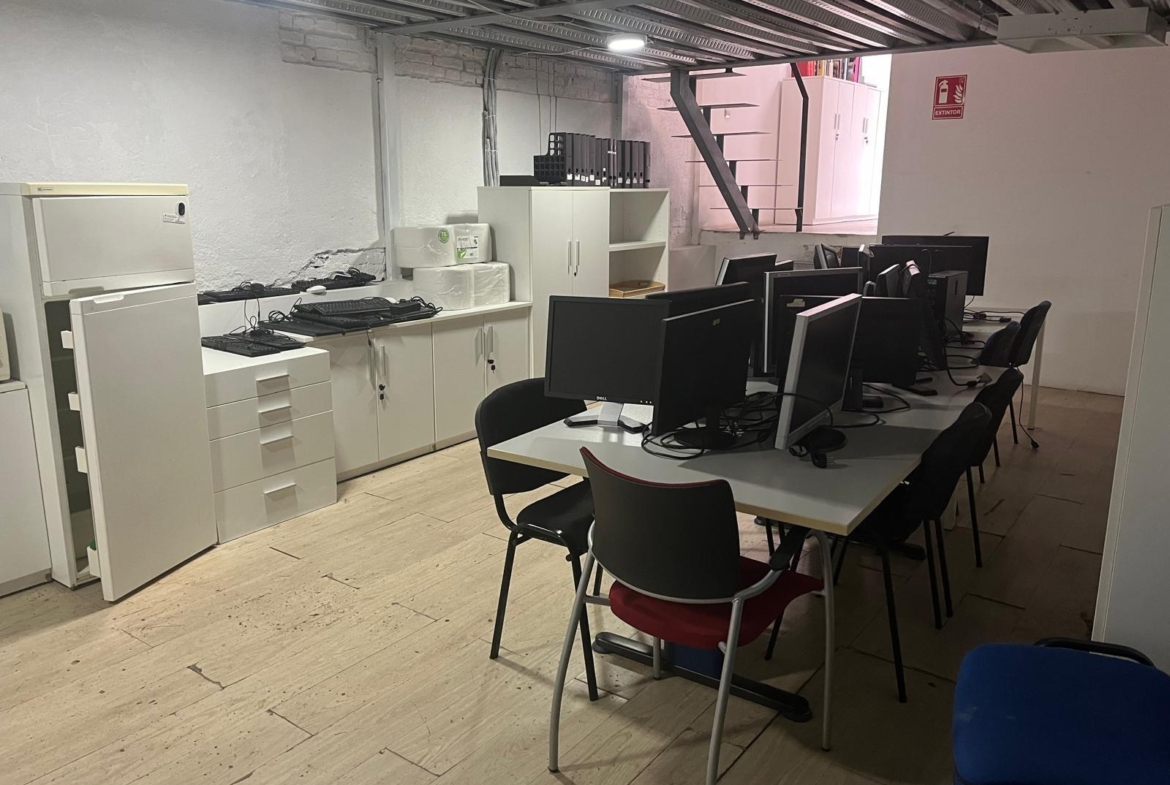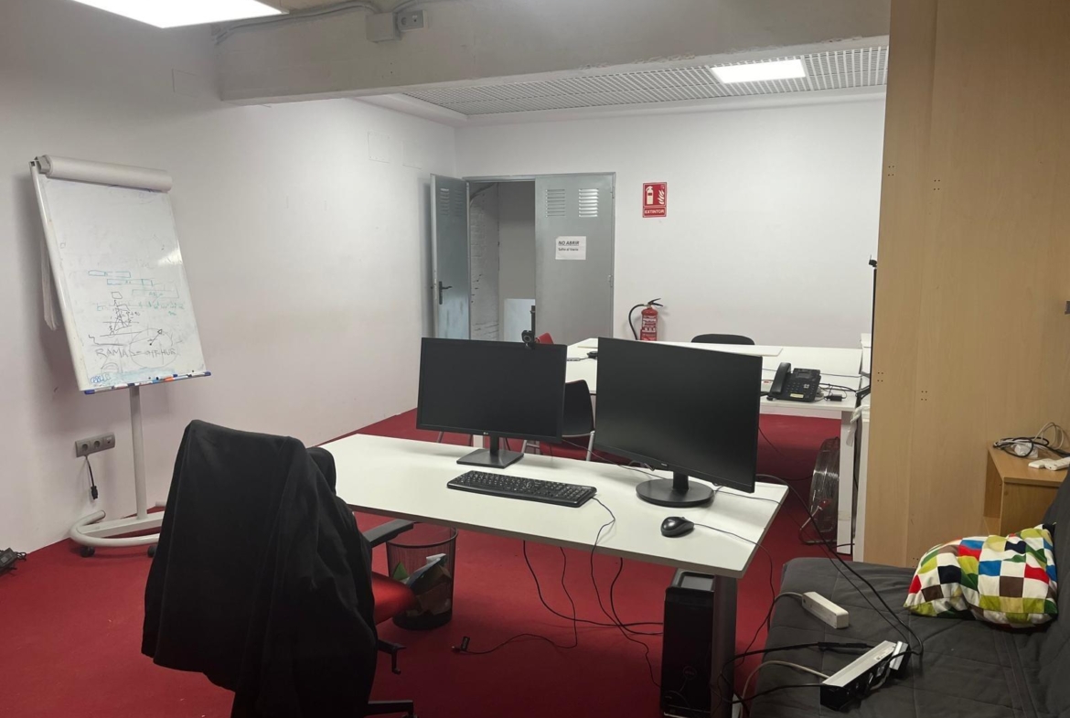 En verdad son dos locales exteriores a 2 calles diferentes totalmente unificados por dentro que lo convierten en un amplísimo espacio absolutamente funcional y versátil según el uso al que se le quiera destinar. A día de hoy cuenta con diversos despachos comunicados, despacho independiente, sala de cocina y comedor, sala de almacenaje, 2 baños con ducha, un patio interior y garaje privado.