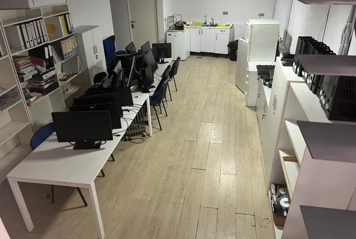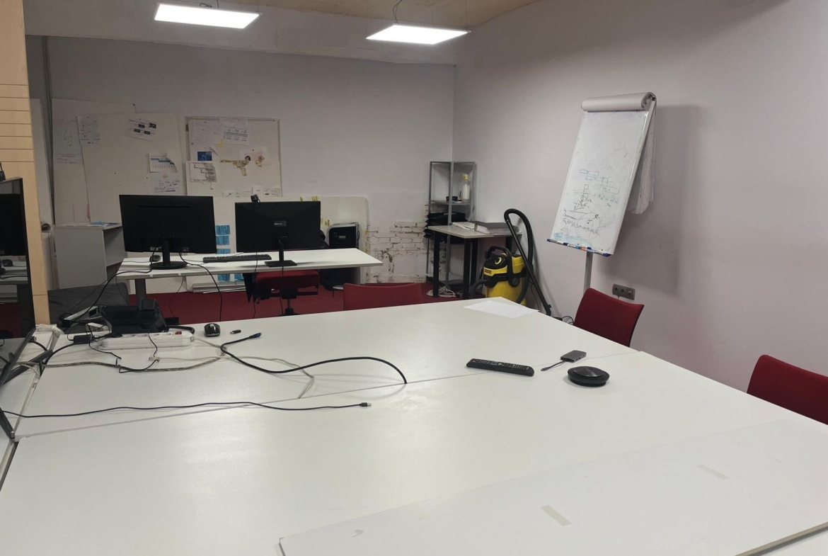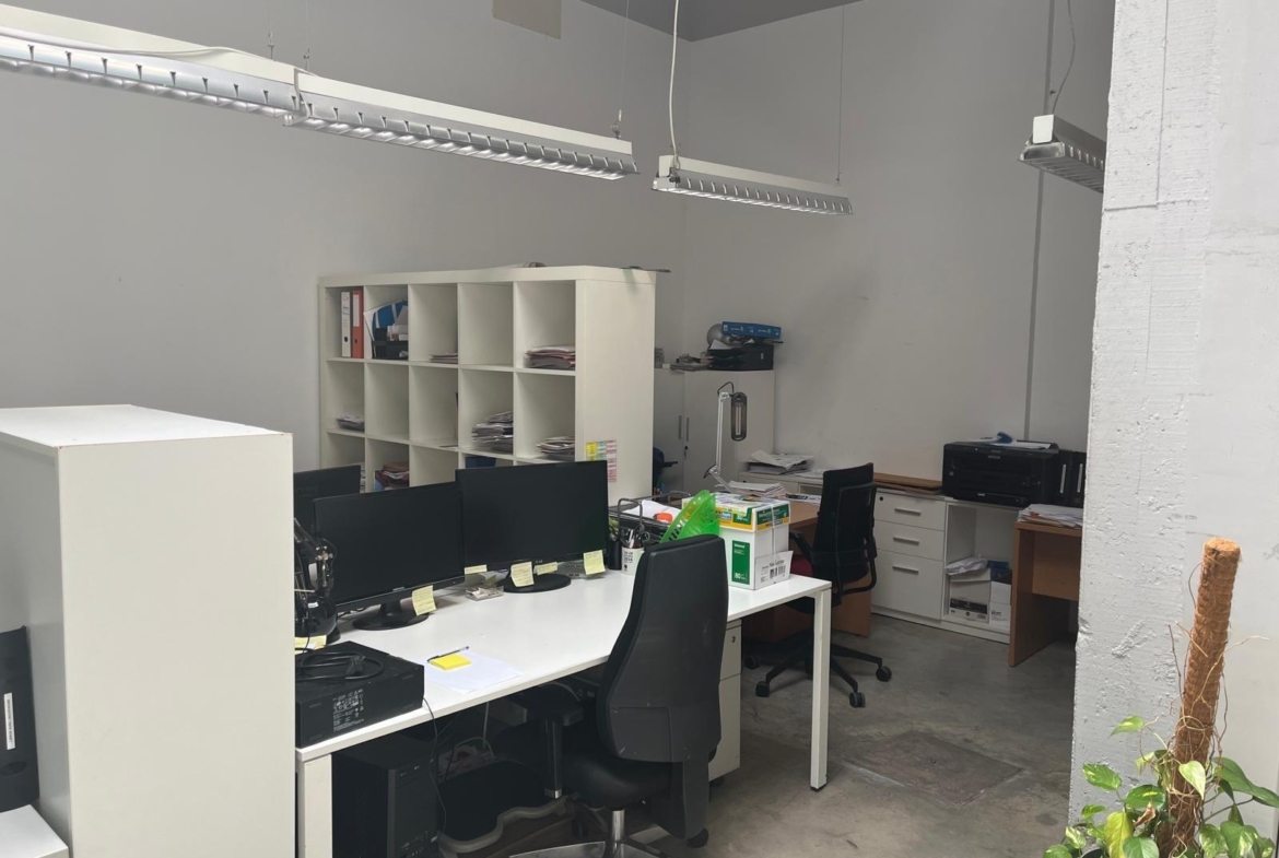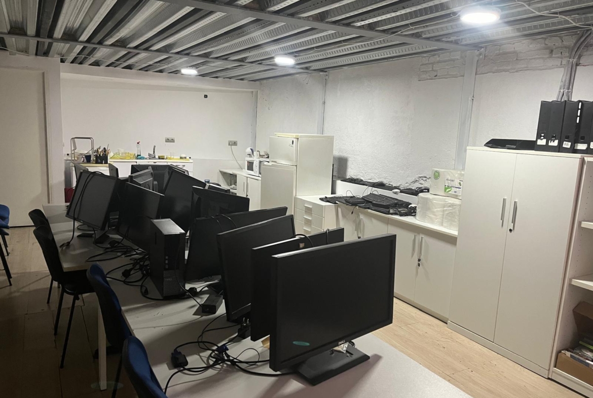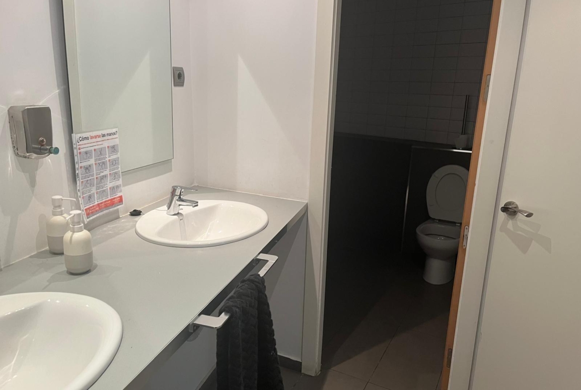 En verdad son dos locales exteriores a 2 calles diferentes totalmente unificados por dentro que lo convierten en un amplísimo espacio absolutamente funcional y versátil según el uso al que se le quiera destinar. A día de hoy cuenta con diversos despachos comunicados, despacho independiente, sala de cocina y comedor, sala de almacenaje, 2 baños con ducha, un patio interior y garaje privado.