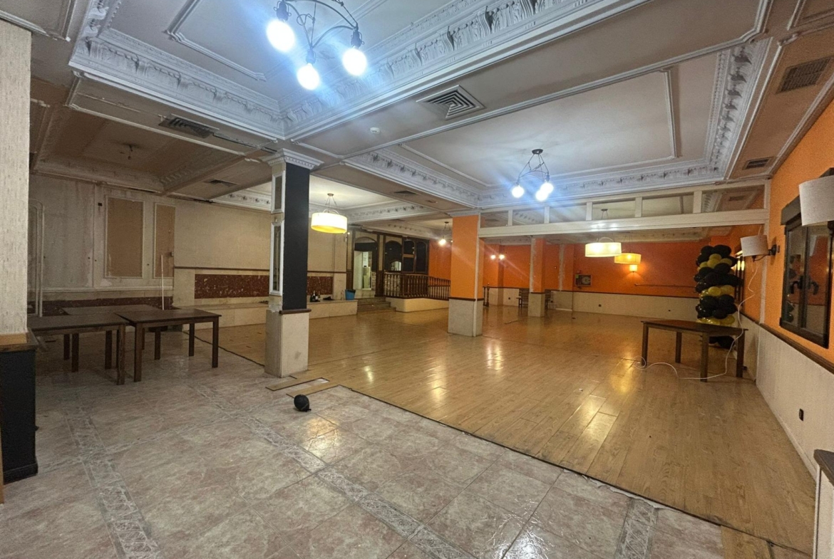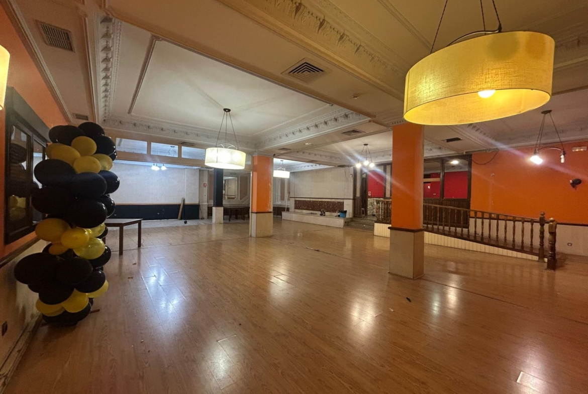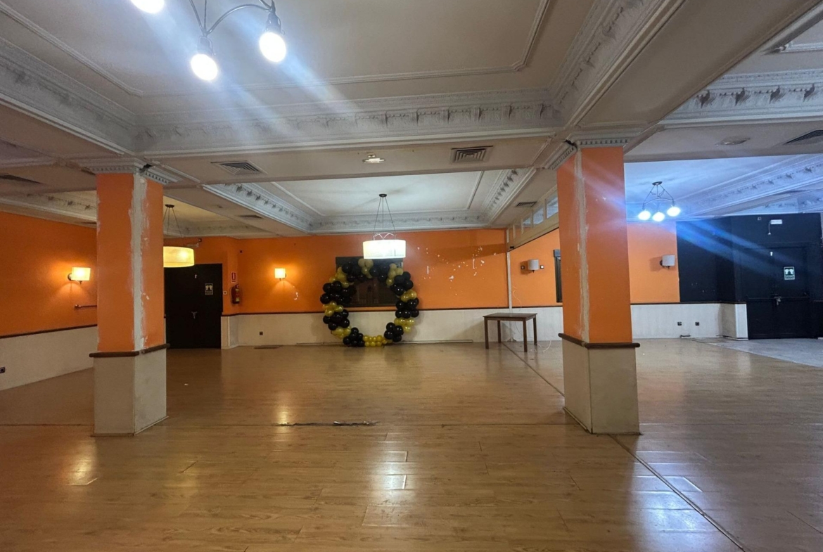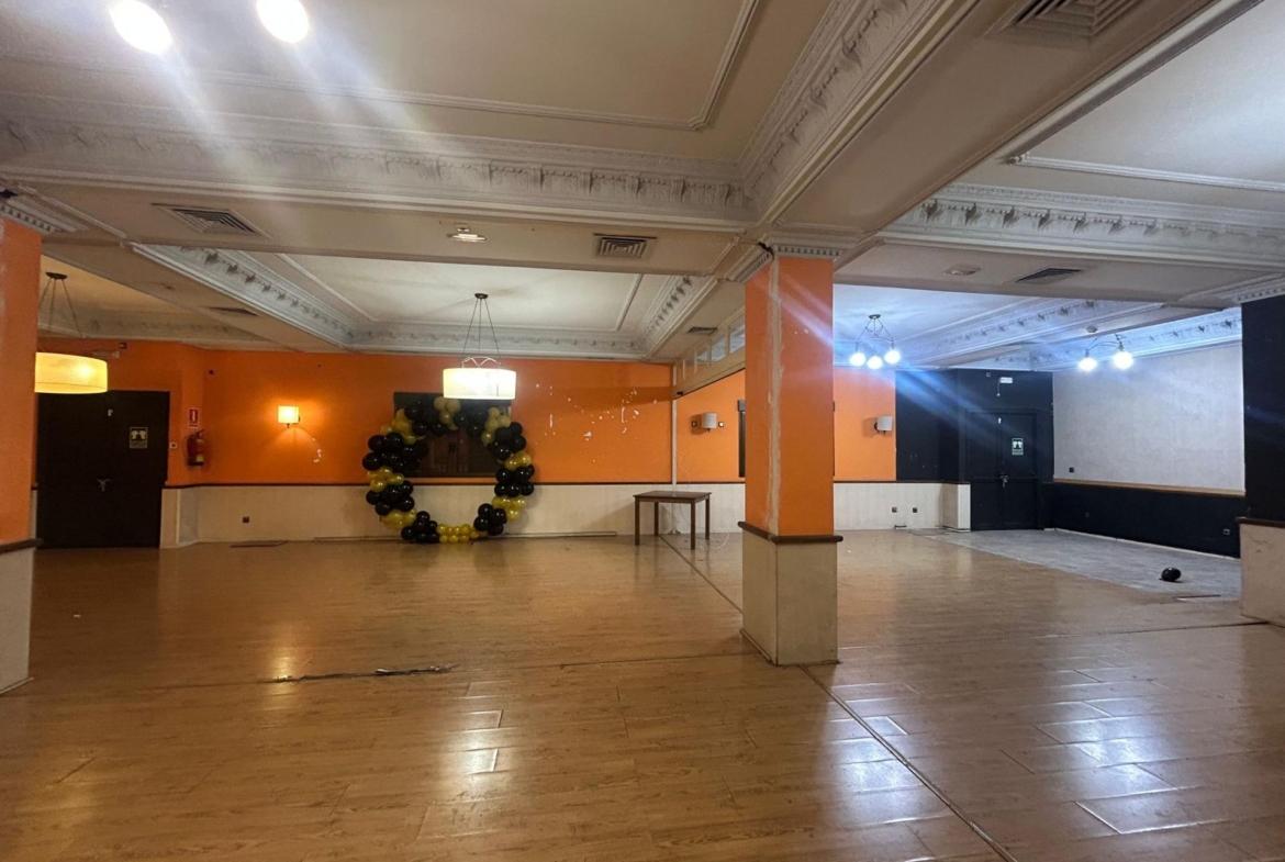 Local exterior a 2 calles diferentes totalmente unificados por dentro que lo convierten en un amplísimo espacio absolutamente funcional y versátil según el uso al que se le quiera destinar. A día de hoy cuenta con dos salas comunicadas, sala de cocina, sala de almacenaje, 2 baños (caballeros y mujeres/minusválidos), cuarto para trabajadores. Última actividad: Salón de bodas.