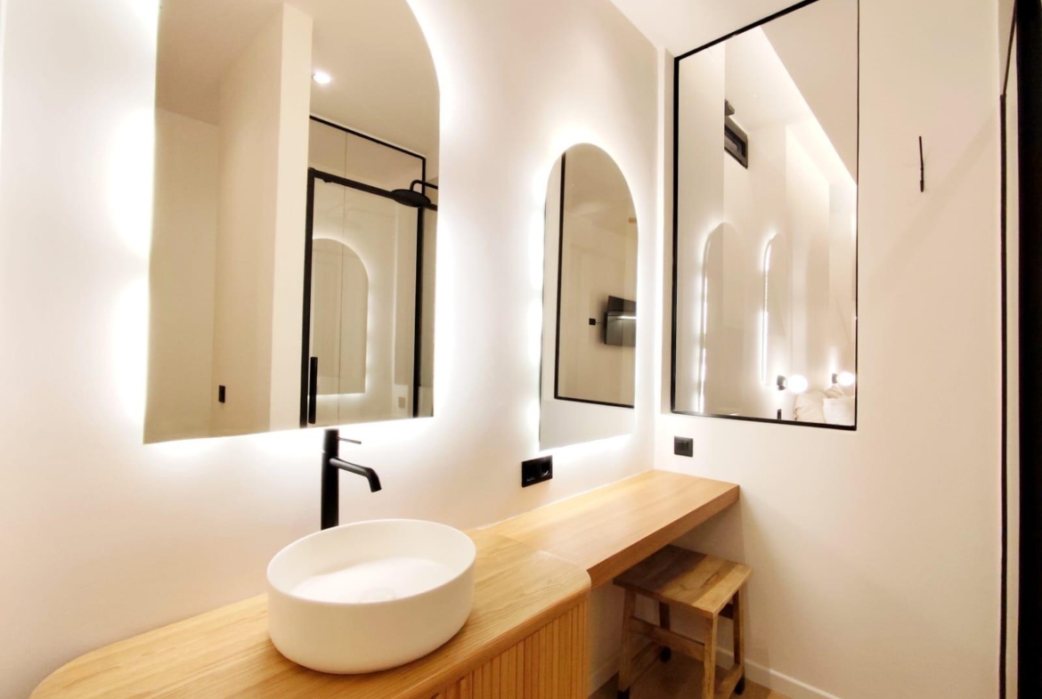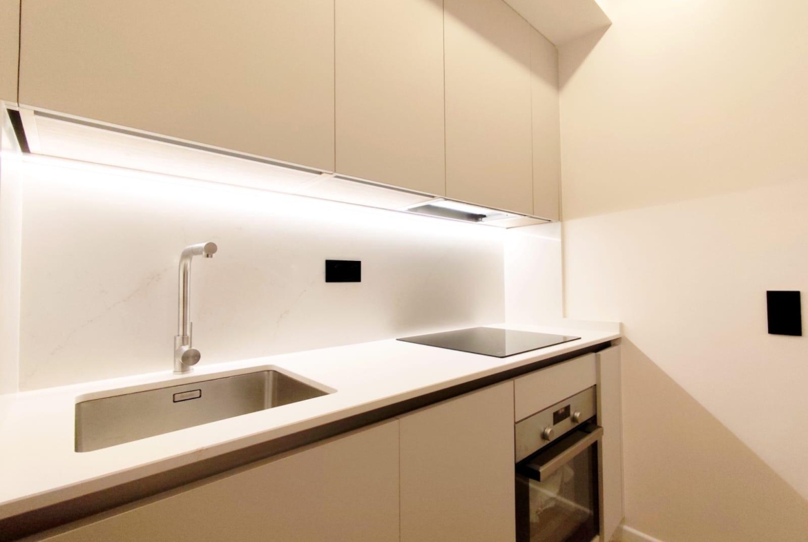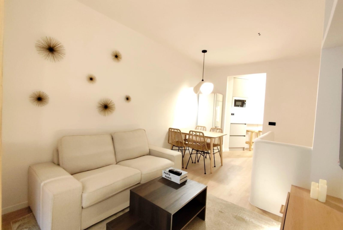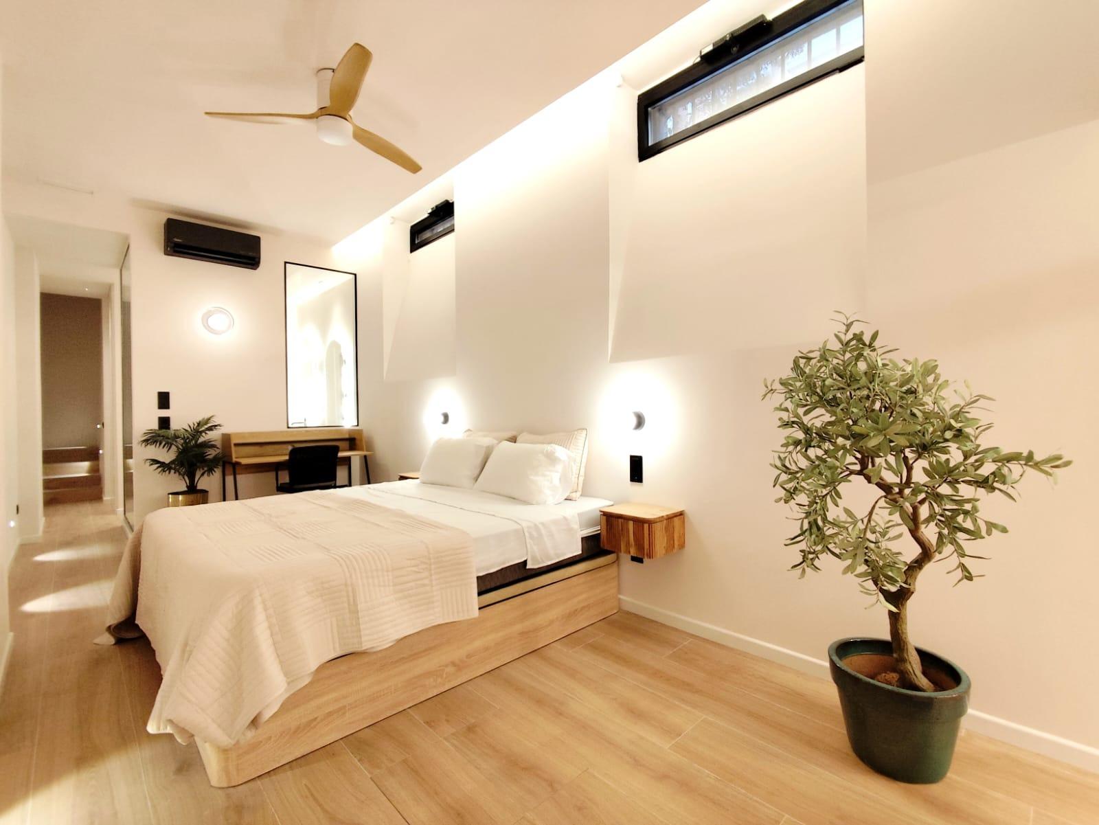 La cocina está completamente equipada con electrodomésticos integrados y mobiliario de diseño, ofreciendo un espacio práctico y preparado para el día a día. Además, el inmueble cuenta con un encantador patio privado, ideal para disfrutar del sol, crear una zona chill-out o incorporar vegetación y decoración exterior.