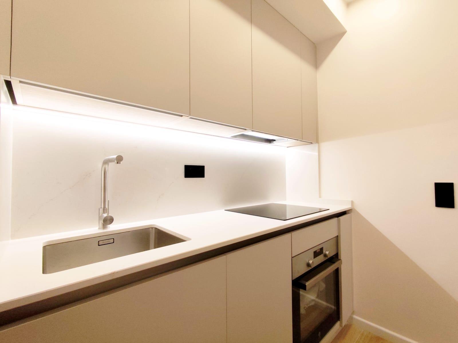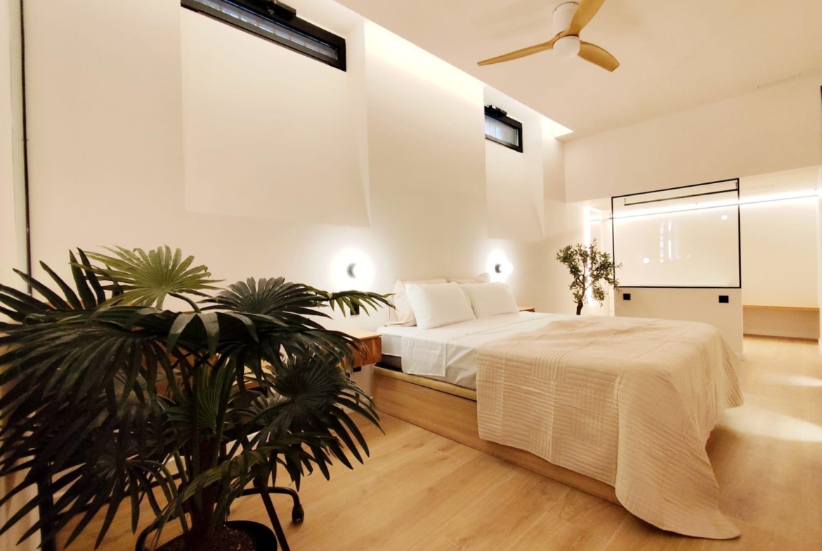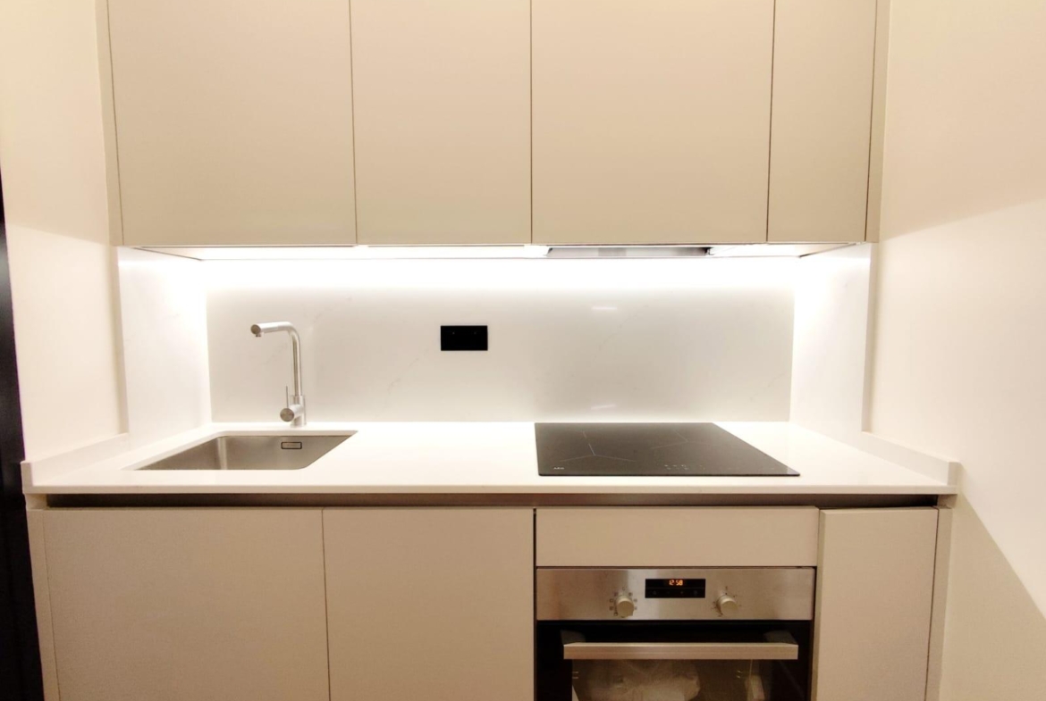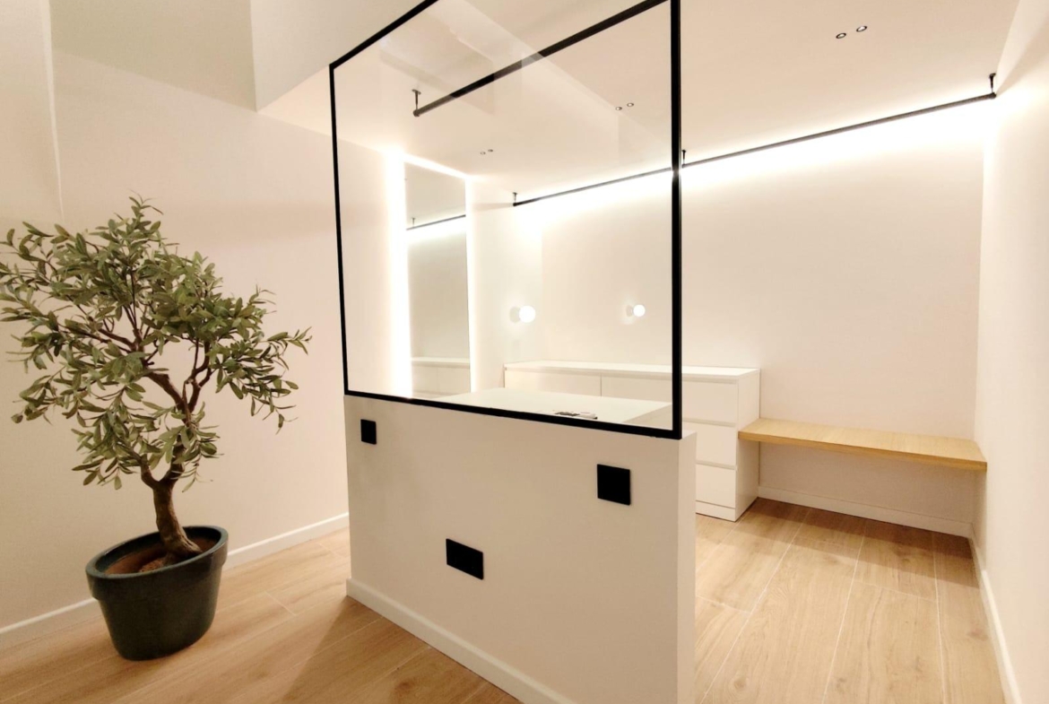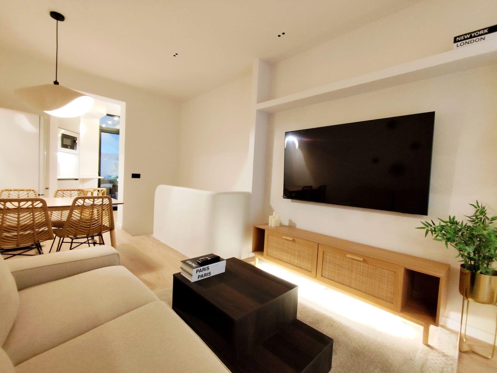 La cocina está completamente equipada con electrodomésticos integrados y mobiliario de diseño, ofreciendo un espacio práctico y preparado para el día a día. Además, el inmueble cuenta con un encantador patio privado, ideal para disfrutar del sol, crear una zona chill-out o incorporar vegetación y decoración exterior.