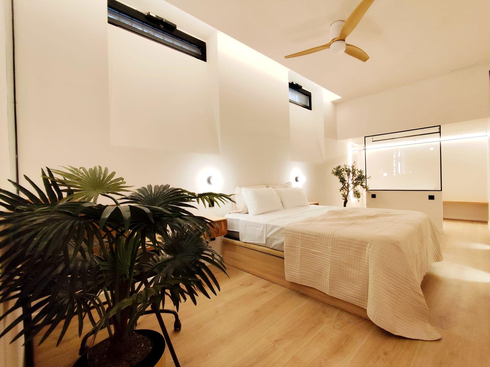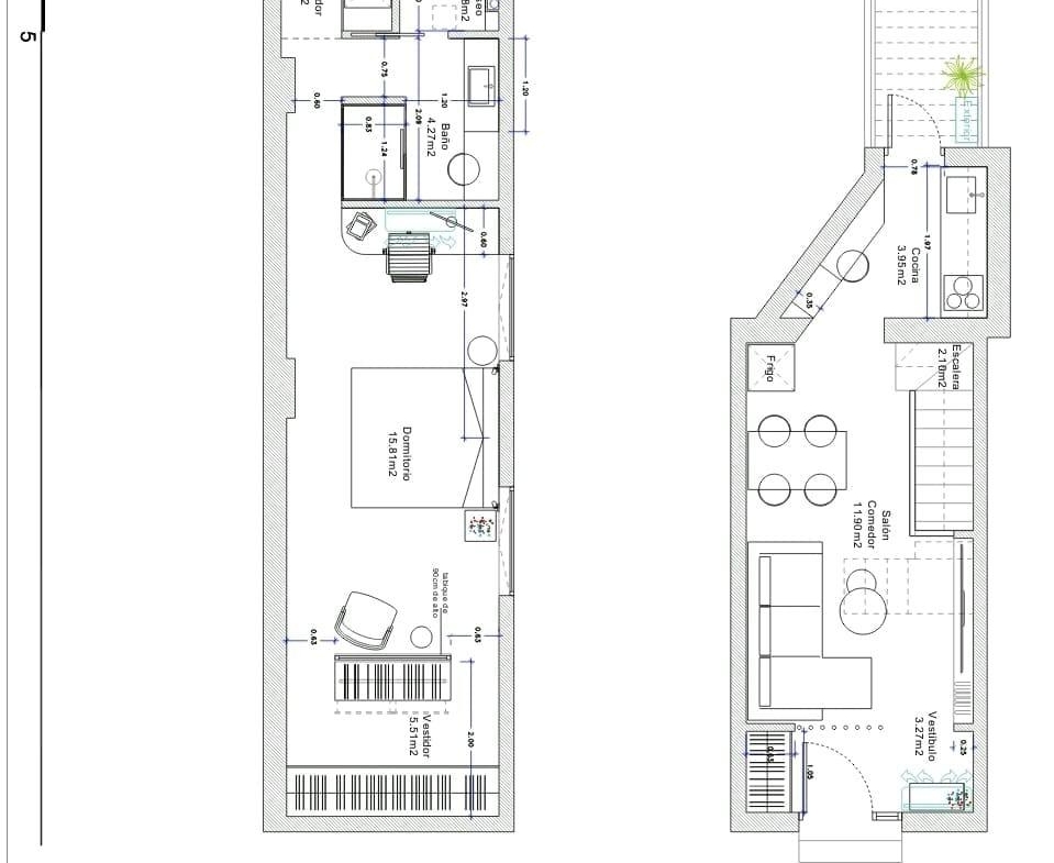 La distribución es tipo dúplex invertido, aprovechando al máximo cada espacio. La planta inferior alberga un dormitorio doble amplio y confortable, que dispone de un elegante baño en suite con acabados de alta calidad. En la planta principal se encuentra un salón-comedor equilibrado y acogedor, perfecto para crear diferentes ambientes.