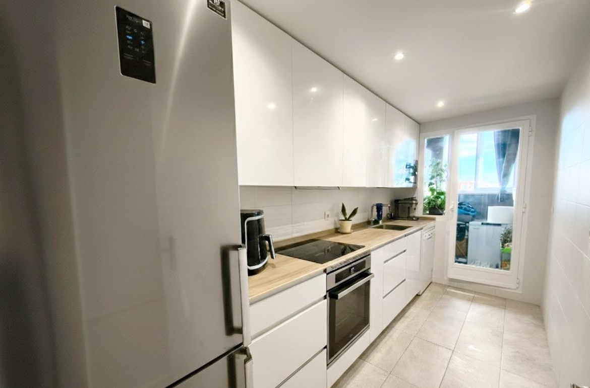 Es una vivienda de 116 m2 construidos y 68 m2 útiles en una planta. Nos recibe un magnífico hall de entrada que distribuye el espacio al luminoso salón comedor con acceso directo a la terraza, donde disfrutaremos de unas magníficas vistas, a la amplia cocina independiente reformada con tendedero cubierto y a la zona de descanso a través de un pasillo con armario empotrado de cuatro cuerpos. En esta zona tenemos dos amplias habitaciones con armarios empotrados y un baño completo con bañera. Completa la vivienda una plaza de garaje y un trastero con gran capacidad de almacenaje.