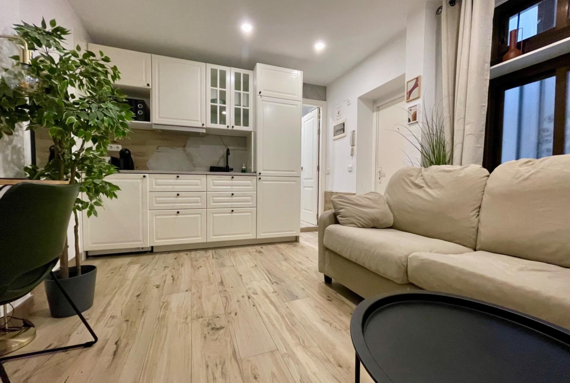 Inmobiliarias Encuentro pone a la venta fantástico apartamento en el corazón del barrio mas vibrante y cosmopolita del distrito centro; Malasaña. Este coqueto apartamento consta de 30 metros cuadrados que se distribuyen en salón con cocina americana completamente amueblada y equipada con todos los electrodomésticos (incluyendo lavavajillas), amplio baño completo con plato de ducha y doble ventanal y un dormitorio independiente.