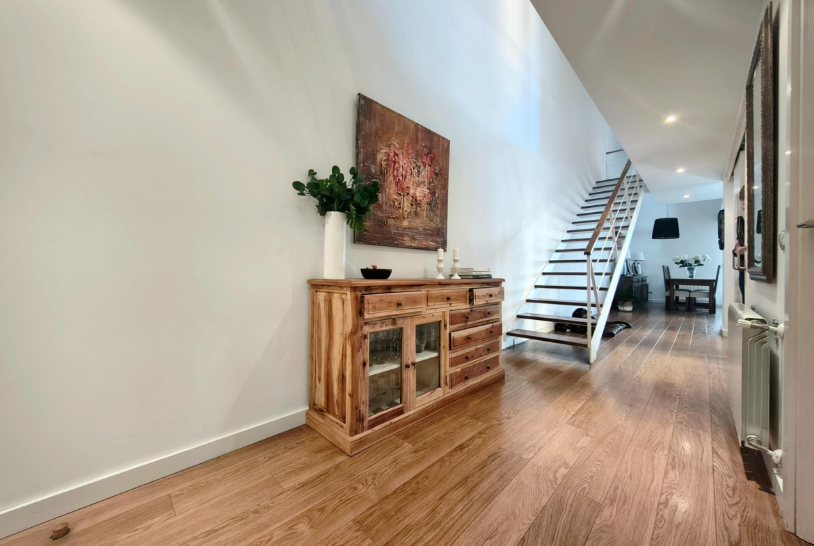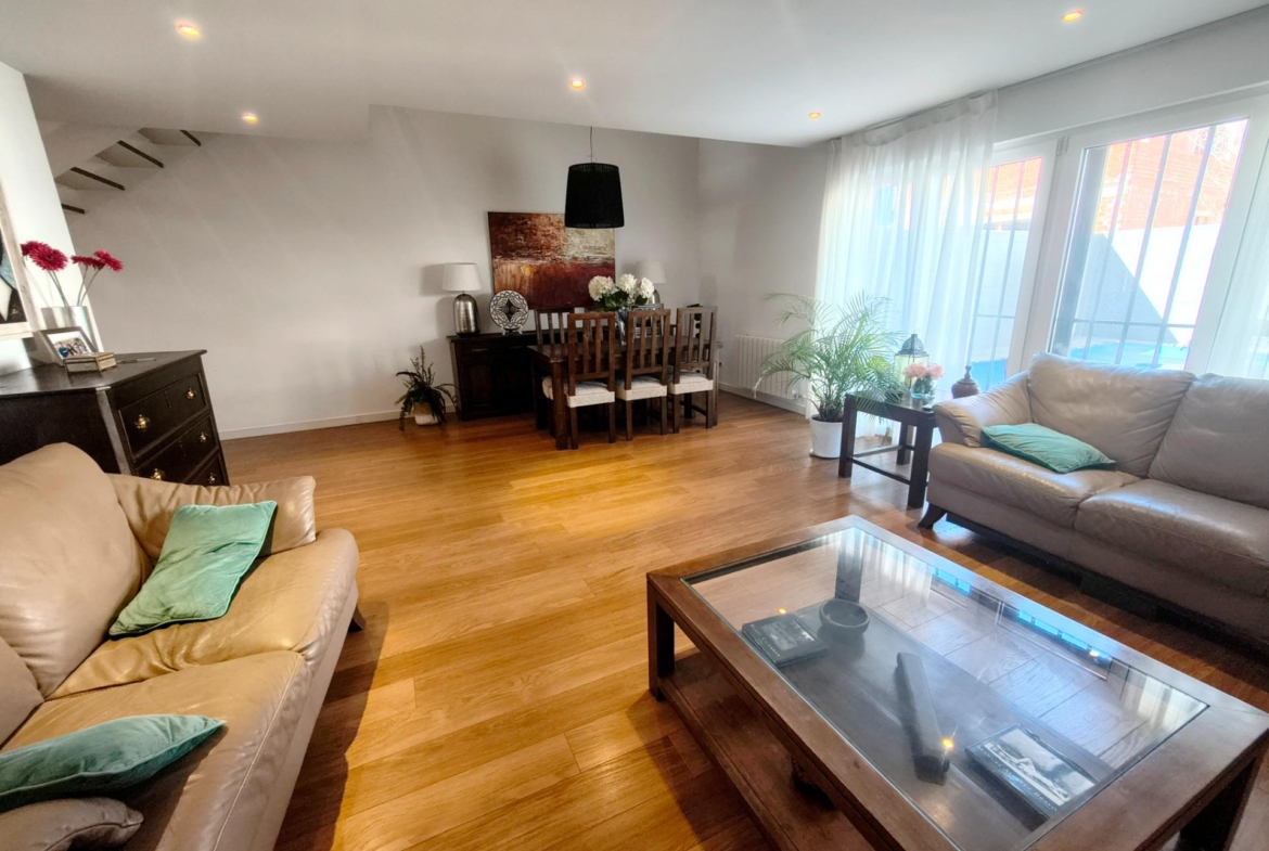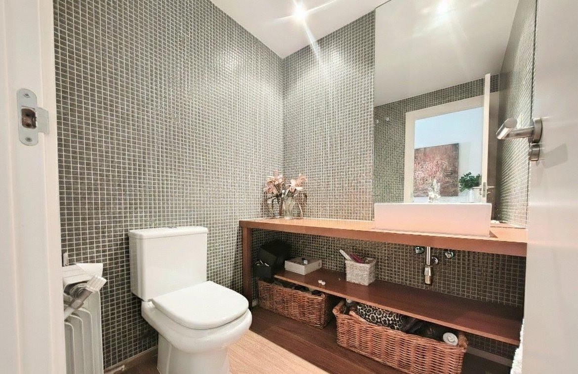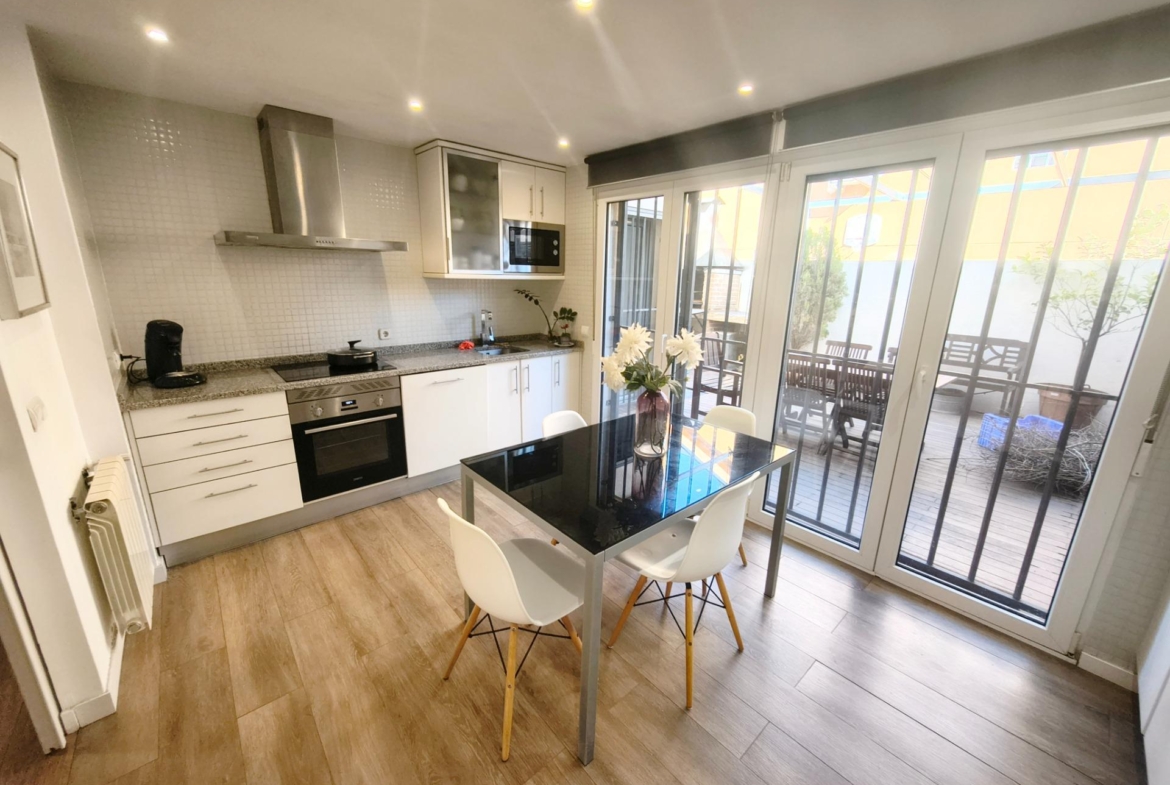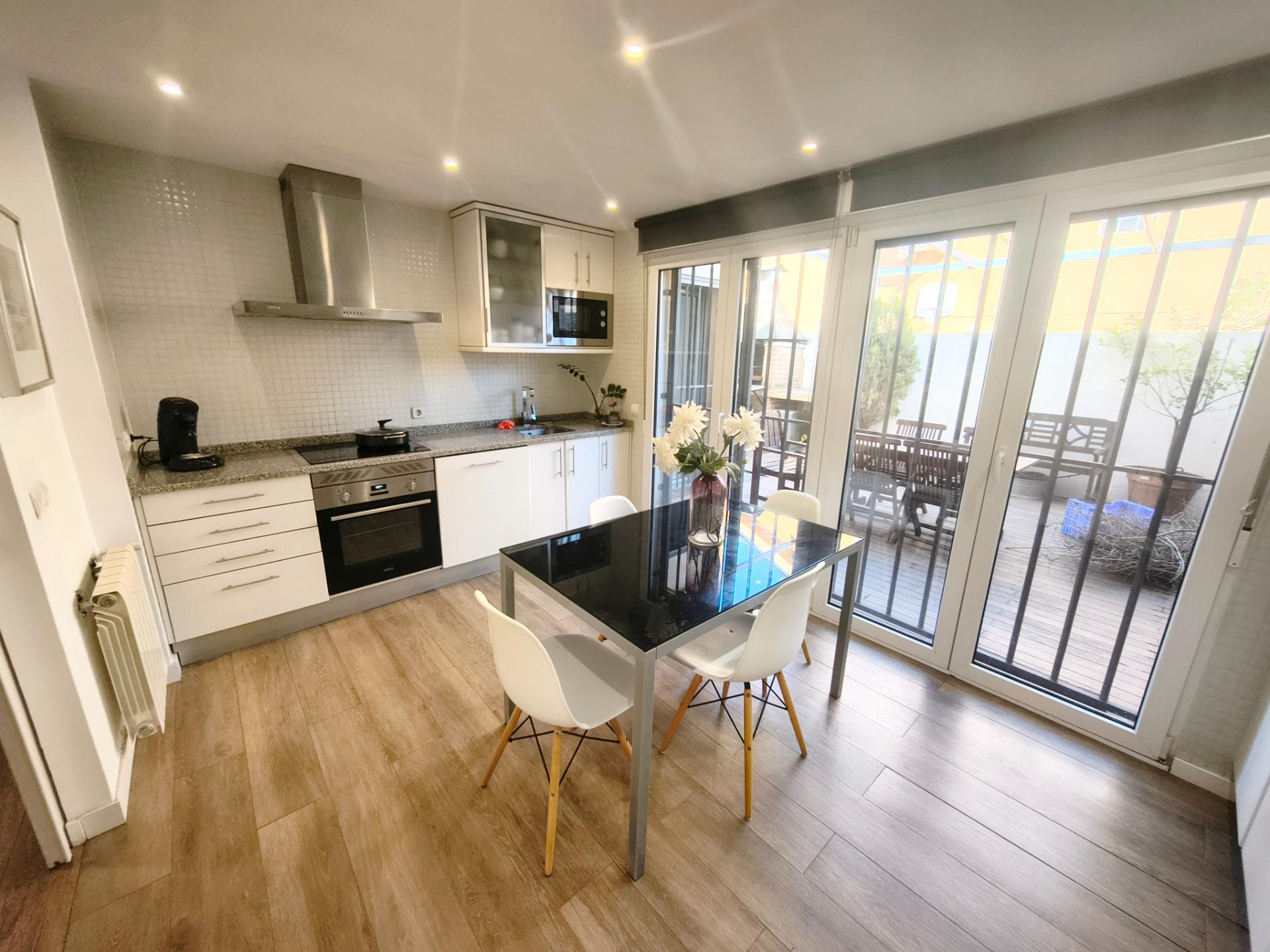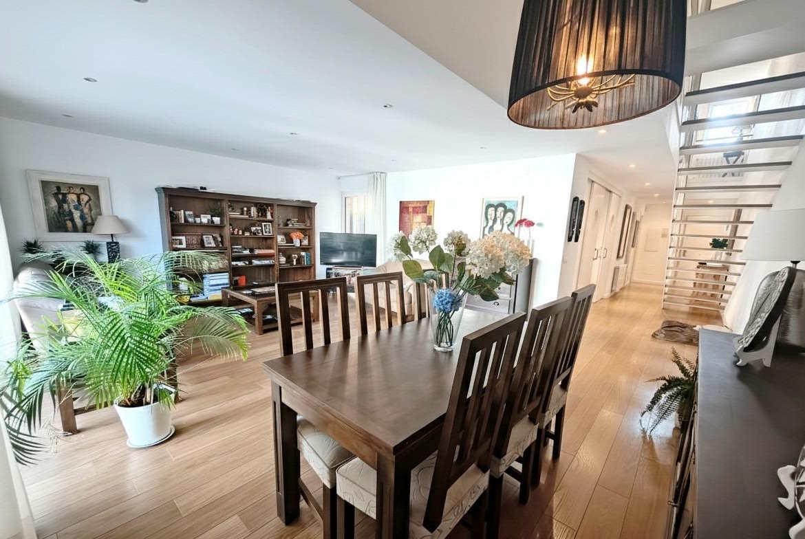 La vivienda tiene 309 m² construidos y 208 m2 de vivienda distribuidos en dos plantas, destacando su luminosidad y la amplitud de sus espacios. Nos recibe un jardín delantero solado antes de entrar al moderno hall, donde los techos altos hacen que el espacio se abra ante nosotros. A la derecha encontramos una habitación convertida actualmente en despacho y que en origen tenía un baño en suite dedicado ahora a cuarto de lavandería y despensa. A continuación, está un aseo de cortesía y la maravillosa cocina con puertas correderas, acceso al jardín a través de un gran ventanal. En esta parte del jardín encontramos la barbacoa de obra, tarima exterior de madera IPE, árboles consolidados y una pérgola donde podremos disfrutar del primer café con el sol de mañana. Llegamos al amplio salón comedor desde el que accedemos al jardín con una piscina de 24m2, zona de césped, pérgola y cuarto de almacenamiento. Una moderna escalera flotante nos conduce a la zona de descanso donde están los tres dormitorios, los cuales cuentan con armarios empotrados y tres baños en suite, el del dormitorio principal con bañera de hidromasaje y luz natural. Destacan los amplios espacios cuadrados de la vivienda sin obstáculos para la vista y perfectamente iluminados tanto por luz natural como por las luces encastradas en el techo.