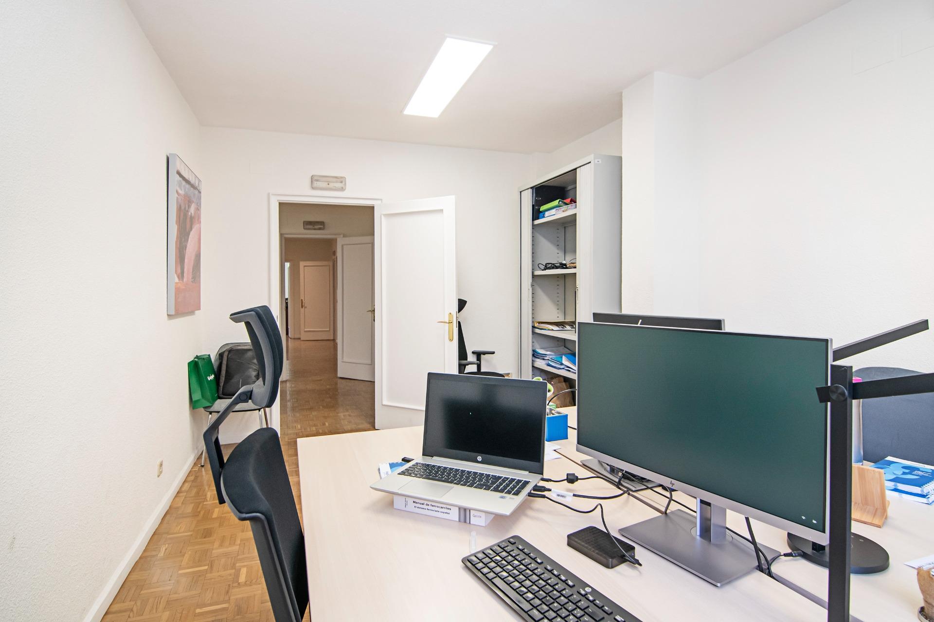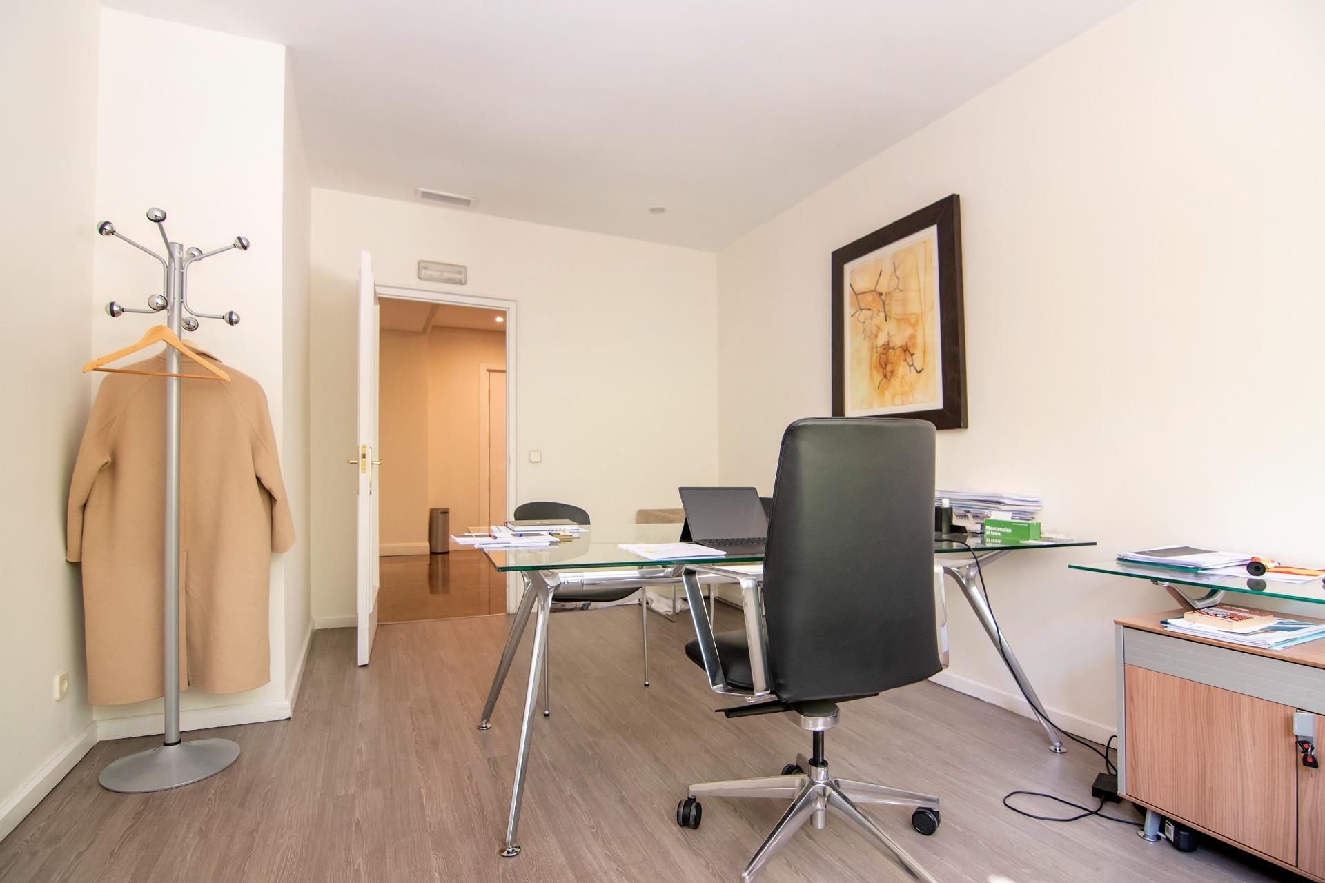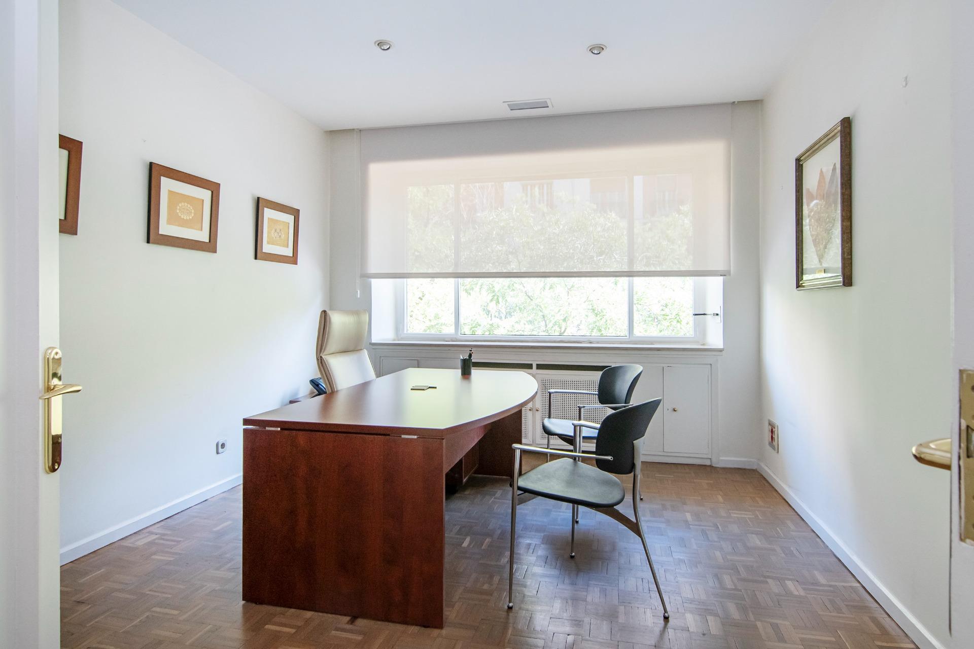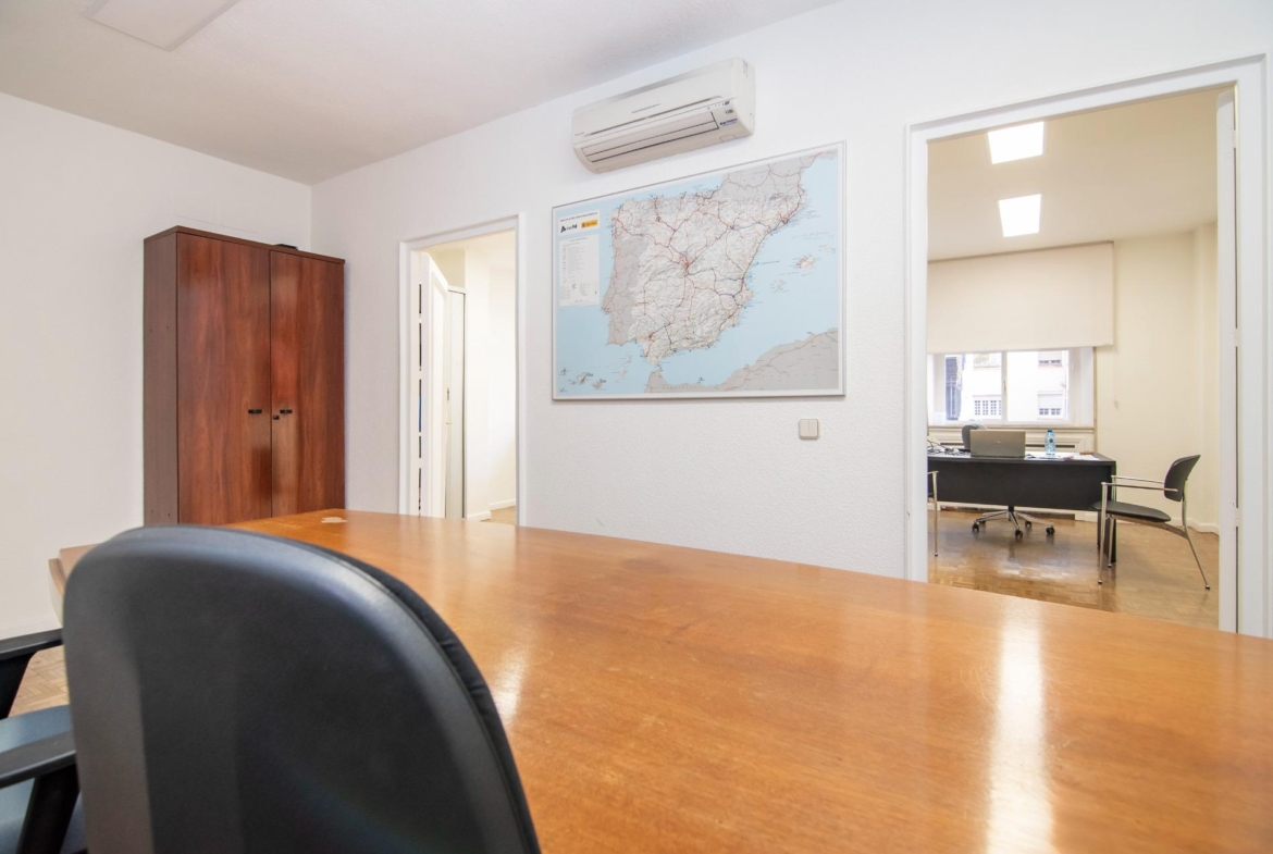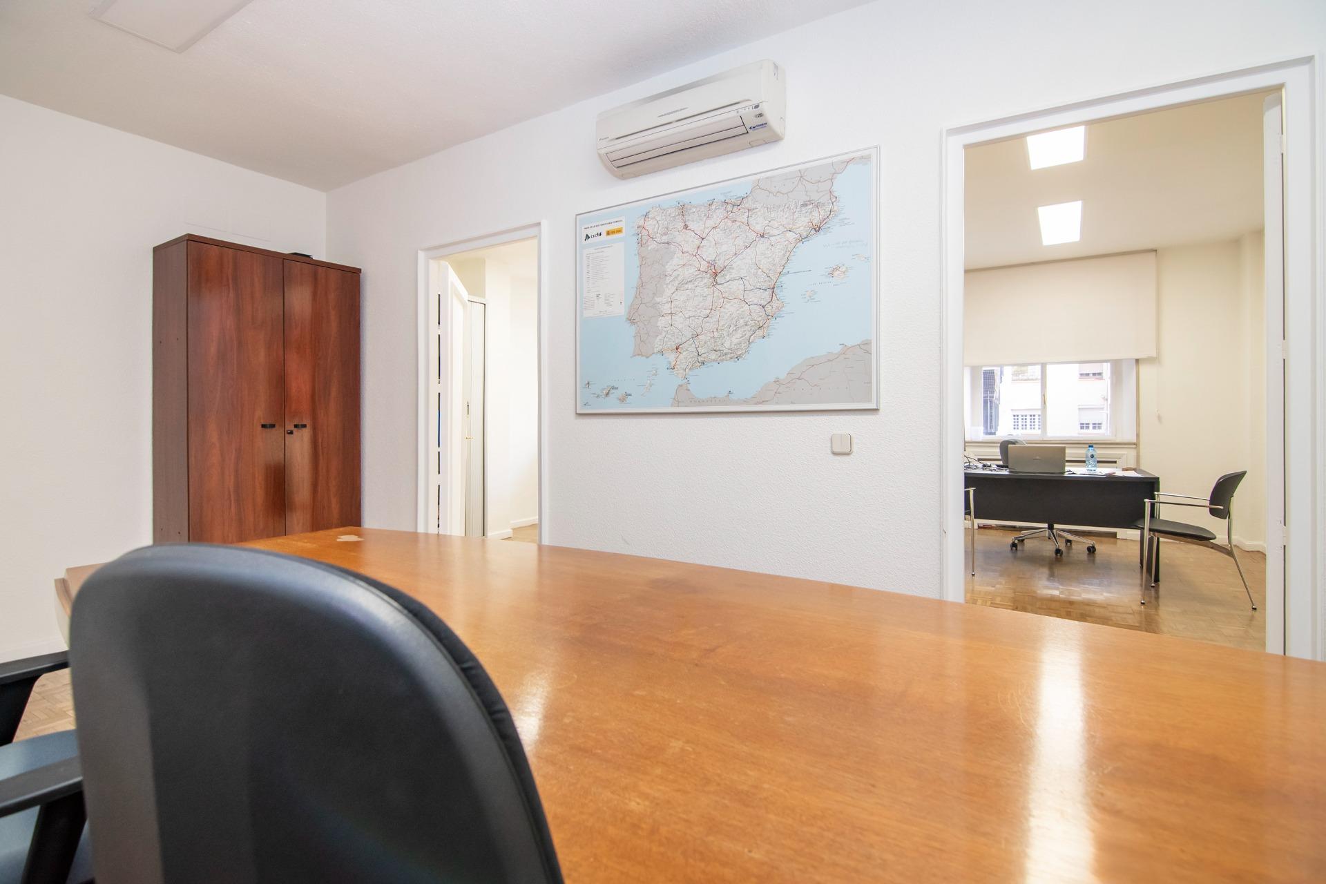 La oficina también dispone de tres baños funcionales y un office que facilita las pausas laborales del equipo. Todos los despachos cuentan con ventanales exteriores que permiten disfrutar vistas hacia la vibrante vida urbana madrileña.