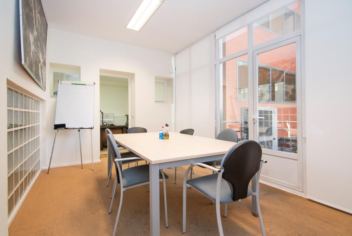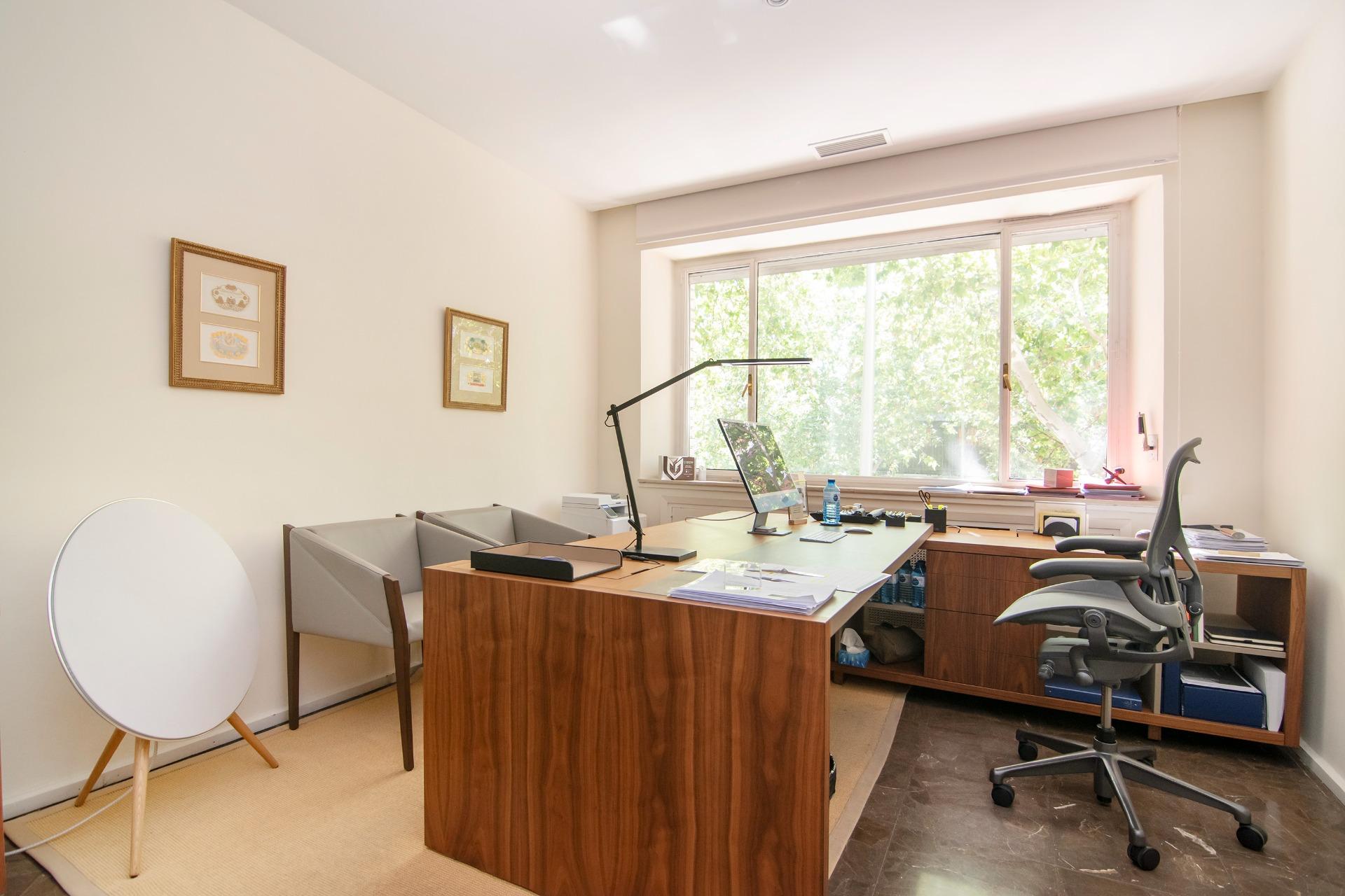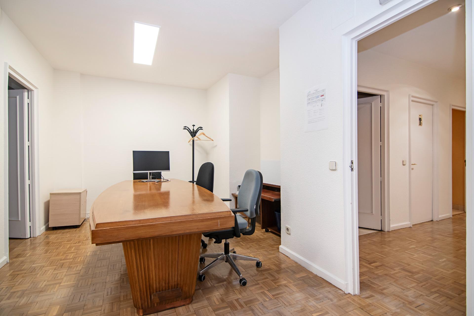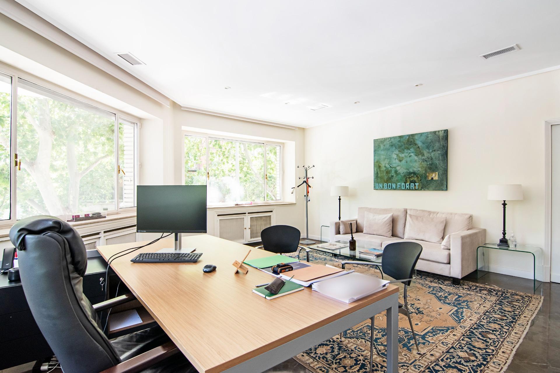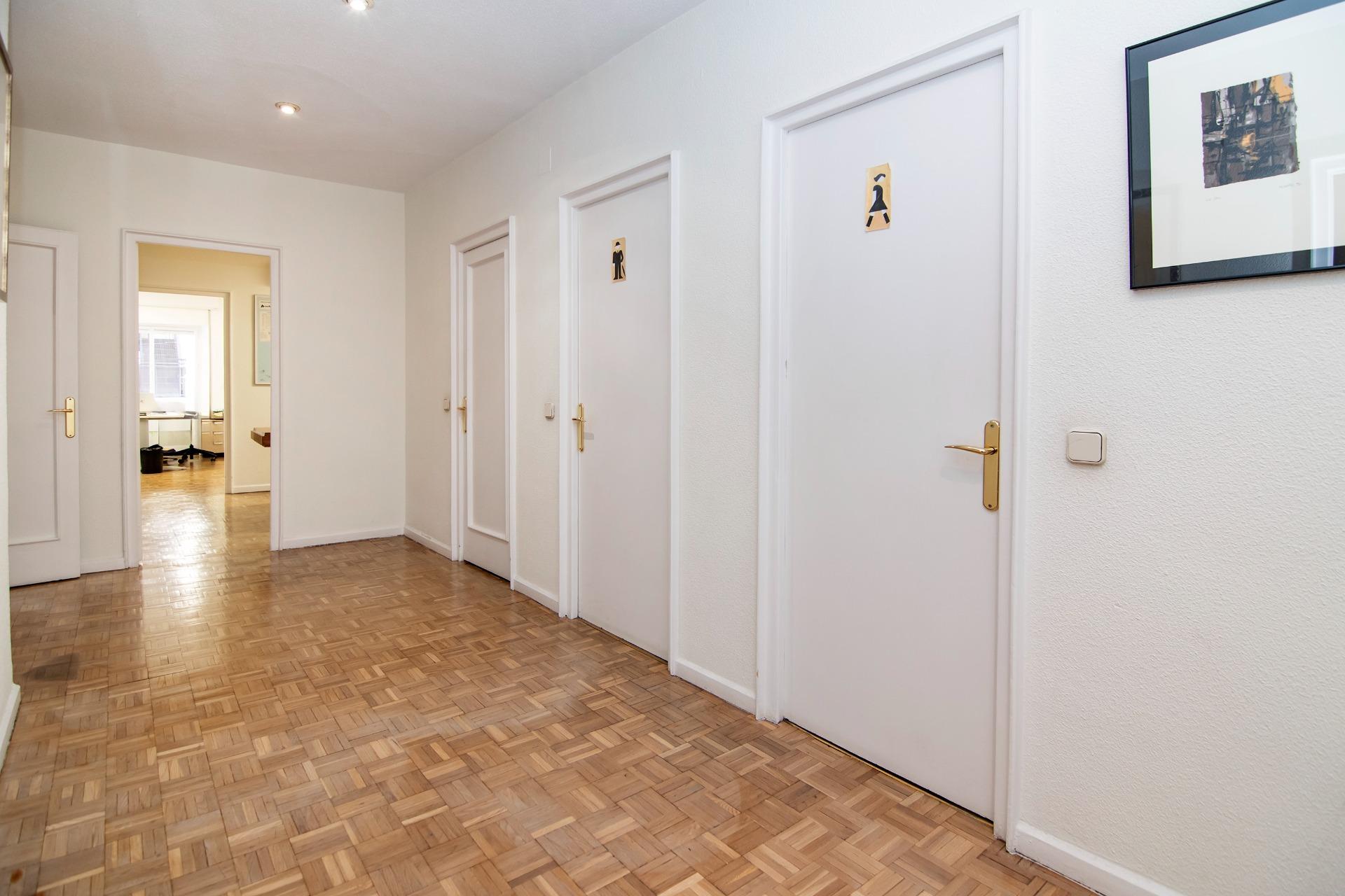 La oficina también dispone de tres baños funcionales y un office que facilita las pausas laborales del equipo. Todos los despachos cuentan con ventanales exteriores que permiten disfrutar vistas hacia la vibrante vida urbana madrileña.