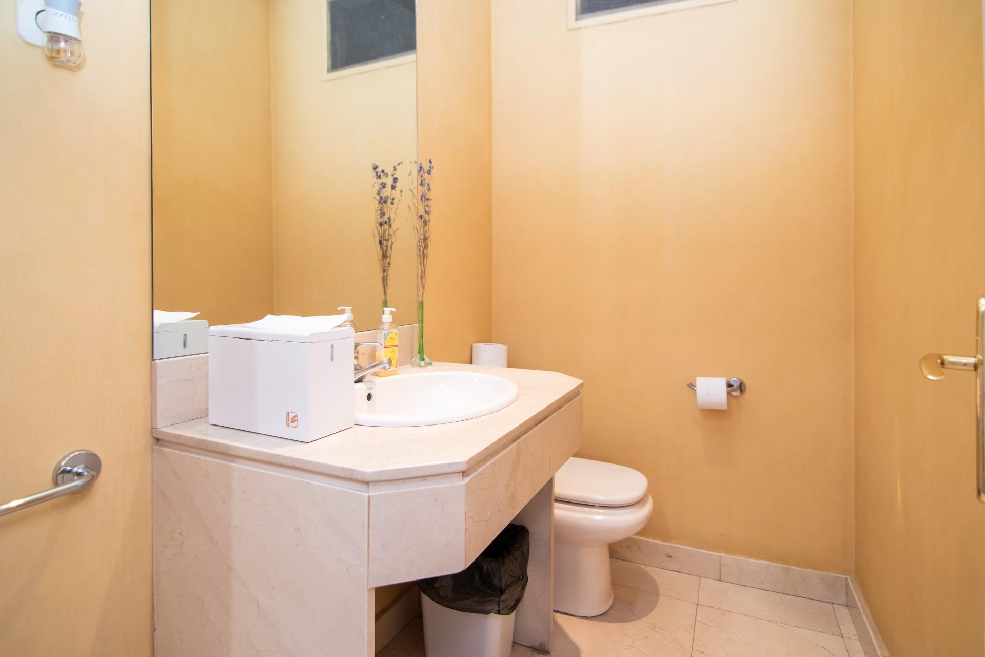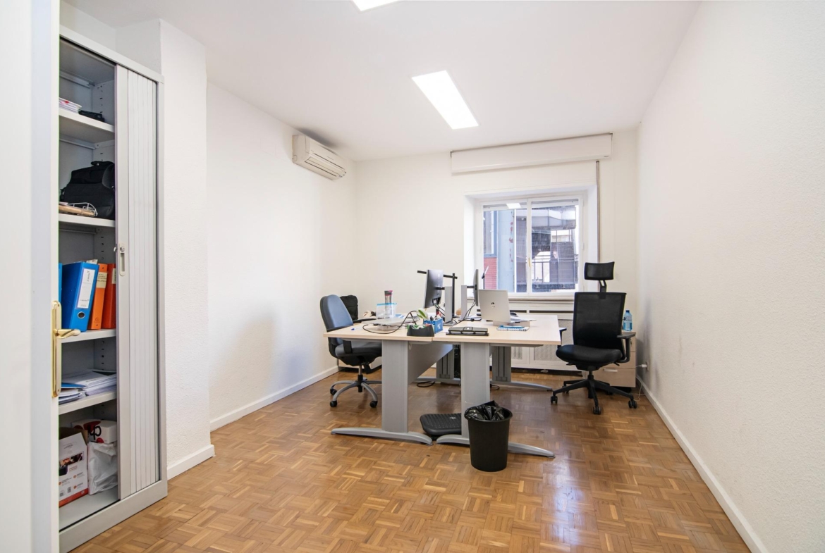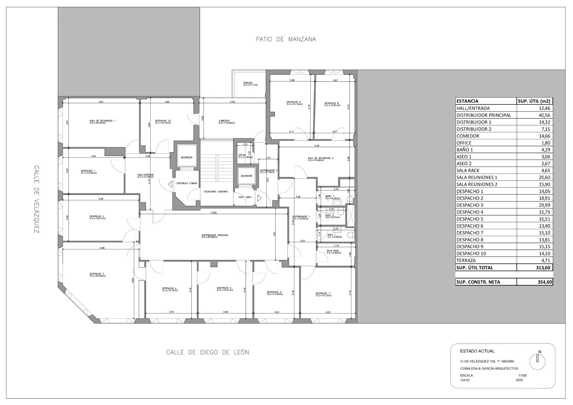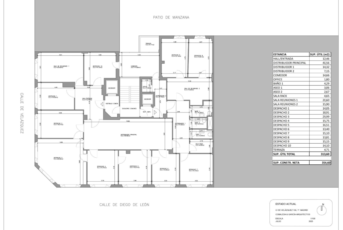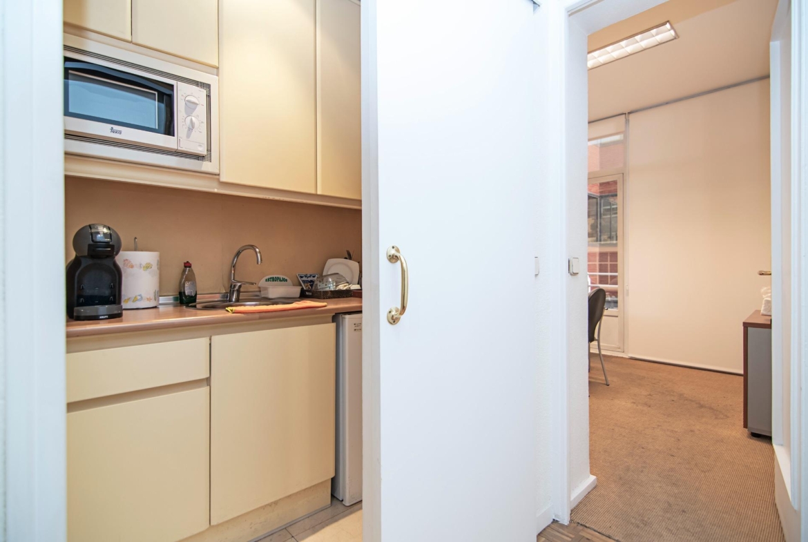 La oficina también dispone de tres baños funcionales y un office que facilita las pausas laborales del equipo. Todos los despachos cuentan con ventanales exteriores que permiten disfrutar vistas hacia la vibrante vida urbana madrileña.