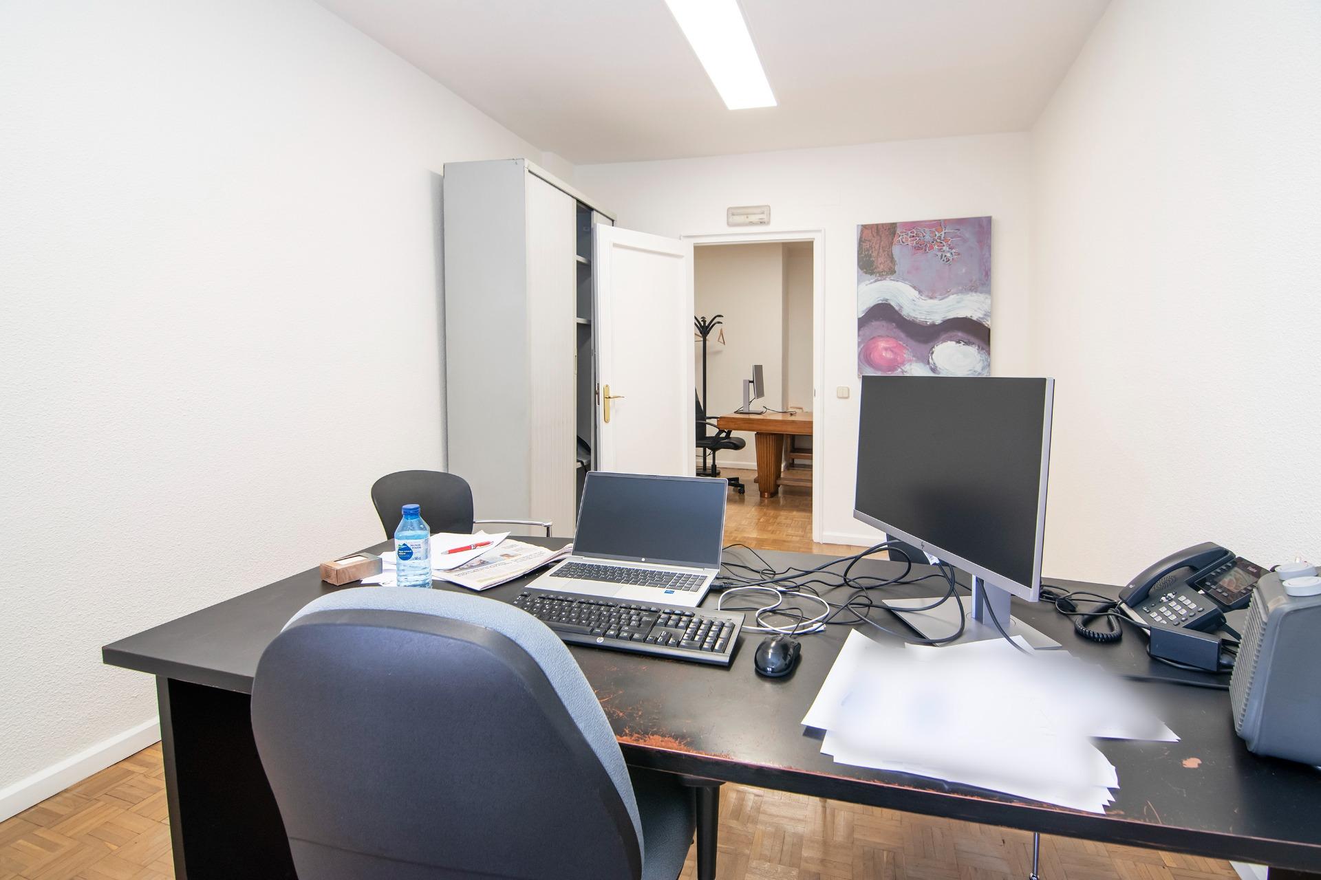 El edificio donde se ubica esta oficina está dotado de portero físico y ascensor, asegurando accesibilidad tanto para empleados como clientes. Para mayor conveniencia, existe opción a rentar una plaza de aparcamiento adicional en la cercana calle Diego de León por solo 180€, lo cual es ideal dada su ubicación central.
