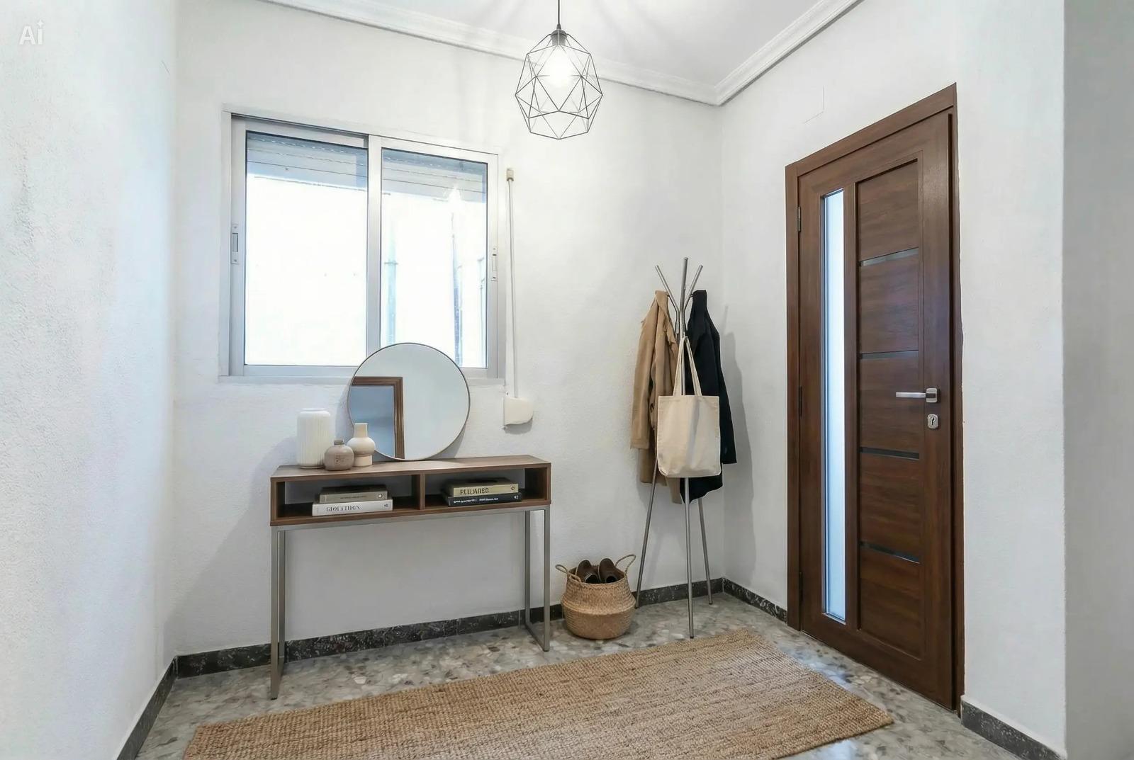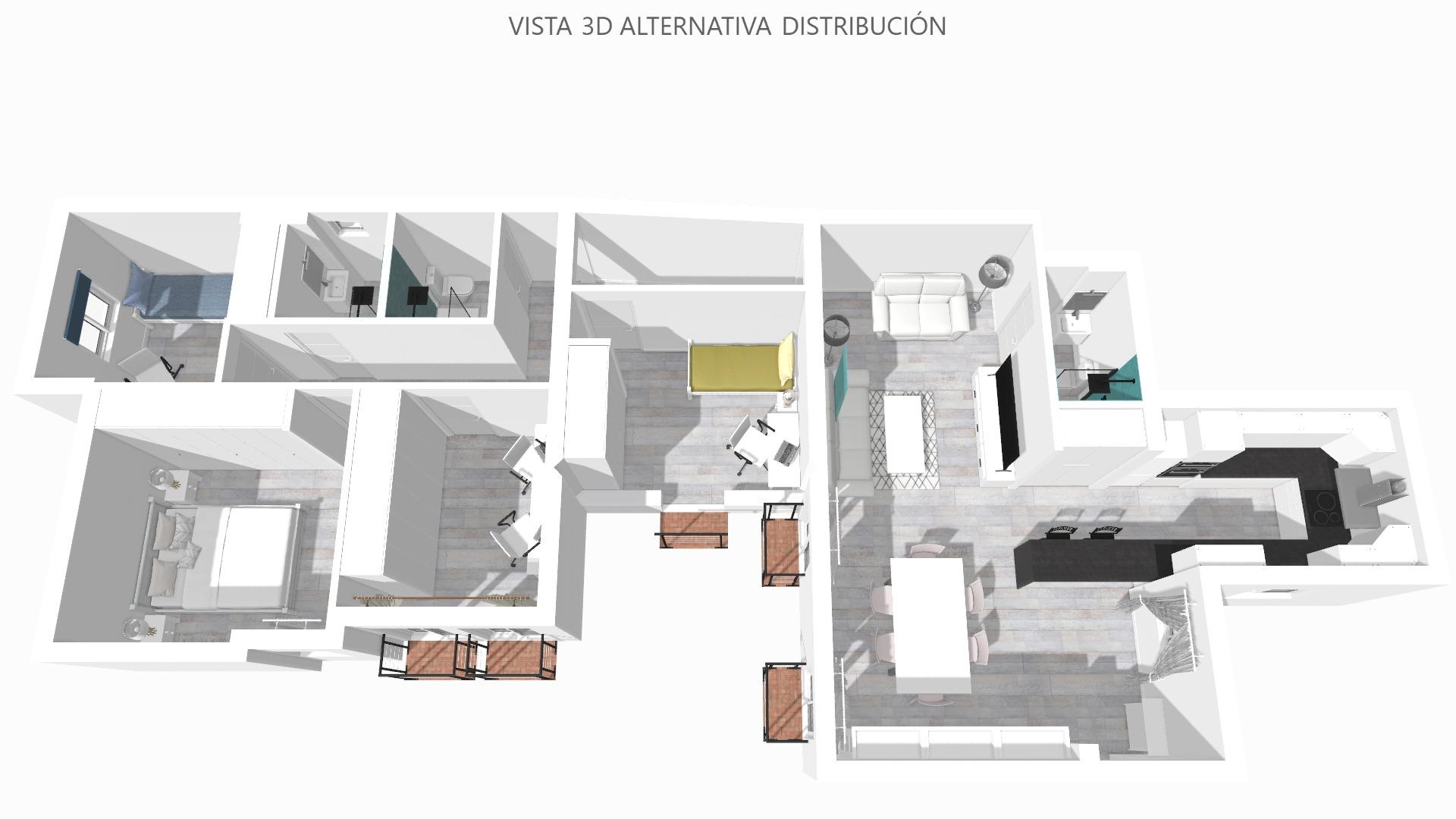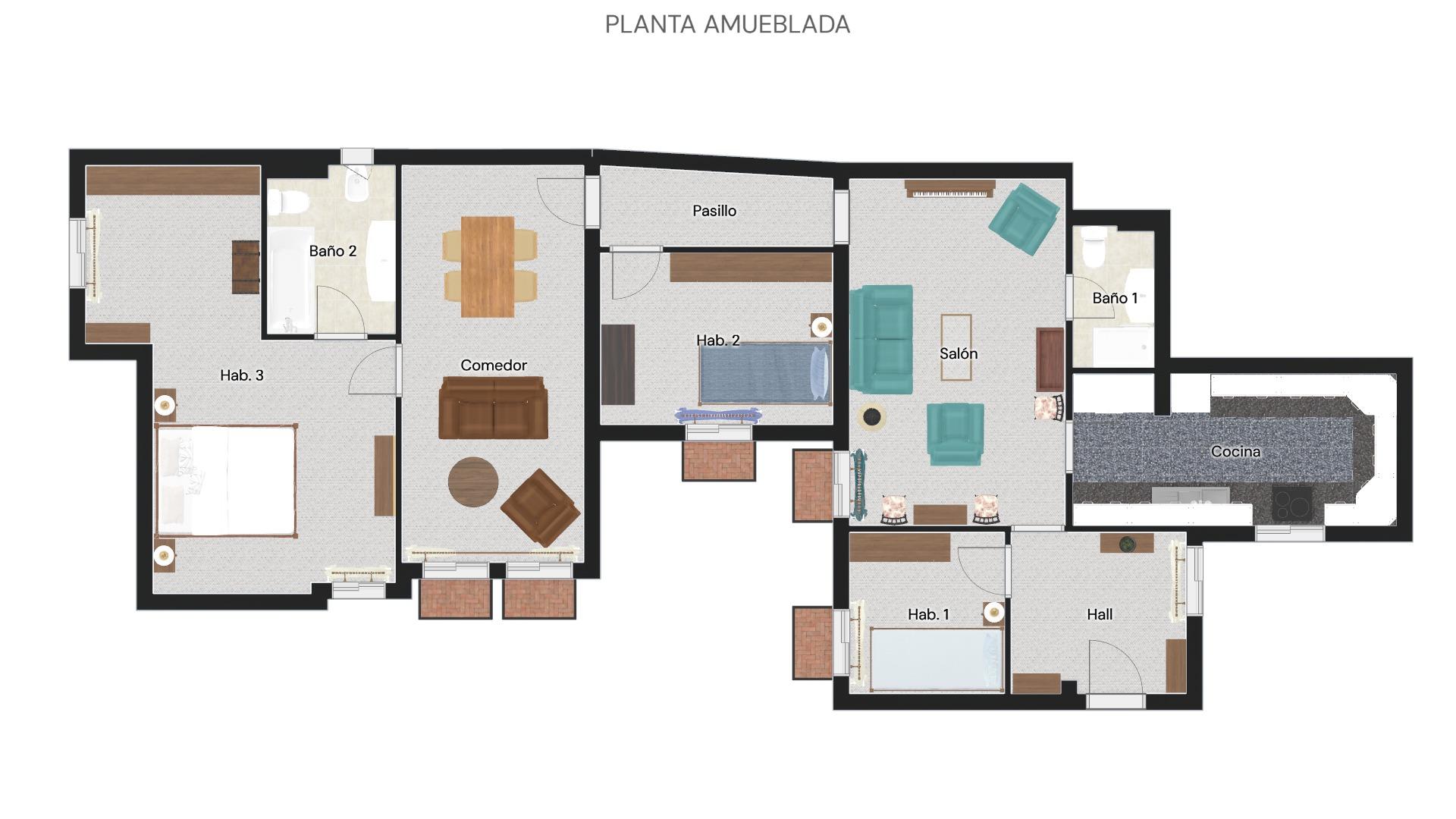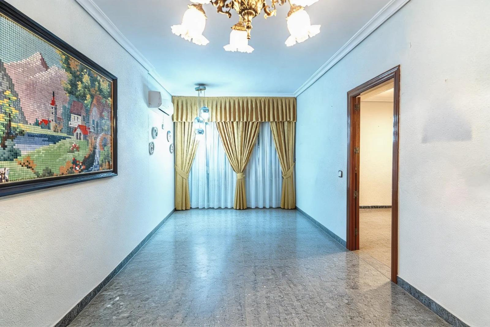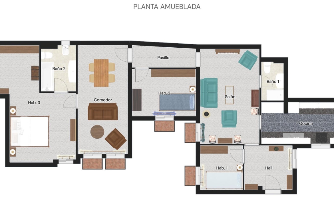 La vivienda consta de 106 metros construidos distribuidos en las siguientes estancias: 2 salones, 1 cocina independiente, 3 dormitorios de los cuales uno de ellos es doble con vestidor y 2 cuartos de baño completos, uno de ellos tipo suite. Todos los dormitorios cuentan con un balcón, lo que proporciona luminosidad a las estancias. Las fotografías que se muestran están realizadas con IA siendo una simulación de la vivienda totalmente reformada.