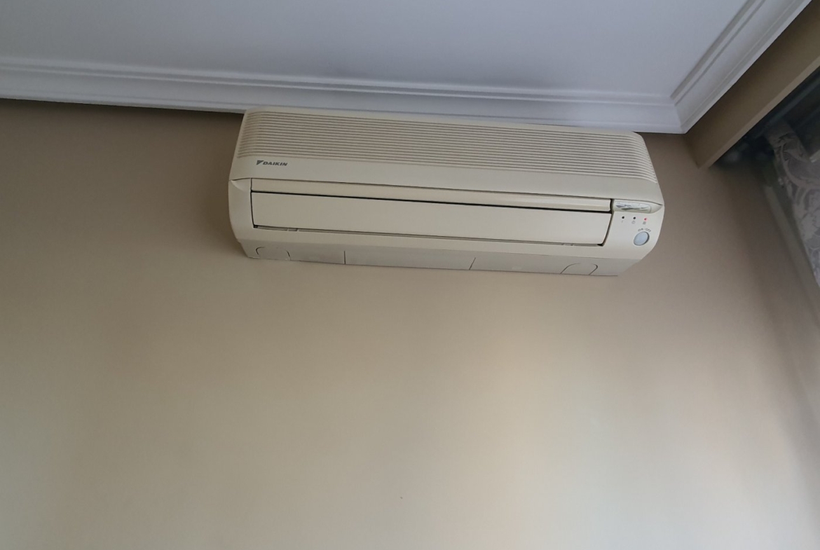 Aire acondicionado en el salón y en ambas habitaciones.