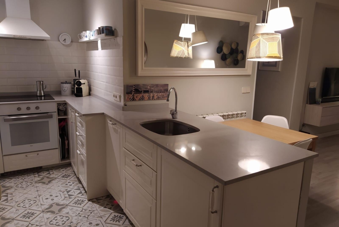 La vivienda se alquila SIN MUEBLES, ideal para decorar y poner sus propios muebles. Con una reforma reciente, suelos de tarima en toda la casa, salvo en cocina con bonito suelo hidráulico y baño que también es cerámico, puertas de paso lacadas en blanco, ventanas aluminio con climalit.
