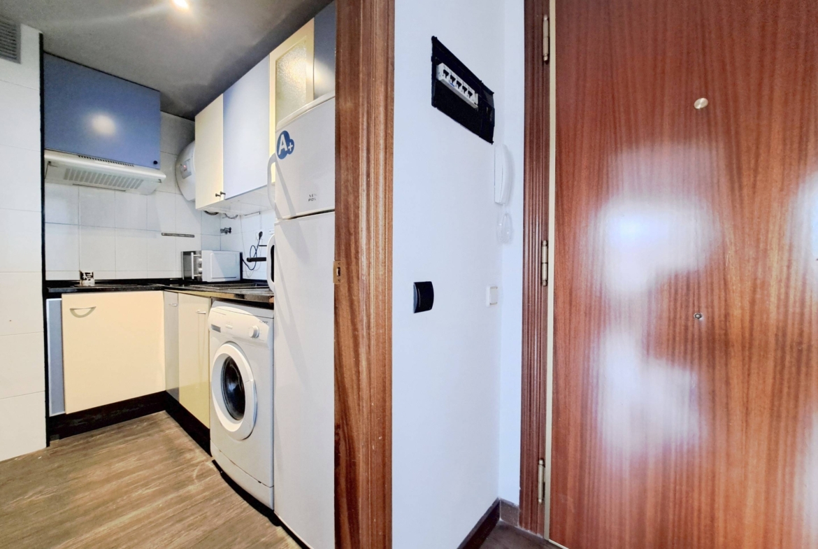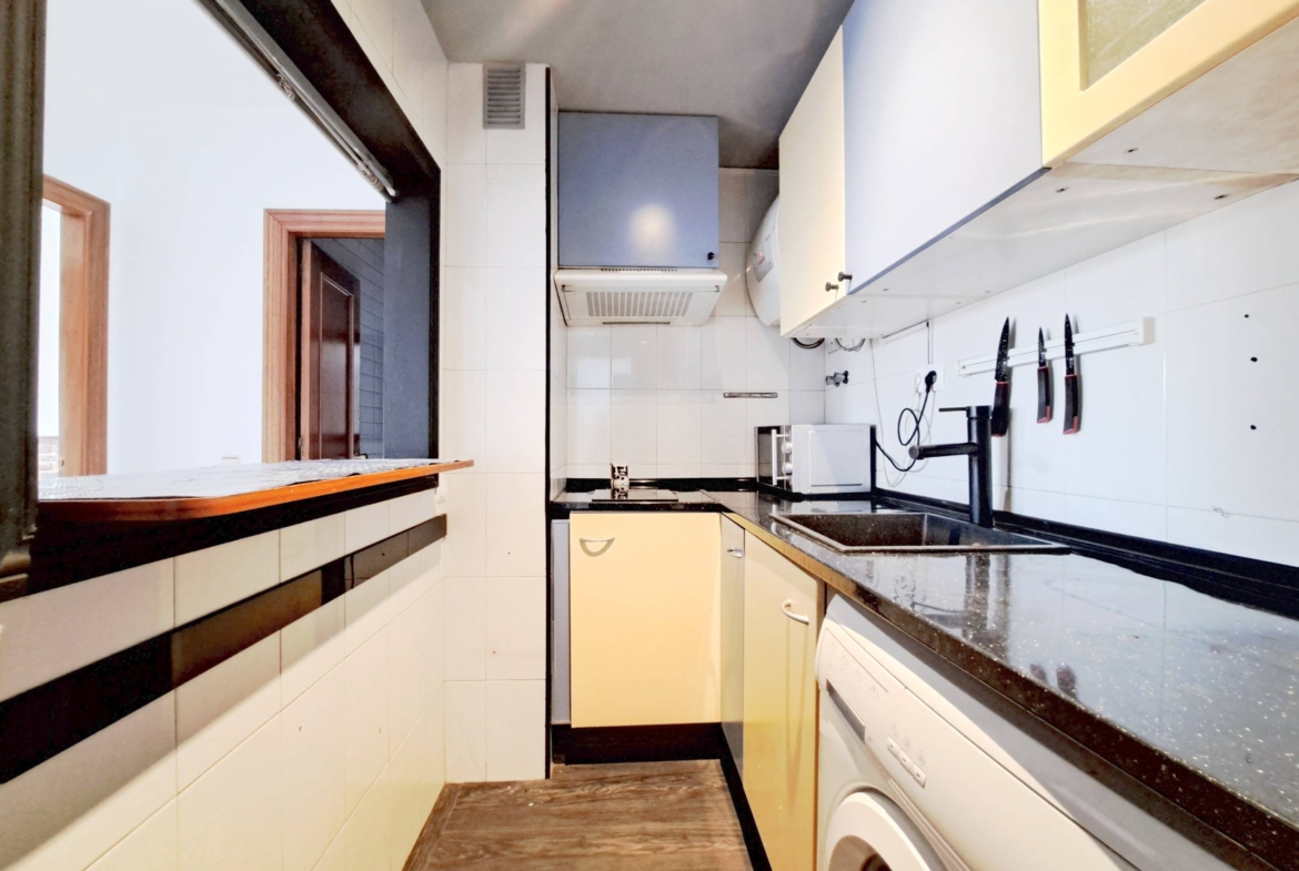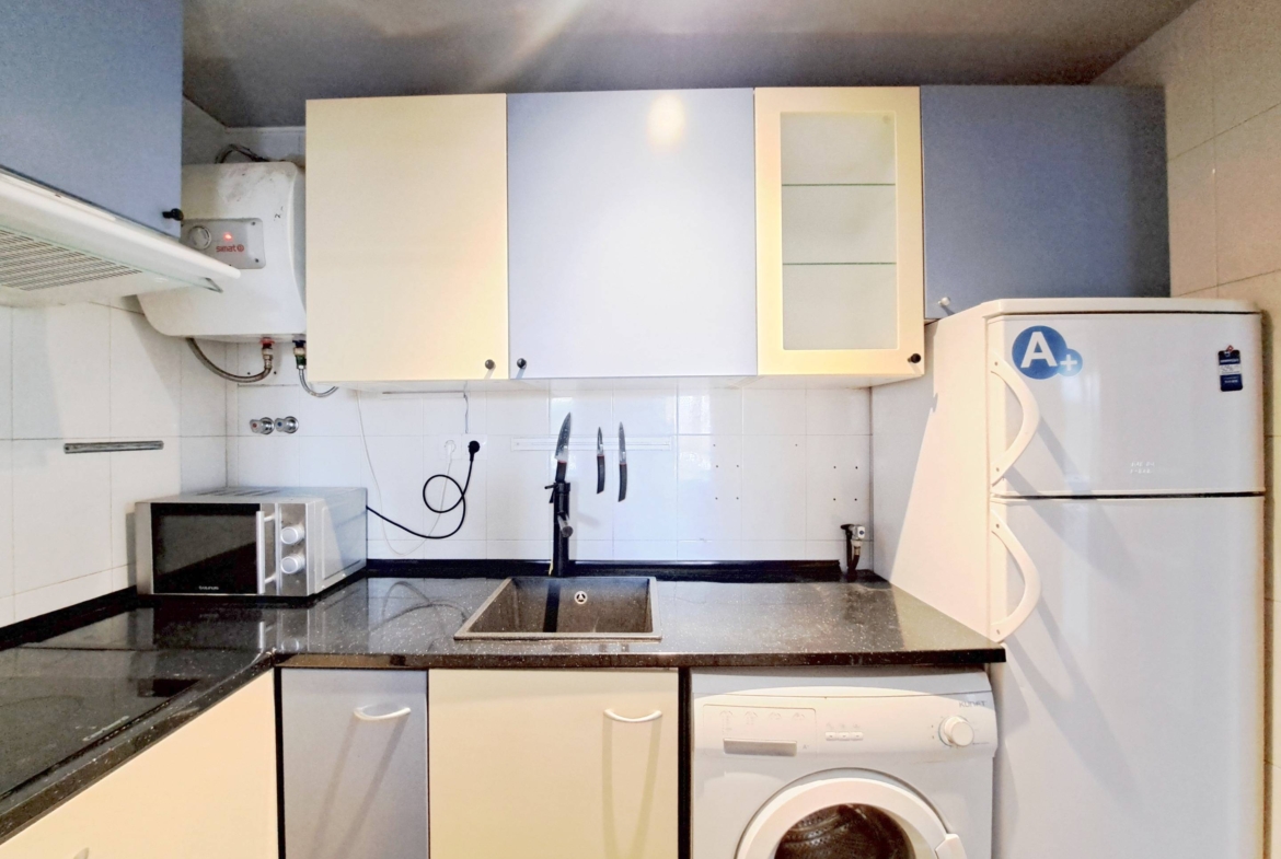 El inmueble cuenta con dos dormitorios bien distribuidos y un baño completo, todo en excelente estado de conservación. La propiedad se encuentra en una urbanización privada que incluye una piscina comunitaria, ideal para los meses de verano, y zonas comunes cuidadas. Además, se acaba el problema del aparcamiento, ya que el precio incluye una plaza de garaje de fácil acceso en el mismo edificio.
