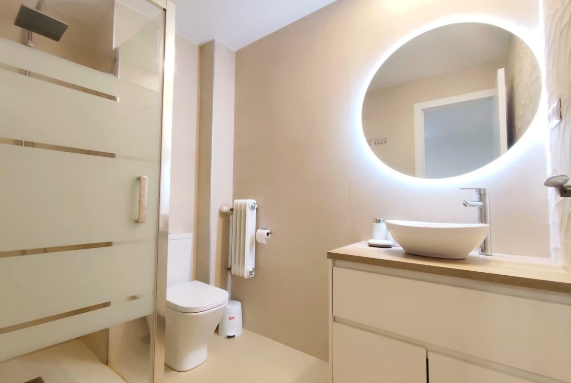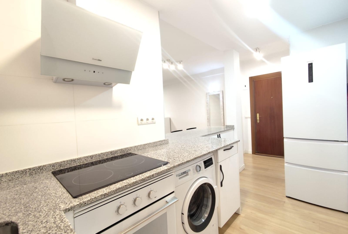 Con una superficie de 60 m², este piso ha sido sometido a una reforma integral con acabados de alta calidad, estando listo para entrar a vivir. Su diseño es muy funcional, optimizando cada metro cuadrado, y su orientación le confiere una extraordinaria luminosidad en todas las estancias, creando un ambiente acogedor y lleno de luz natural.