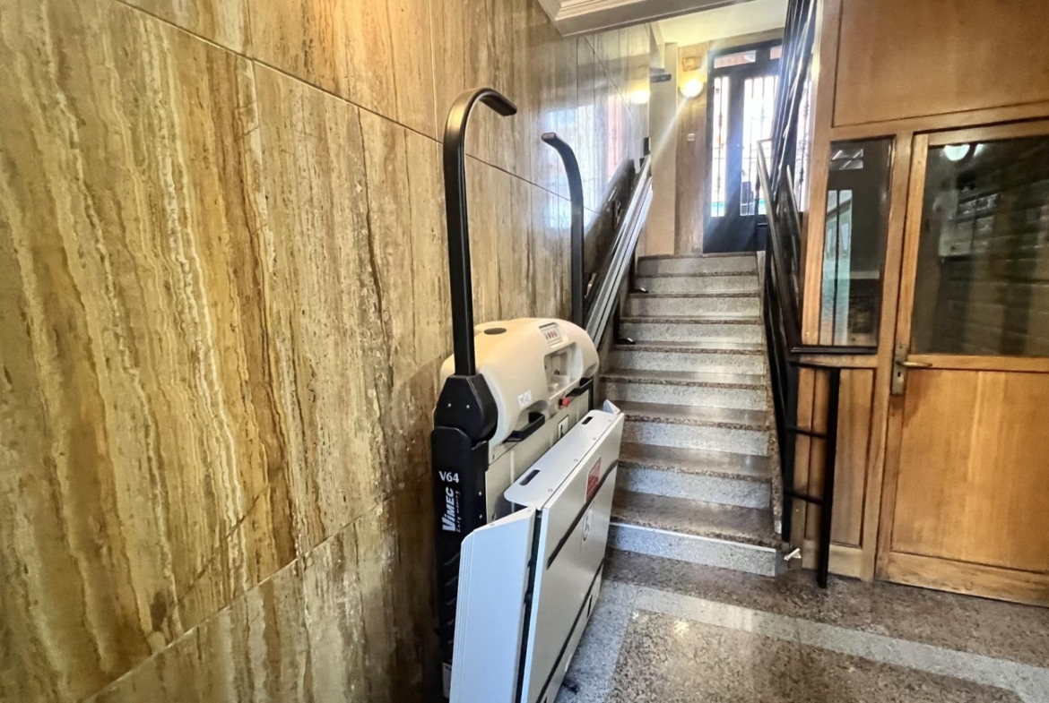 La finca en la que se encuentra está en perfecto estado de conservación, teniendo dos entradas al portal uno de ellos con rampa, cuenta con ascensor y acceso para personas con diversidad funcional.