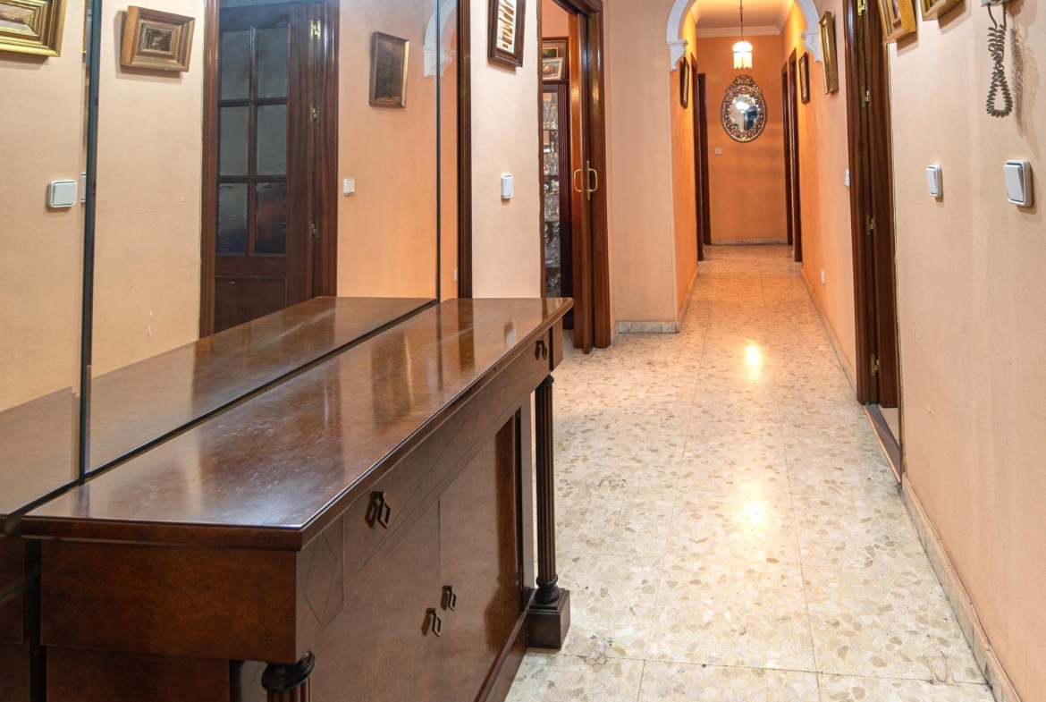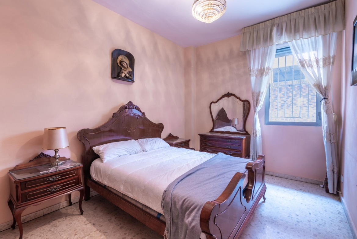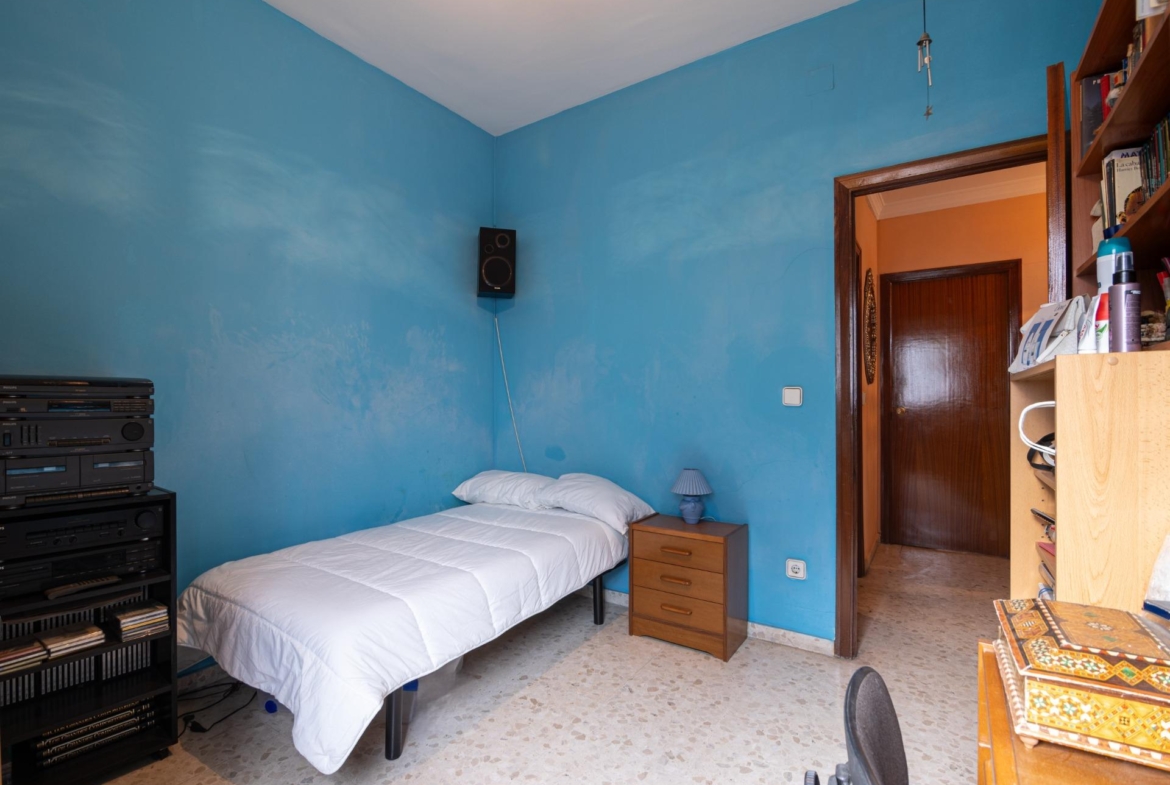 En estado para reformar, la vivienda consta de 136 metros construidos distribuidos en salón comedor, cocina independiente, 4 dormitorios y 2 cuartos de baño completos. Ubicada en una entreplanta proporciona una total intimidad puesto que las estancias dan a una calle privada sin tránsito de peatones ni vehículos. Cuenta también con una adecuada ventilación cruzada.