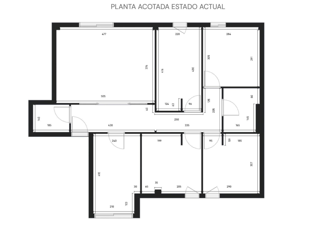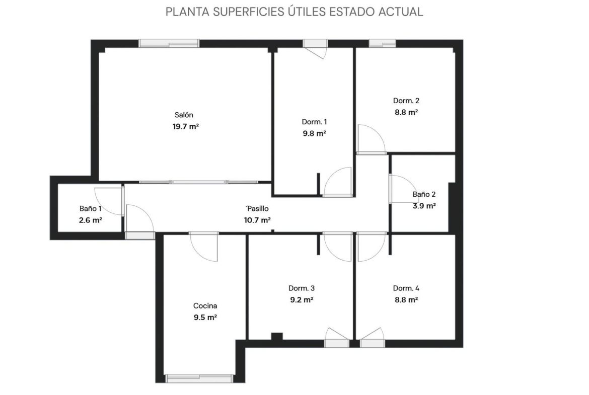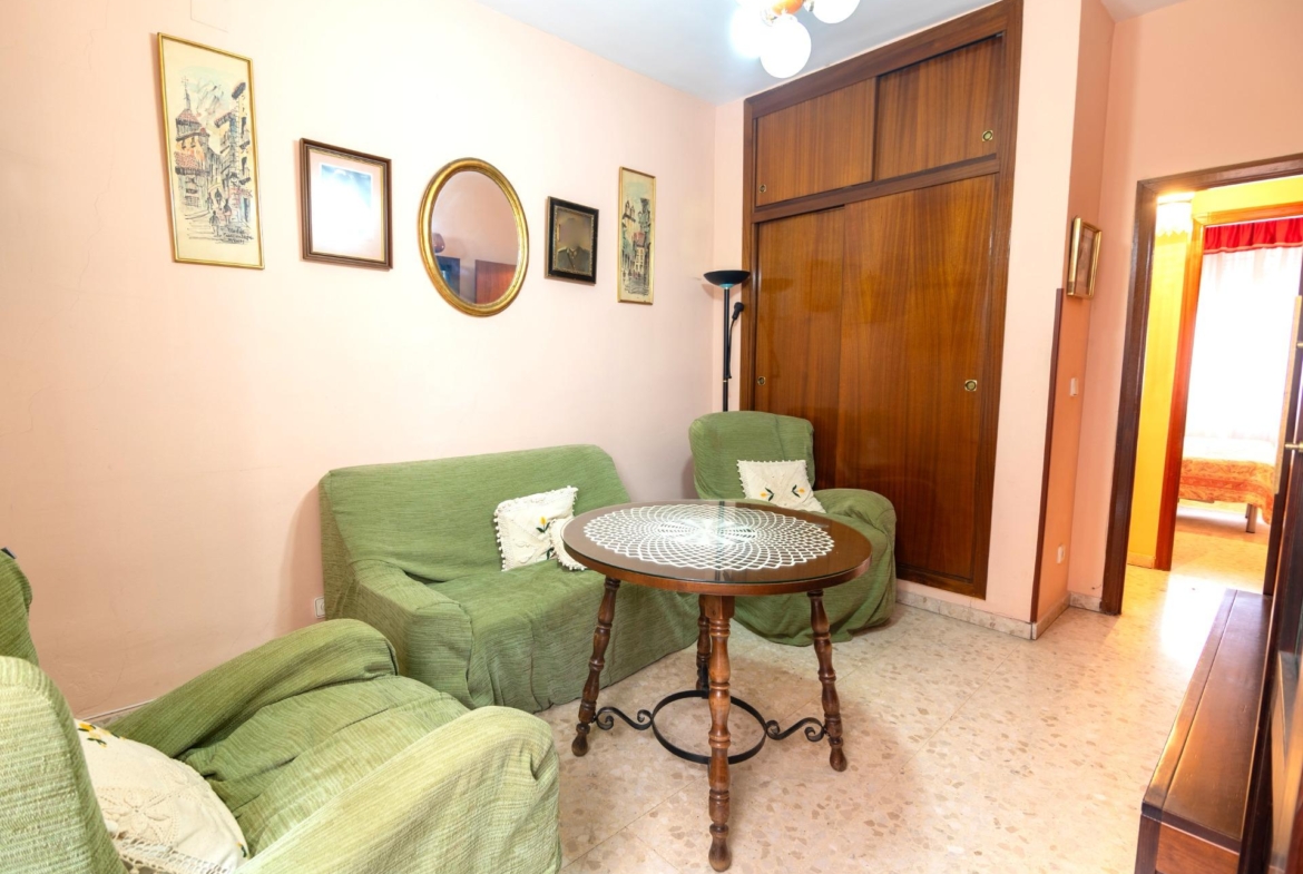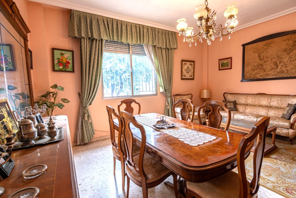 En estado para reformar, la vivienda consta de 136 metros construidos distribuidos en salón comedor, cocina independiente, 4 dormitorios y 2 cuartos de baño completos. Ubicada en una entreplanta proporciona una total intimidad puesto que las estancias dan a una calle privada sin tránsito de peatones ni vehículos. Cuenta también con una adecuada ventilación cruzada.