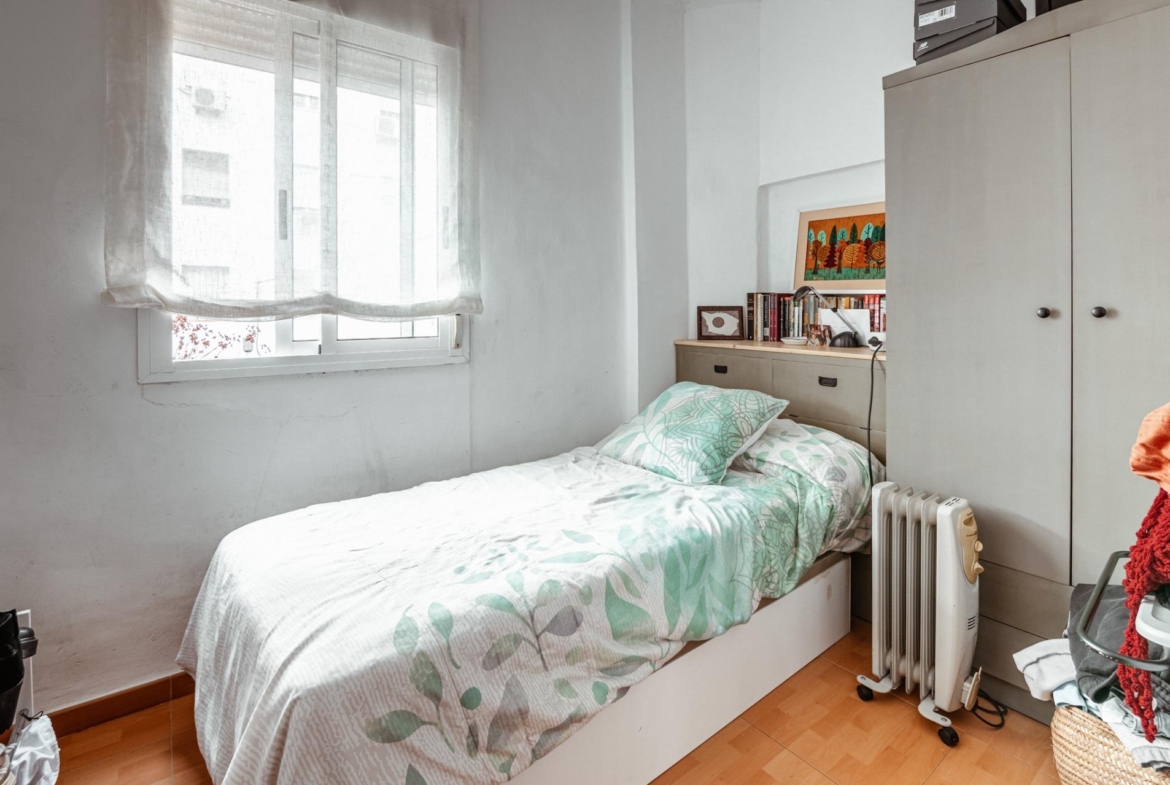 Ubicada en una primera planta de un edificio sin ascensor, cuenta con orientación sur principalmente y el balcón del que dispone da a una calle ancha, lo que le proporciona especial amplitud y luminosidad.