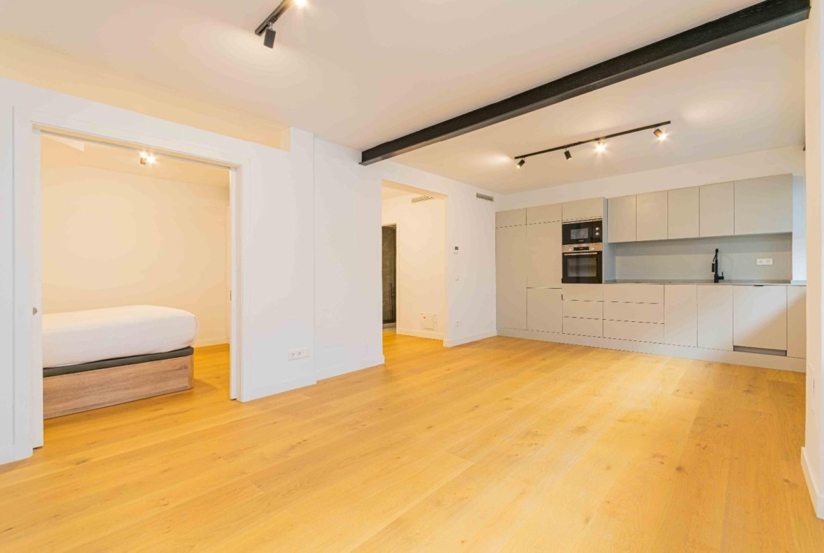 Con una superficie de 70 m2. Todo ello repartido en recibidor, un luminoso salón con cocina abierta y con electrodomésticos de primera calidad, así como los acabados de la vivienda que consta de un dormitorio y un baño completo.
