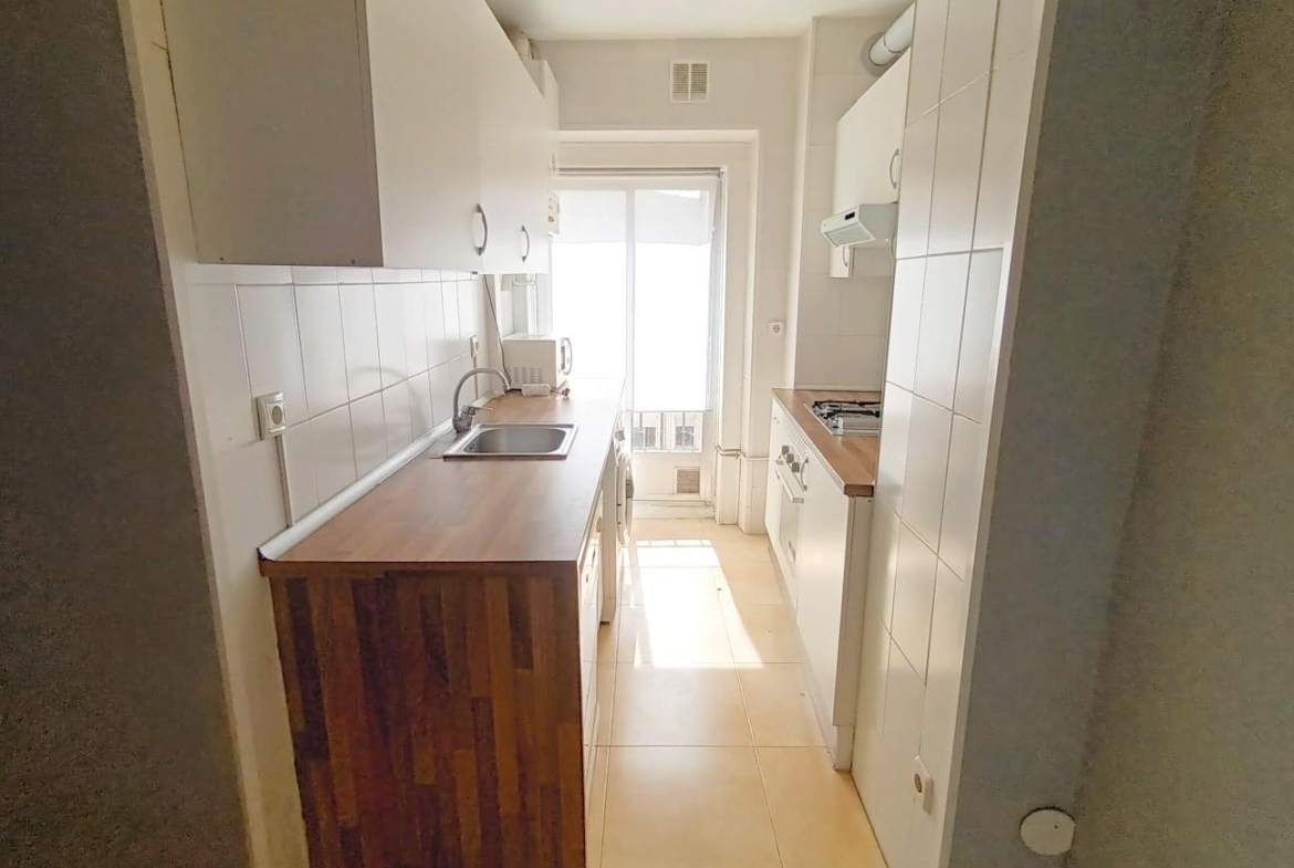 Con una superficie de 63m2. Todo ello repartido actualmente en un luminoso salón con dos balcones, dos dormitorios, cocina con balcón y un baño, Calefacción individual y aire acondicionado.