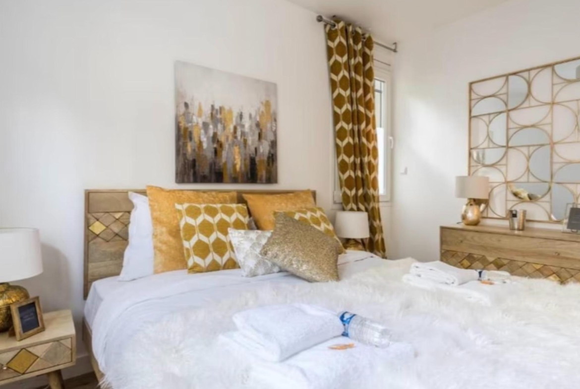 Dispone de dos dormitorios dobles, ambos con camas de matrimonio y armarios empotrados de gran capacidad, ofreciendo comodidad y excelente almacenamiento. El baño es completo y cuenta con plato de ducha de diseño actual.