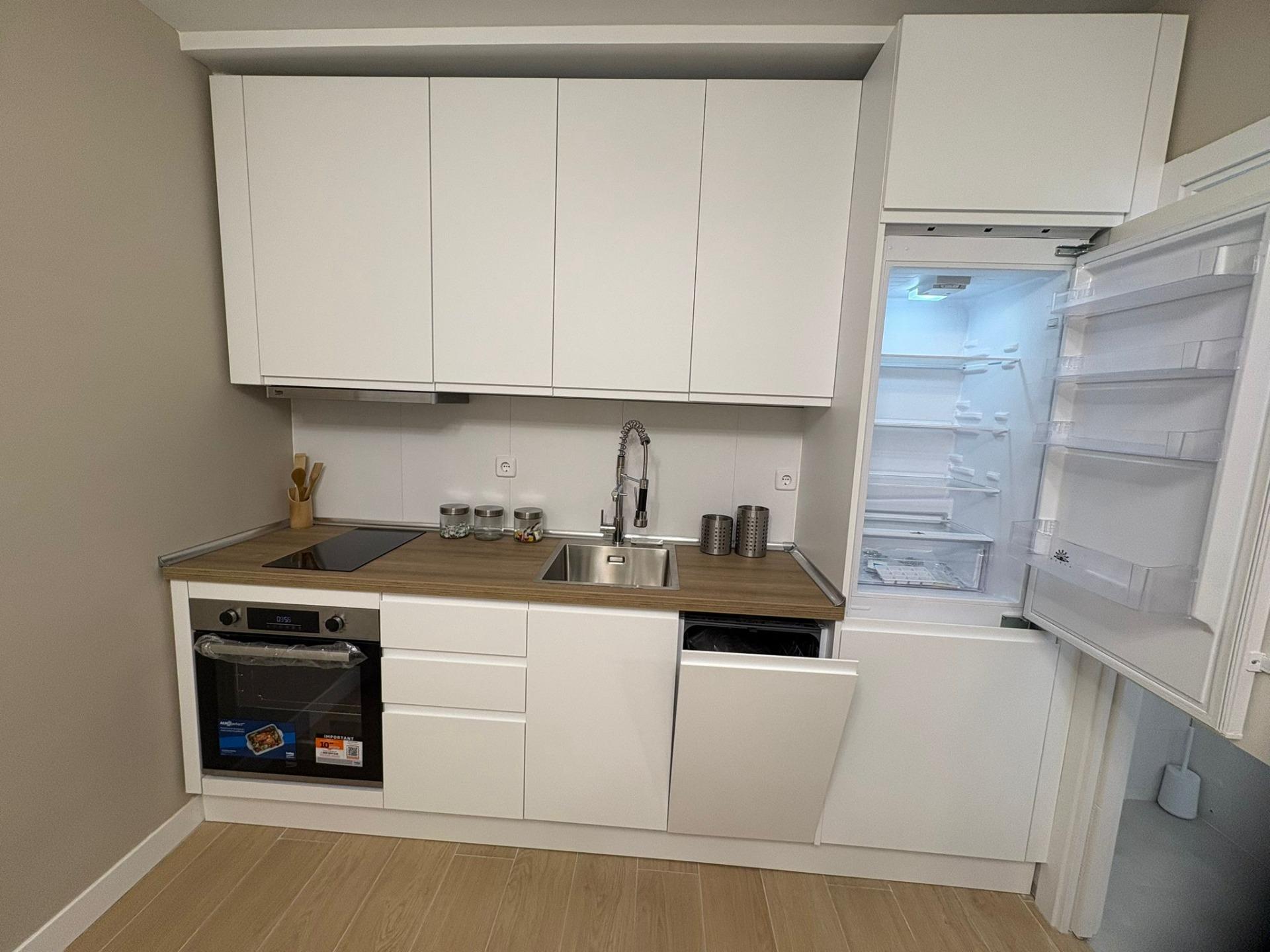 El espacio se distribuye en un salón con cocina integrada, creando un ambiente abierto y acogedor, perfecto para el día a día. La cocina se encuentra completamente equipada, lista para entrar a vivir sin necesidad de realizar ninguna inversión adicional. Dispone además de una habitación doble, cómoda y bien distribuida, y un baño completo con acabados actuales.