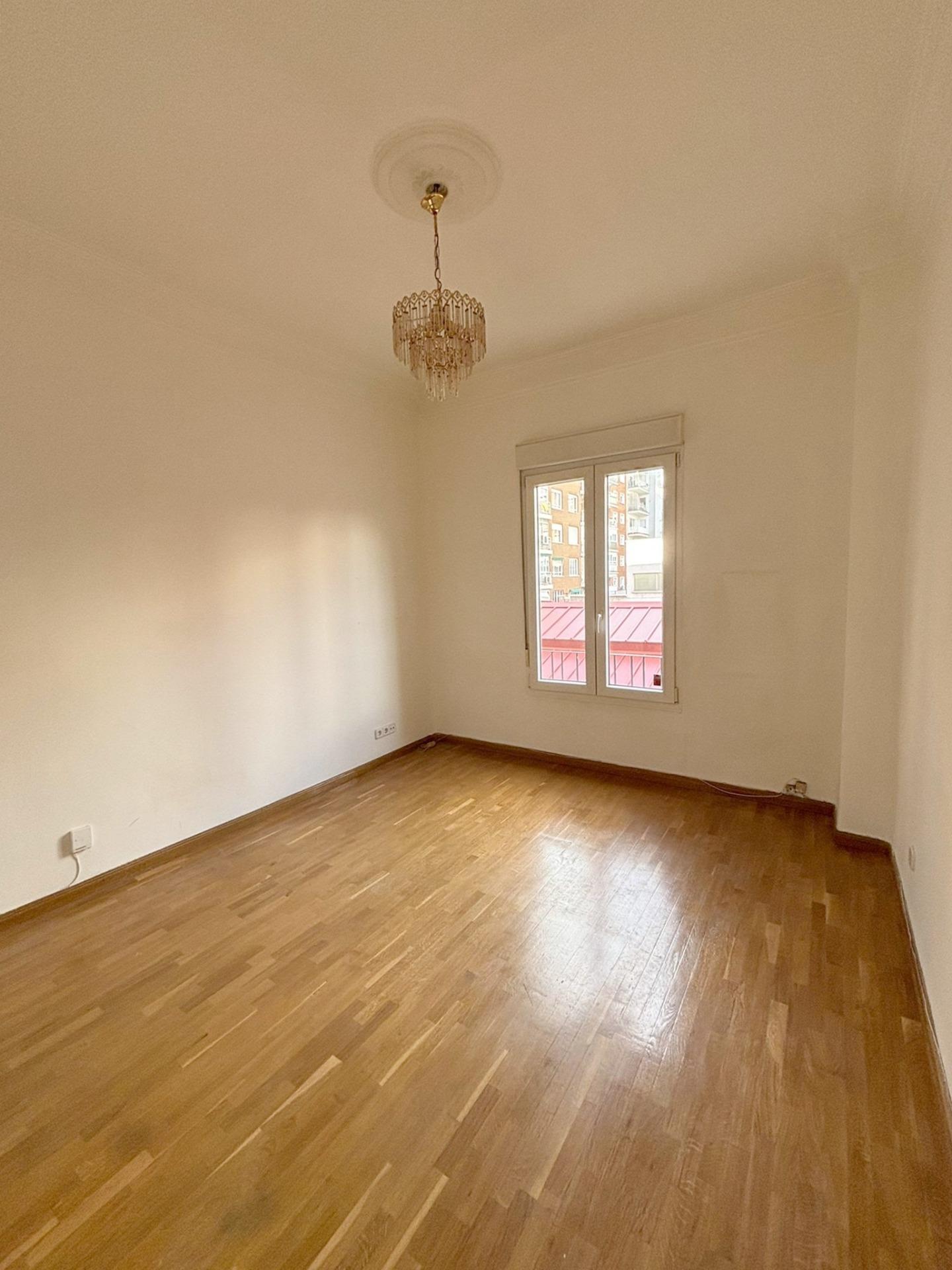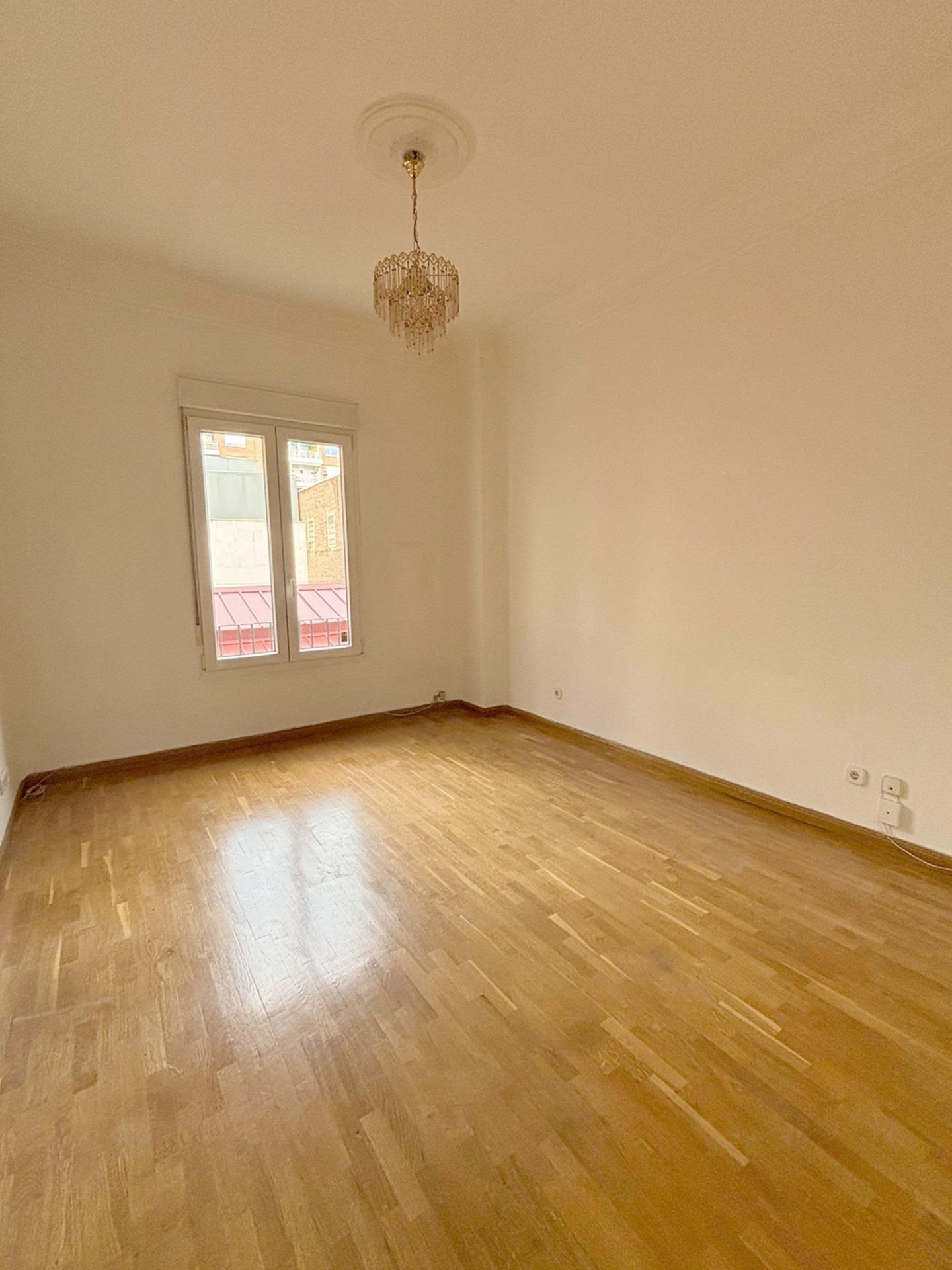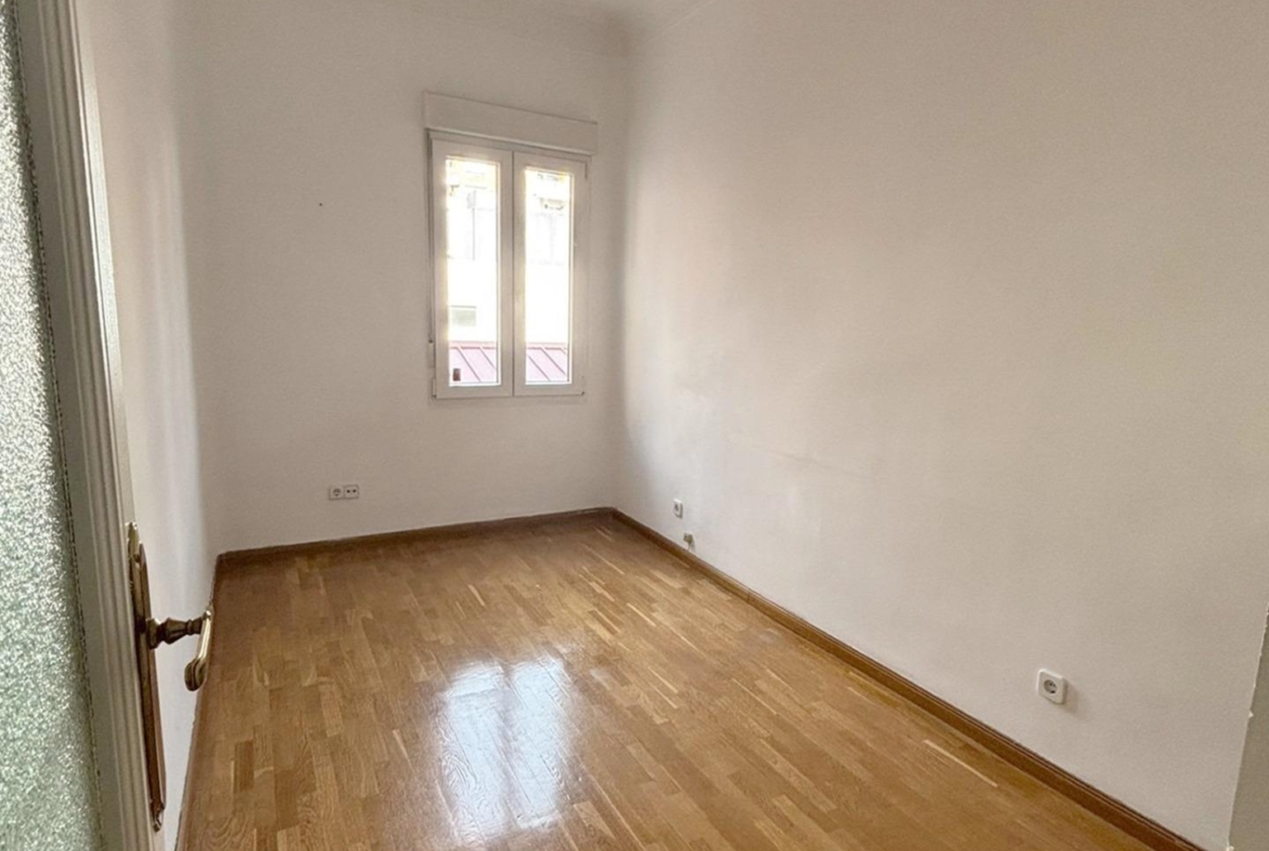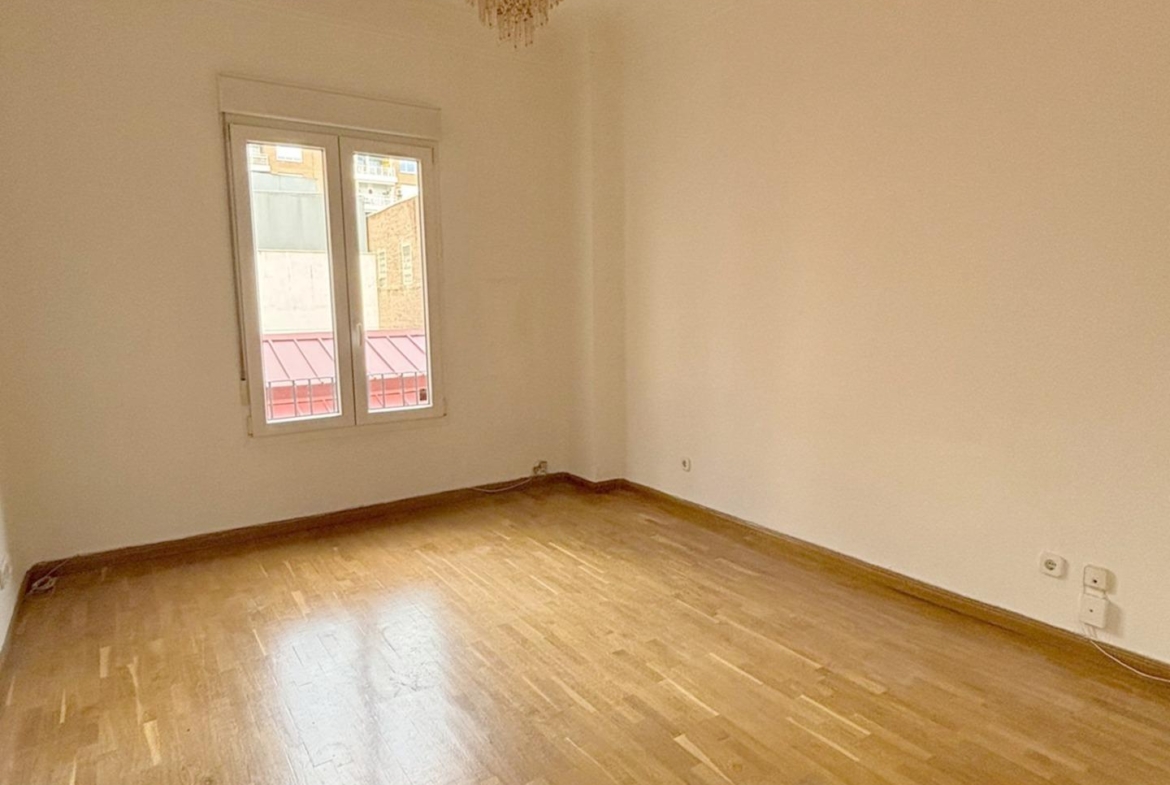 La distribución del piso cuenta con dos amplios dormitorios y un baño completo con bañera. La vivienda dispone de calefacción individual de gas natural, suelos de tarima y un portal cuidado con ascensor y servicio de portero físico.