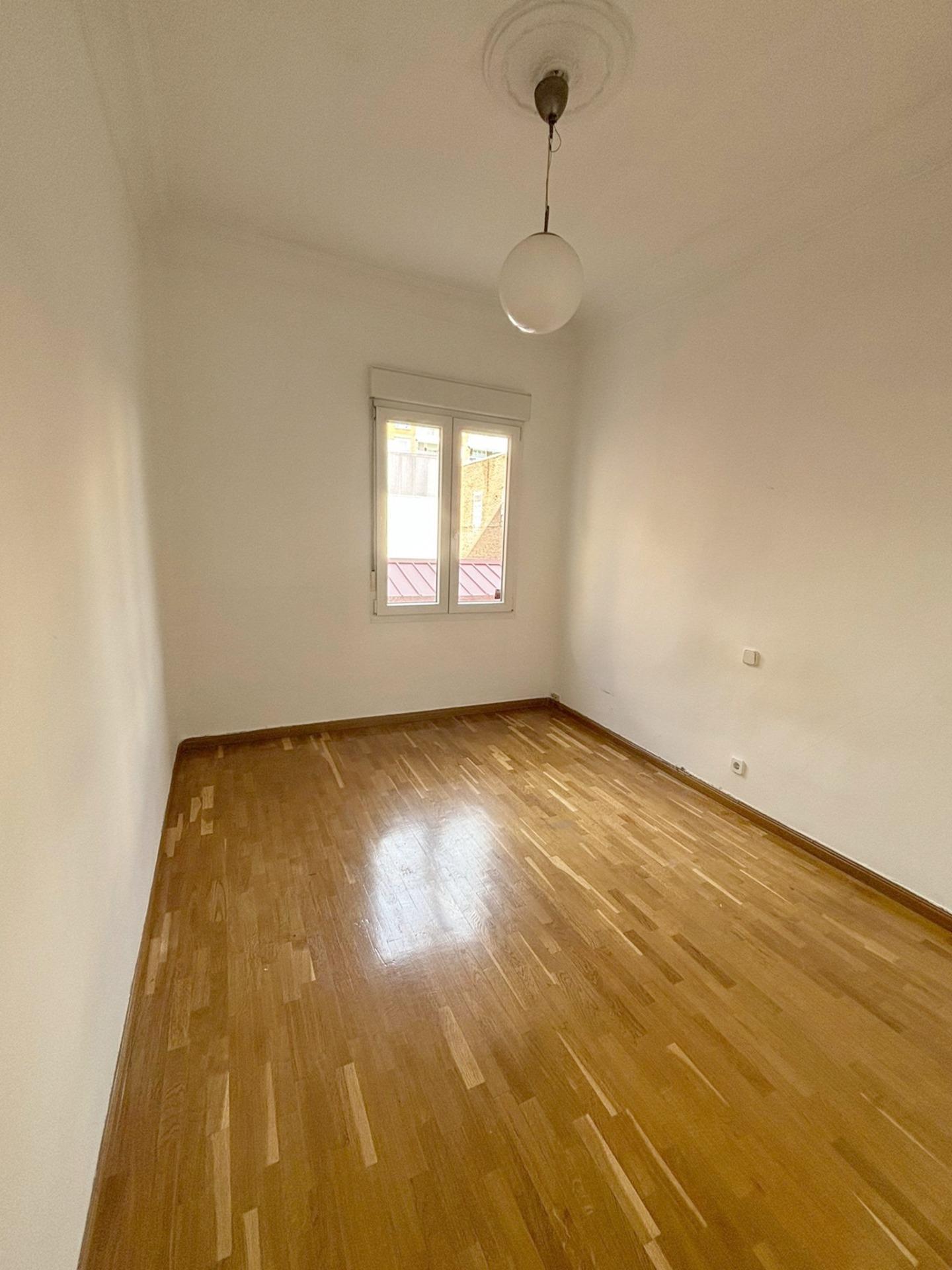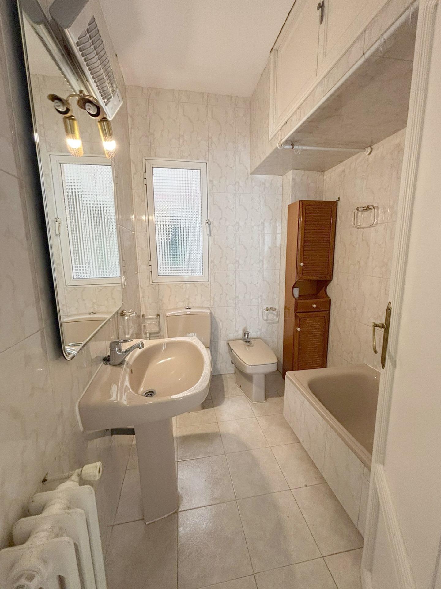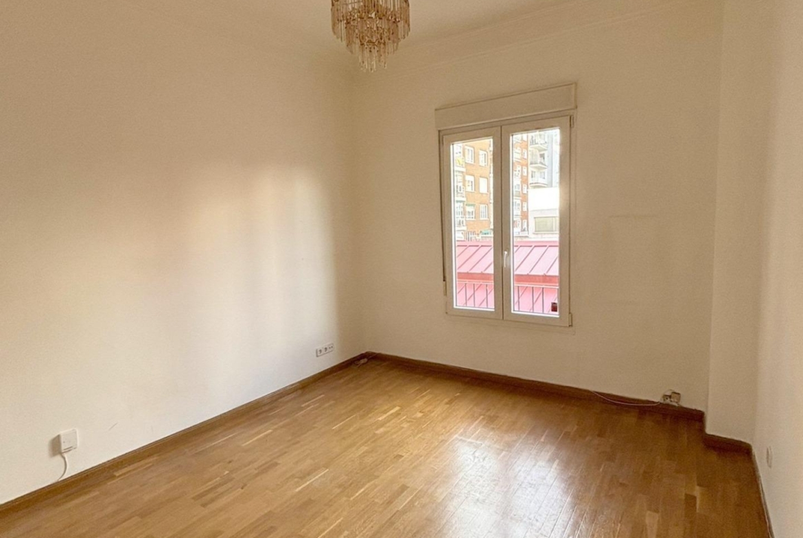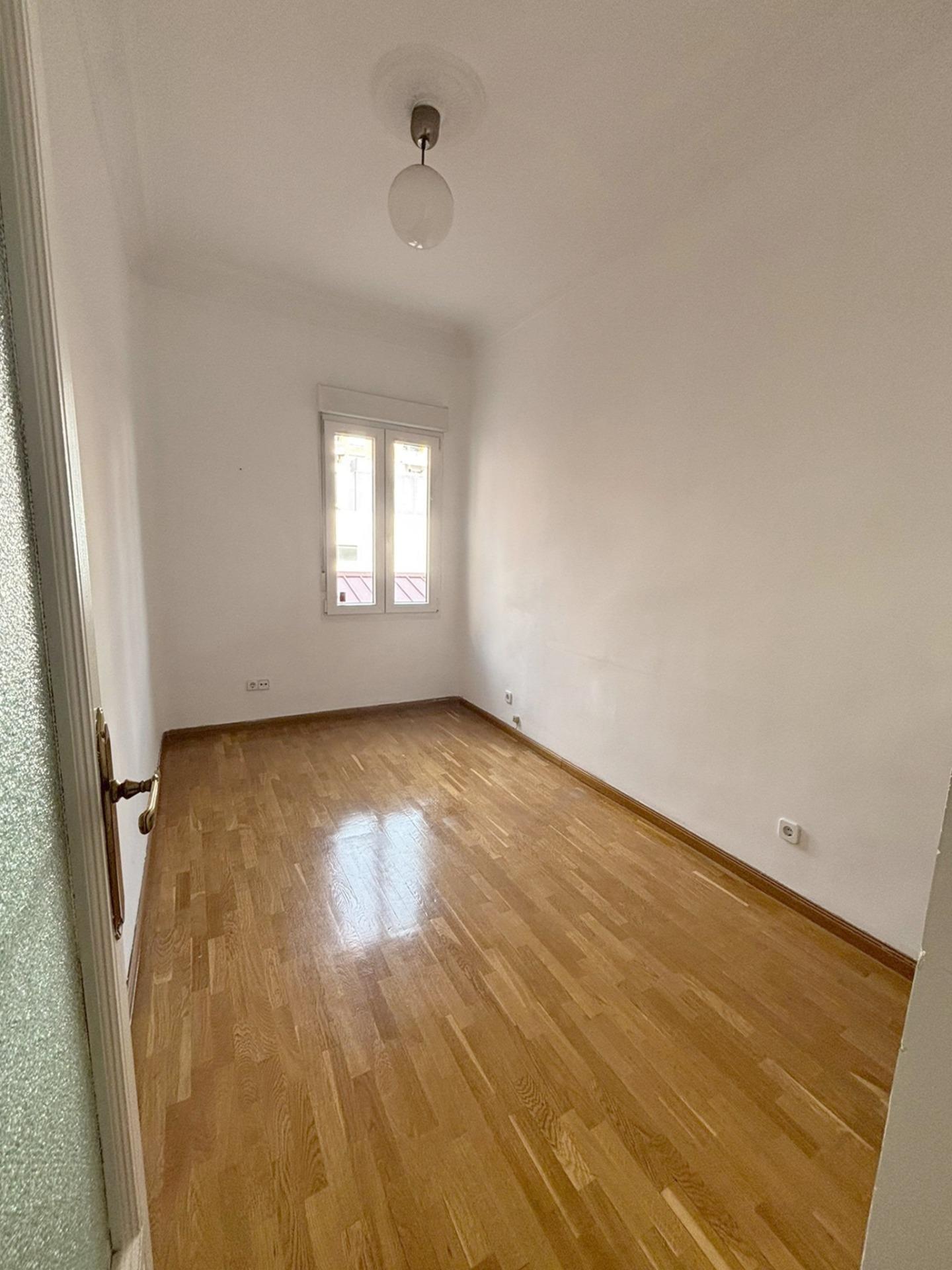 La distribución del piso cuenta con dos amplios dormitorios y un baño completo con bañera. La vivienda dispone de calefacción individual de gas natural, suelos de tarima y un portal cuidado con ascensor y servicio de portero físico.