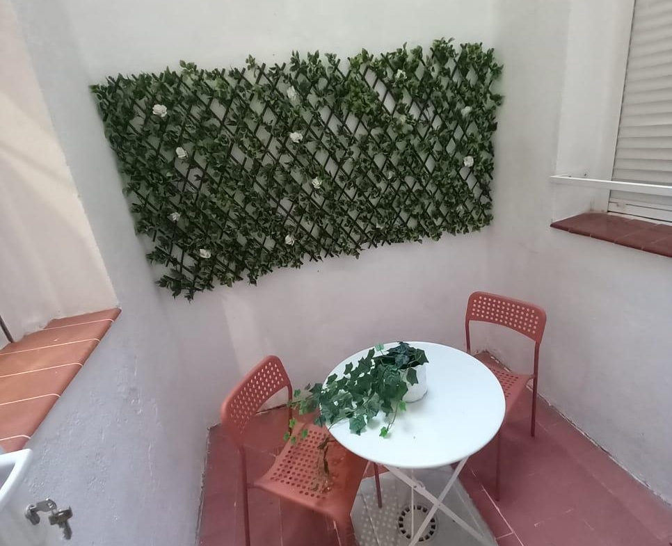 Al entrar, encontramos un acogedor salón comedor con cocina americana integrada, un espacio abierto y luminoso que invita a disfrutar del día a día con comodidad. Desde el salón se accede directamente a un patio de uso privativo, ideal para relajarse, disfrutar de un desayuno al aire libre o crear un pequeño rincón verde en plena ciudad.